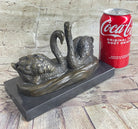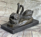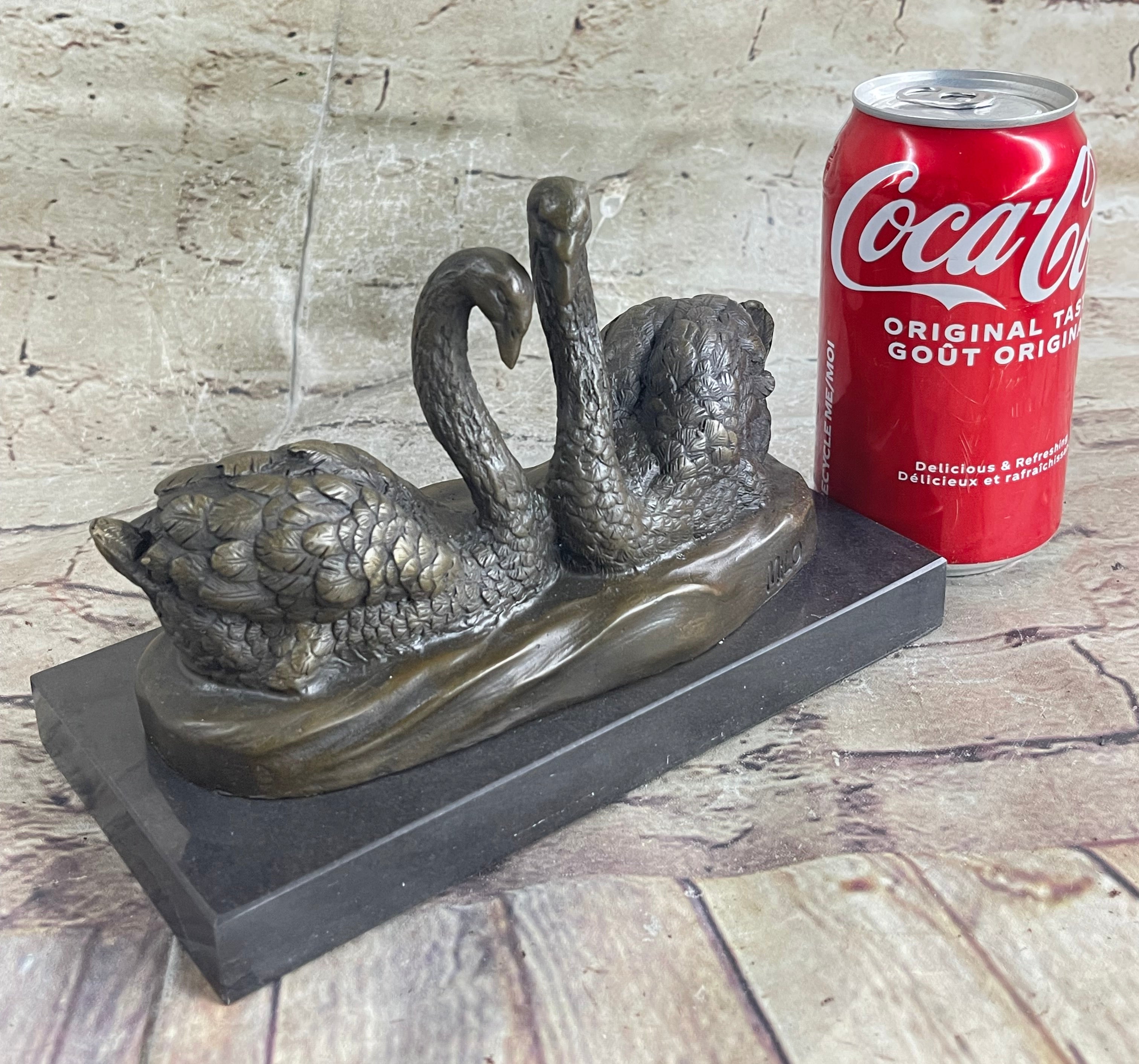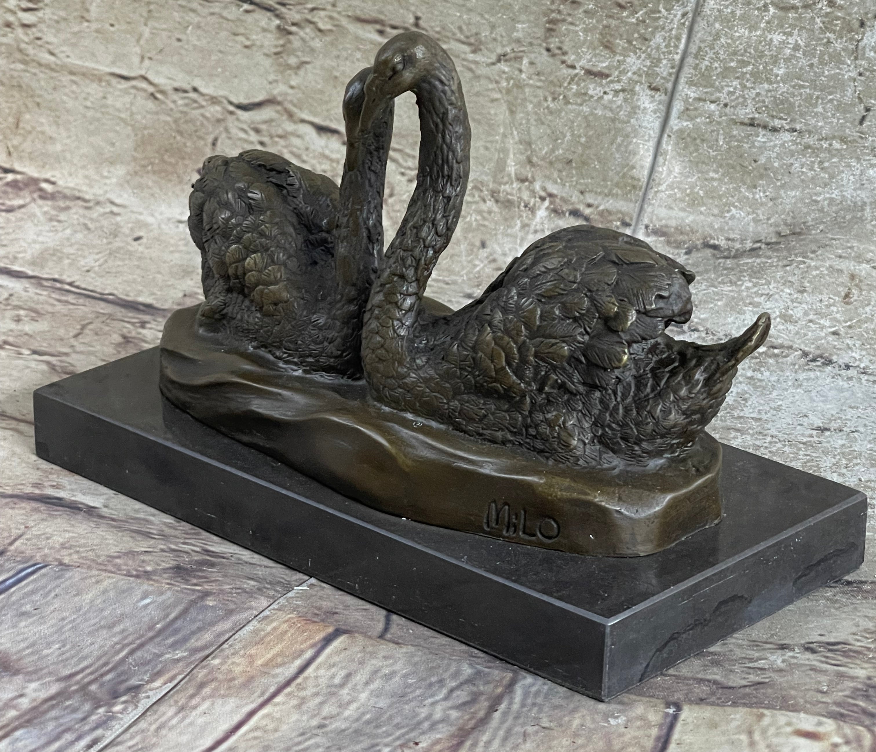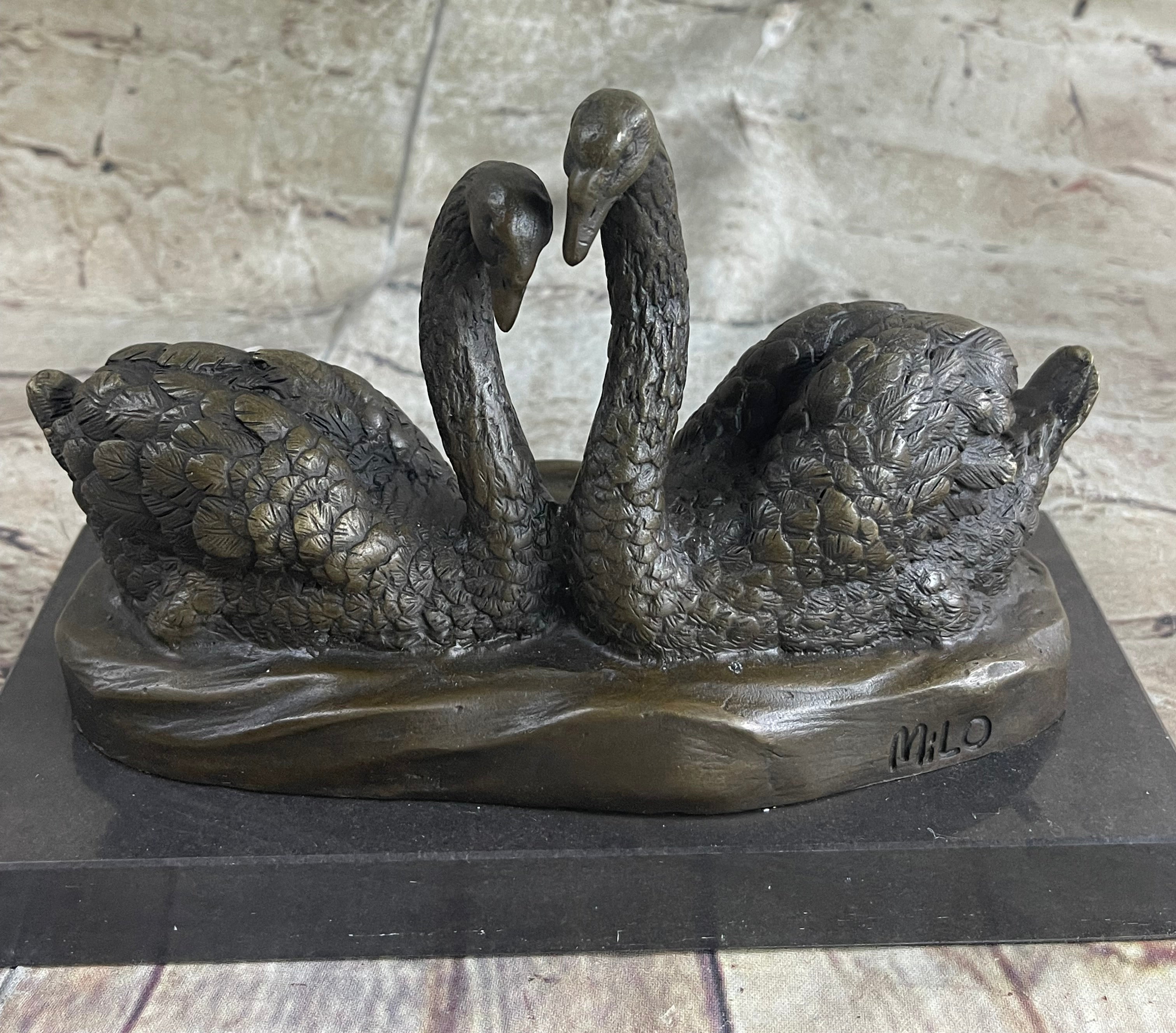 2 SWAN DANCING BRONZE SCULPTURE HOT CAST BRONZE SCULPTURE MARBLE BASE FIGURINE