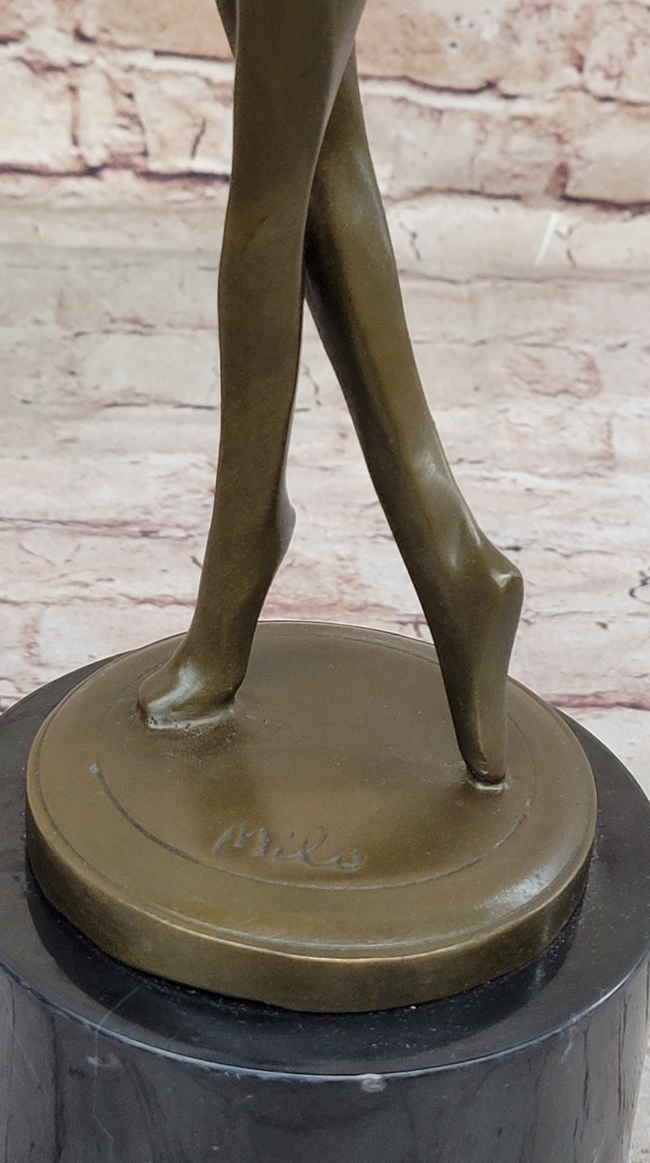 Handmade using the revered lost wax method, this sculpture exemplifies the meticulous craftsmanship that Milo brings to his creations. The round black marble base provides a perfect stage for the dancer's dynamic form, enhancing the sculpture's contemporary allure. The rich brown patina applied to the bronze adds warmth and depth, creating a harmonious blend of materials that elevates the overall aesthetic.