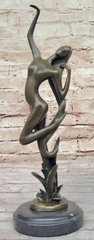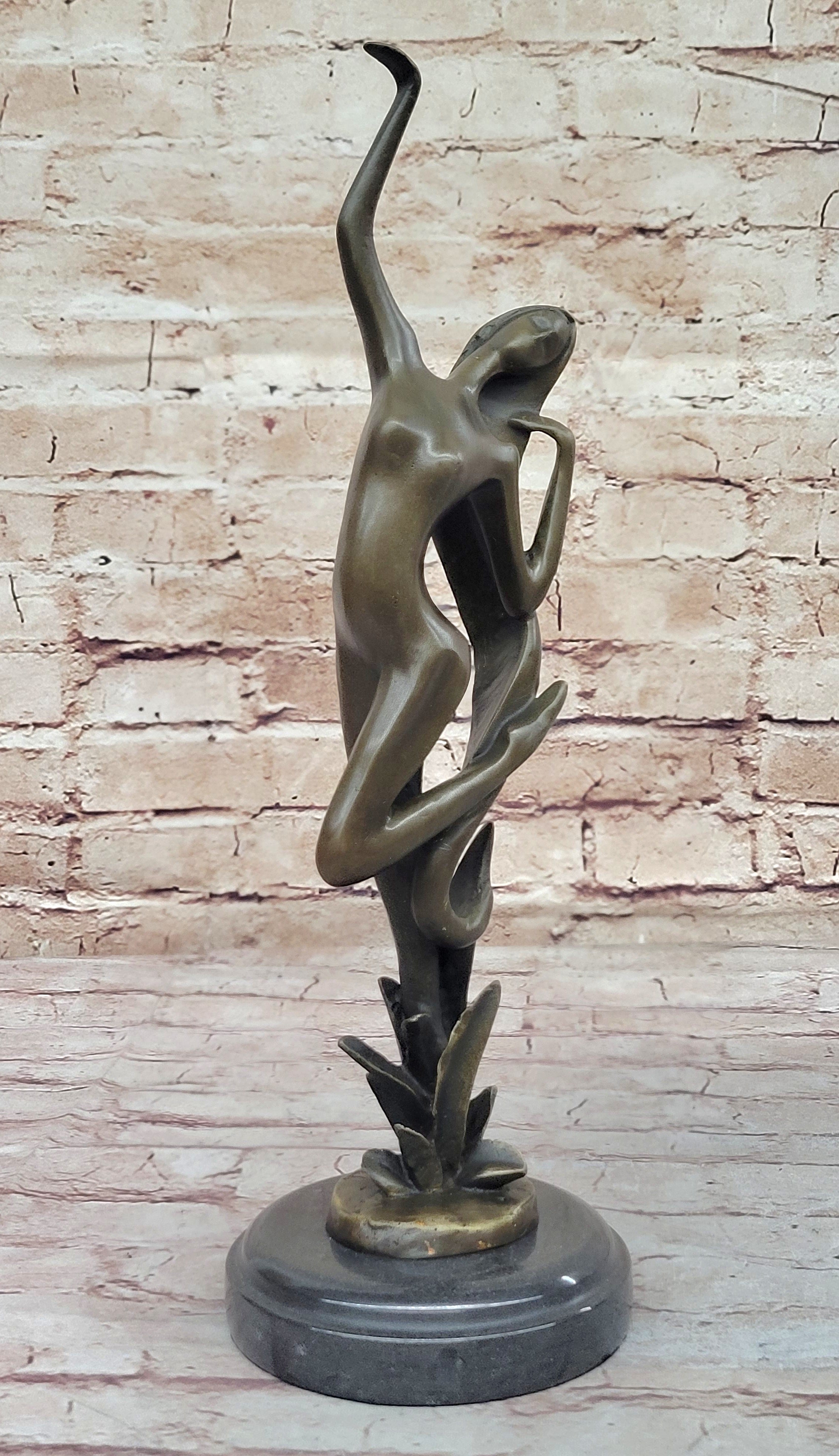 Abstract Nude Female Dancer Figure Reaching Upwards Dancing Bronze Sculpture Statue