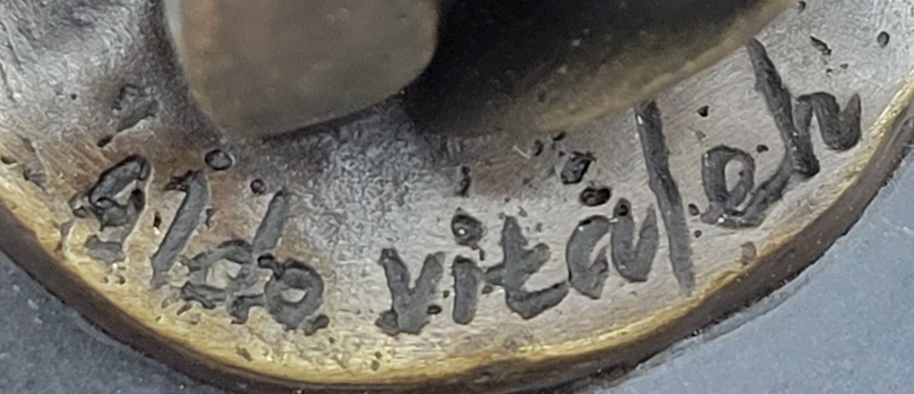 Crafted through the ancient technique of lost-wax casting, the bronze figure embodies a unique linear attractiveness, capturing the spirit of the subject in its most abstract form. The brown patina finish not only adds a timeless quality to the sculpture but also ensures its long-lasting preservation. The figure stands gracefully on a black marble base, showcasing the artist Aldo Vitaleh's signature—a testament to the piece's authenticity and the sculptor's creative mastery.