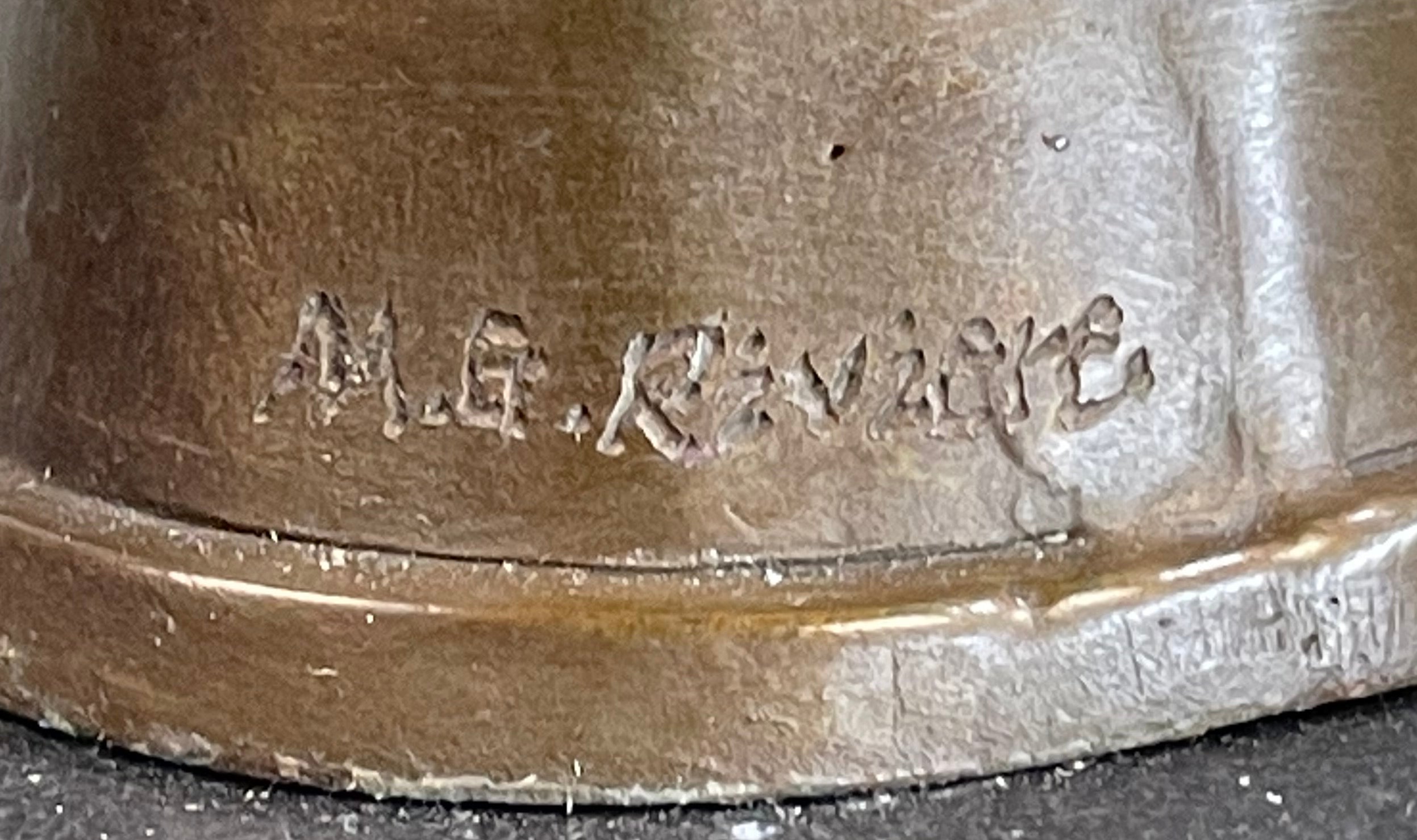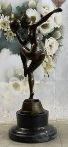 Mounted on a sleek black marble base and finished with a brown patina, this sculpture exudes elegance and sophistication. The contrast between the bronze and marble enhances the statue's visual impact, making it a stunning addition to any space. Riviere's meticulous craftsmanship and artistic vision shine through in this exquisite piece, offering viewers a glimpse into the beauty and complexity of the human form.Bronze Dimensions with Marble Base: Height 16" X Width 9"