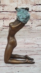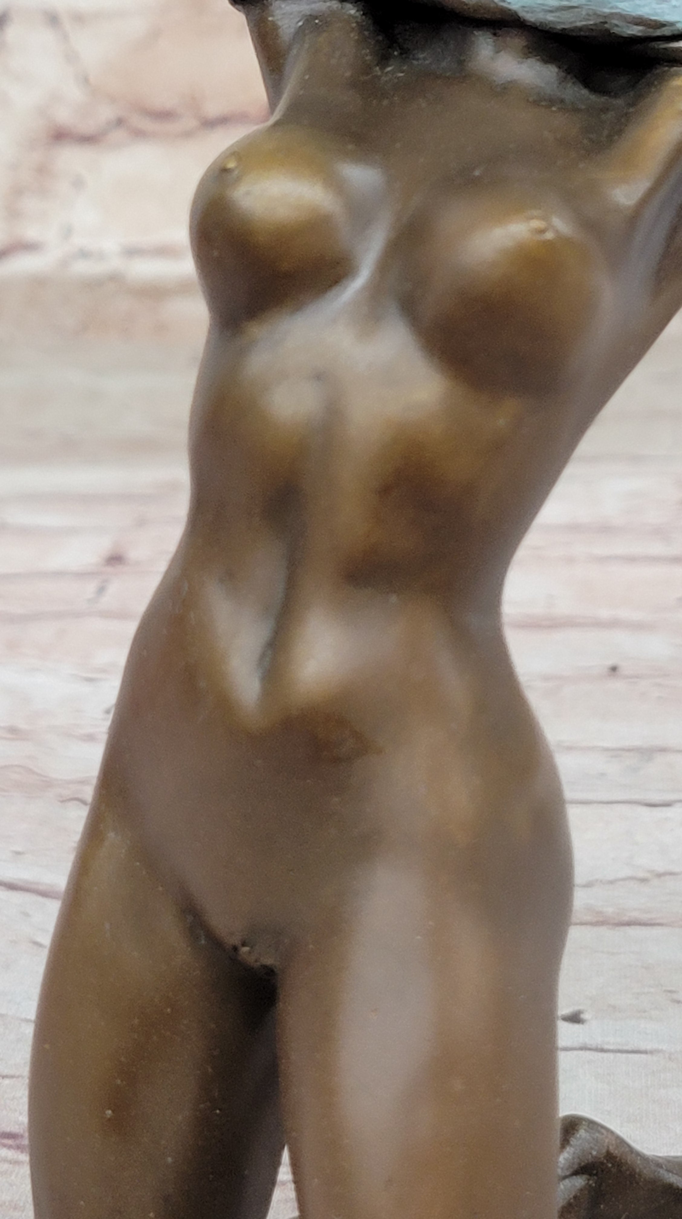 Aldo Vitaleh Nude Girl Removing Her Shirt Bronze Figurine Sculpture Original Art