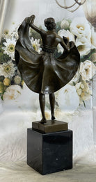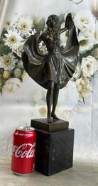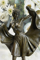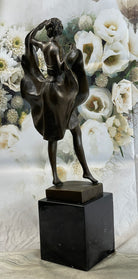Bergman Art Deco Flapper Dancer Girl Lifting Skirt Bronze Statue Figure Sculpture 18" x 8"