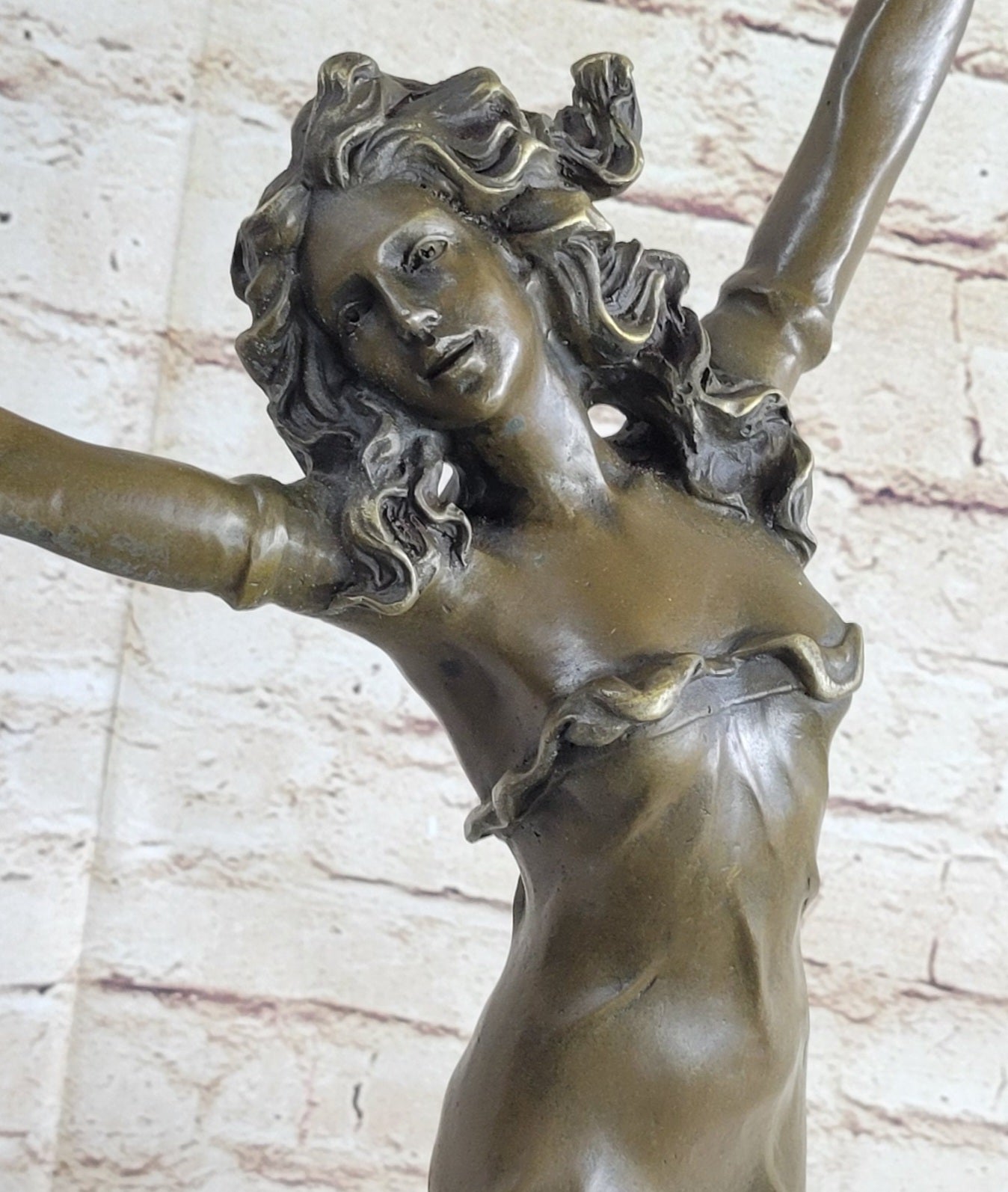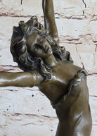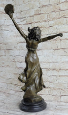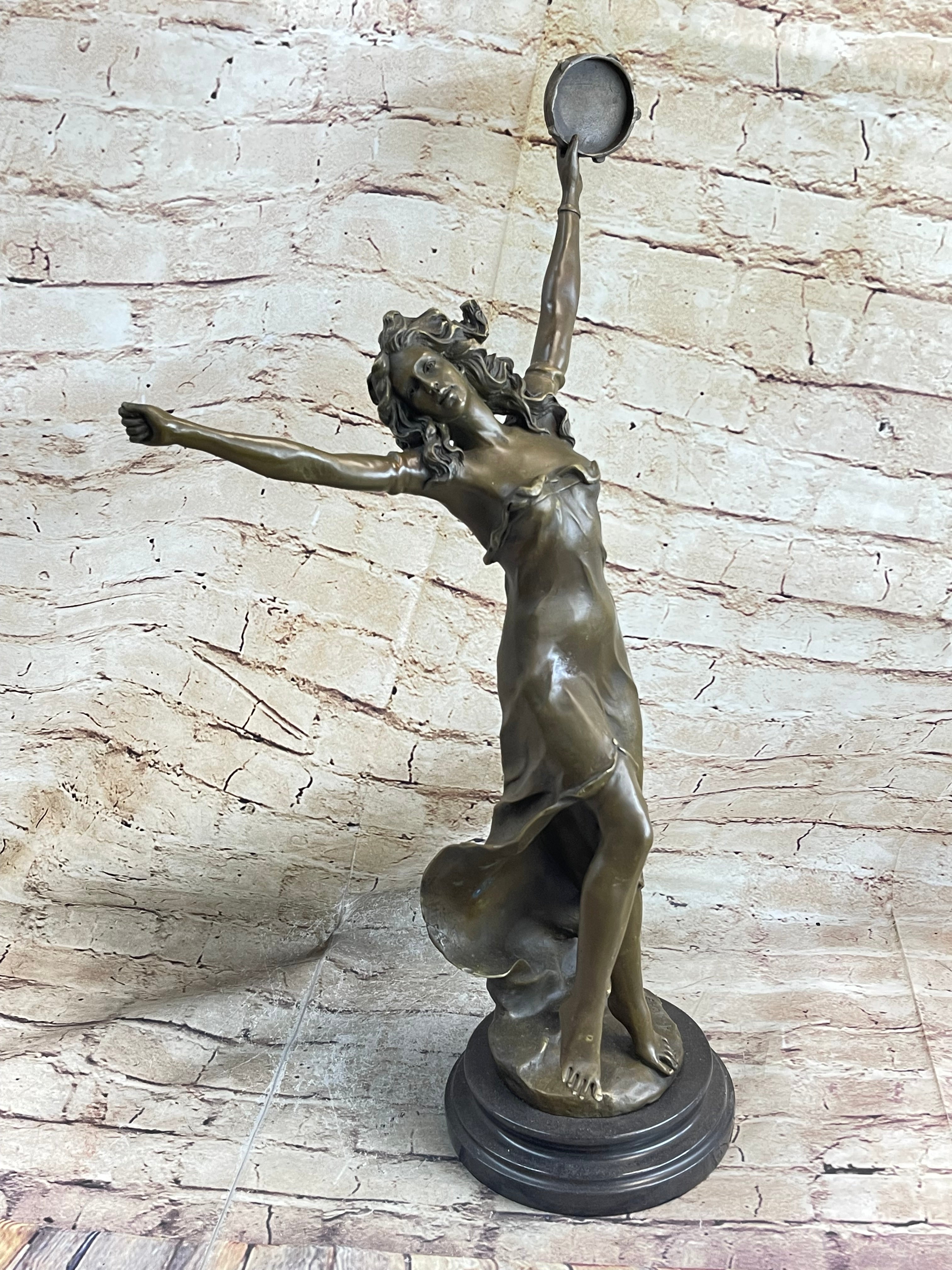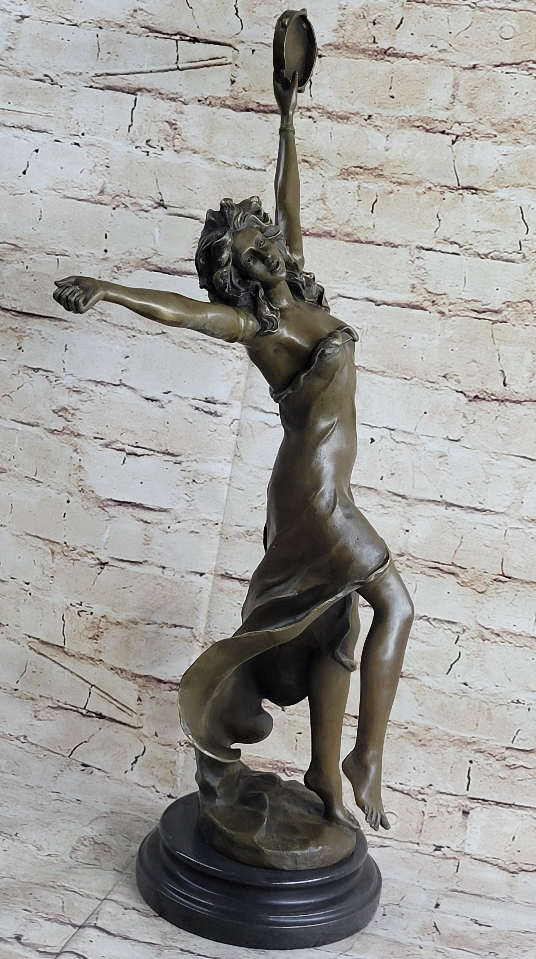 Tambourine Dancer Girl Bronze Sculpture Statue Figure on Marble Base