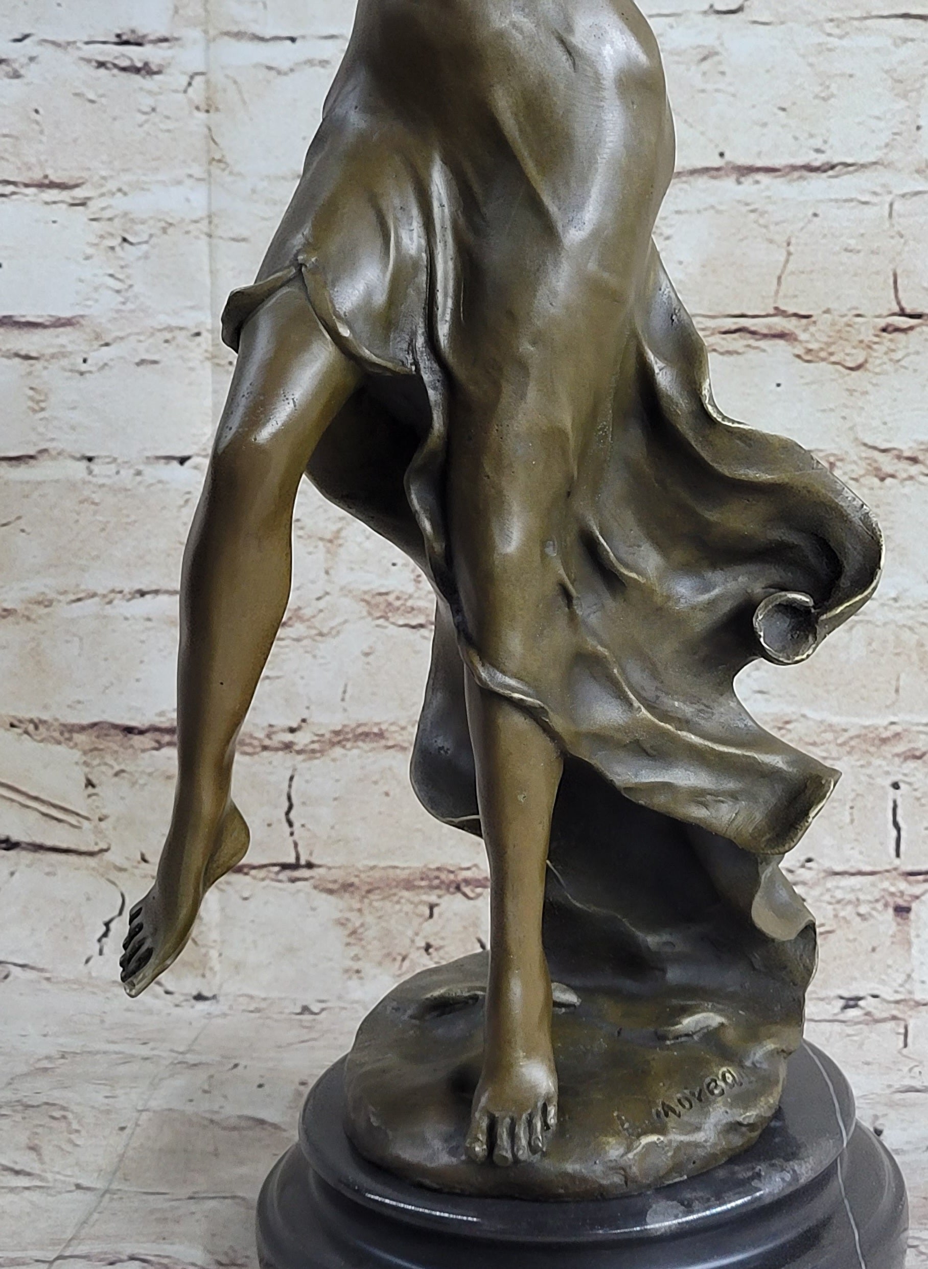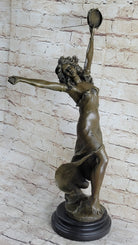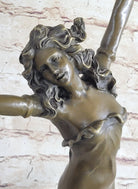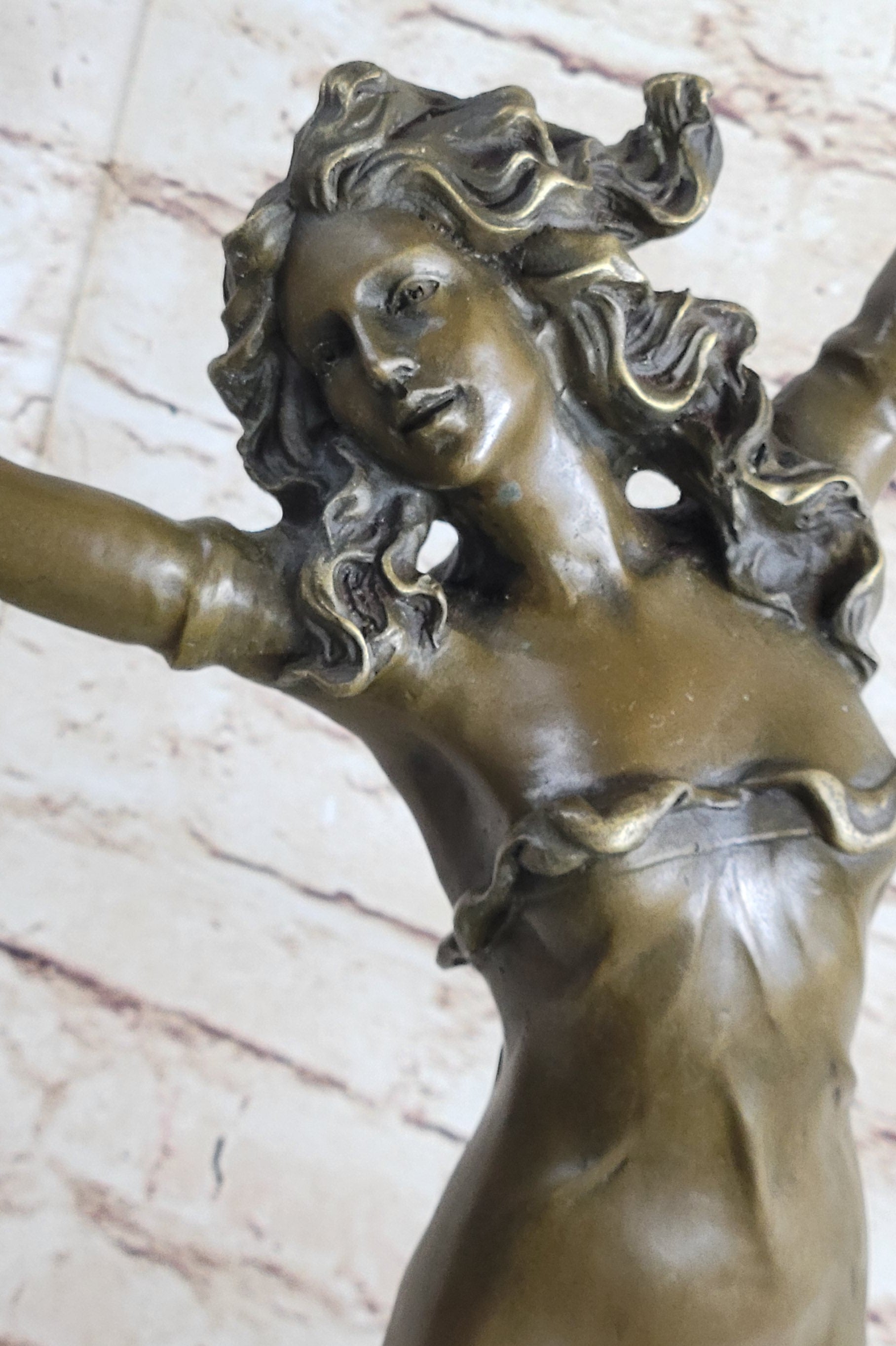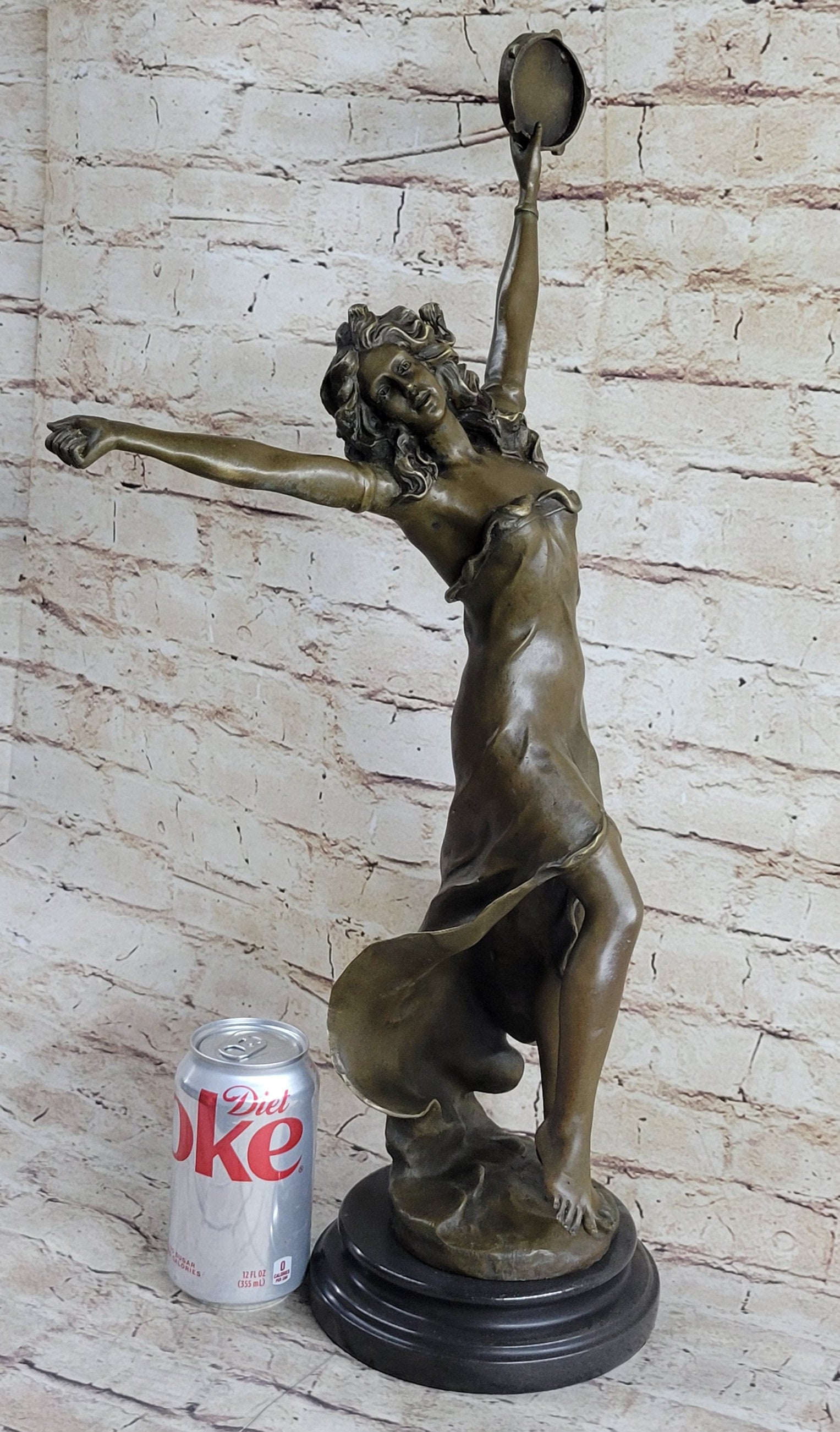 Tambourine Dancer Girl Bronze Sculpture Statue Figure on Marble Base