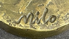 Crafted through the ancient and time-honored method of lost-wax casting, this exquisite ballerina is a testament to the enduring tradition of artistic excellence. To ensure her lasting beauty, she is adorned with a rich brown patina stain, preserving her enchanting form for generations to come. Poised atop a black marble base, she is elevated to a position of prominence, her elegance further accentuated. The presence of artist Milo's signature underscores the quality and authenticity of this remarkable piece, making it a cherished addition to any collection.