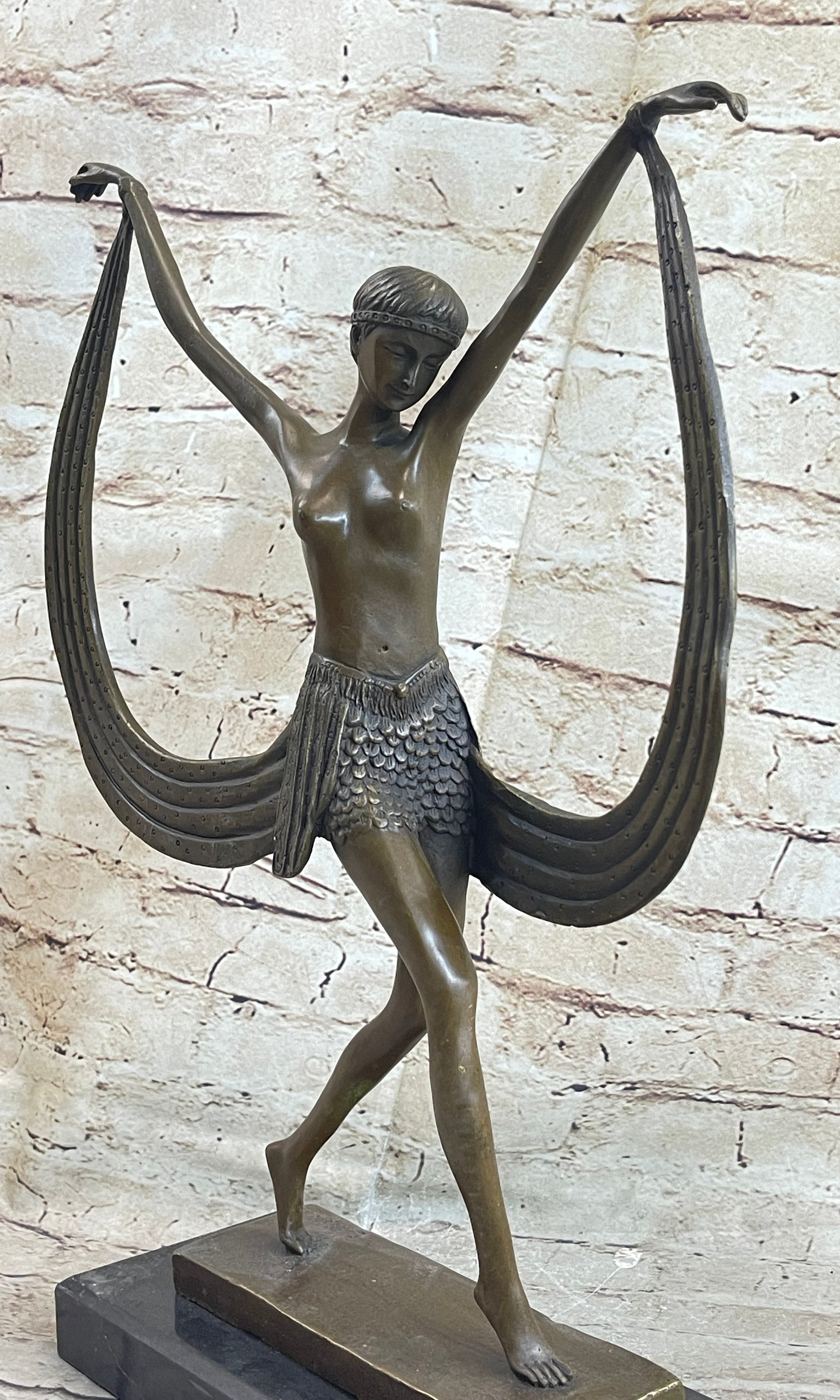 Art Deco Mirval Topless Female Dancer Bronze Figure Statue Sculpture 18" x 12"