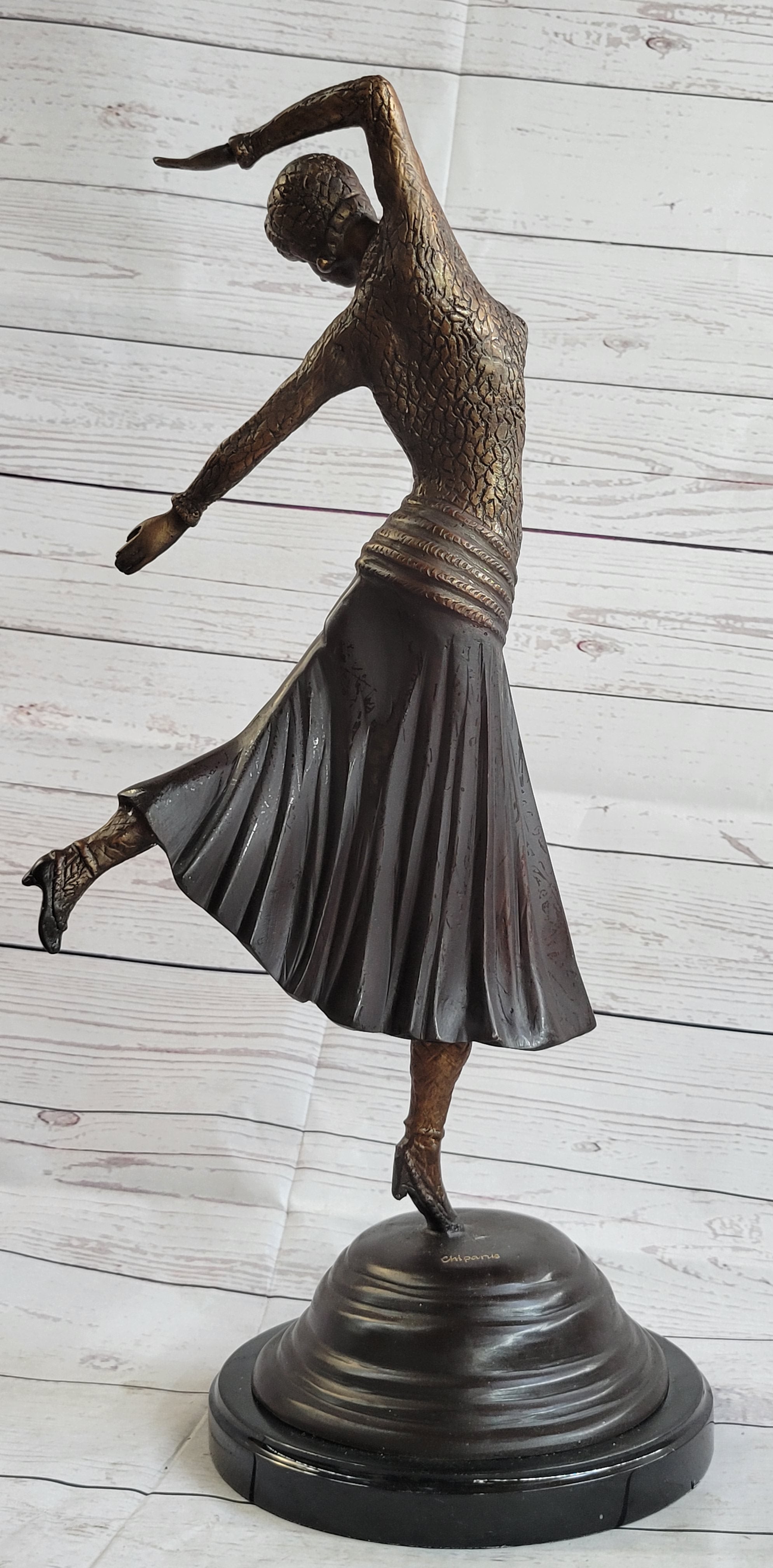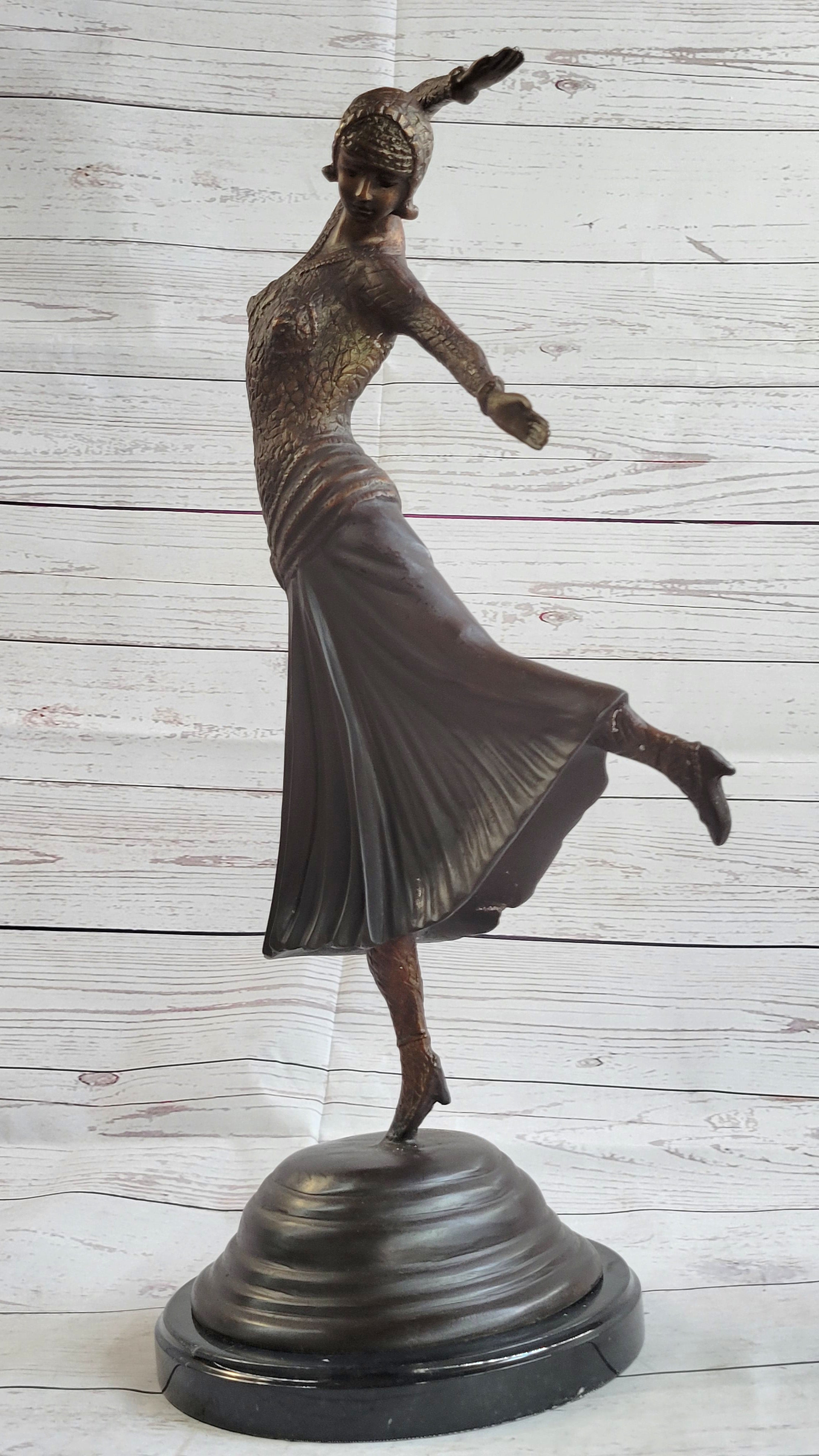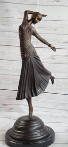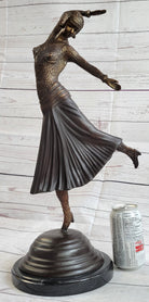 Art Deco Russian Dancer Girl Chiparus Bronze Statue Sculpture Decor Marble Base