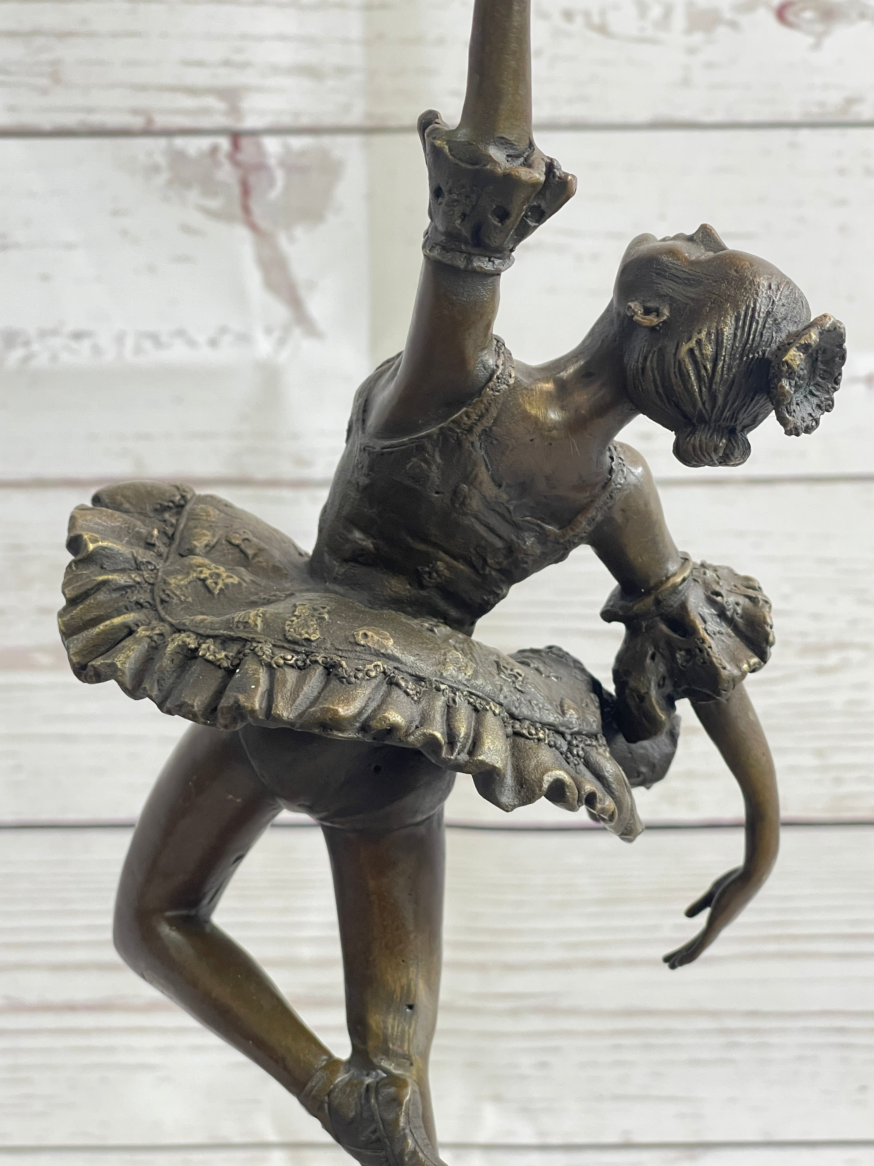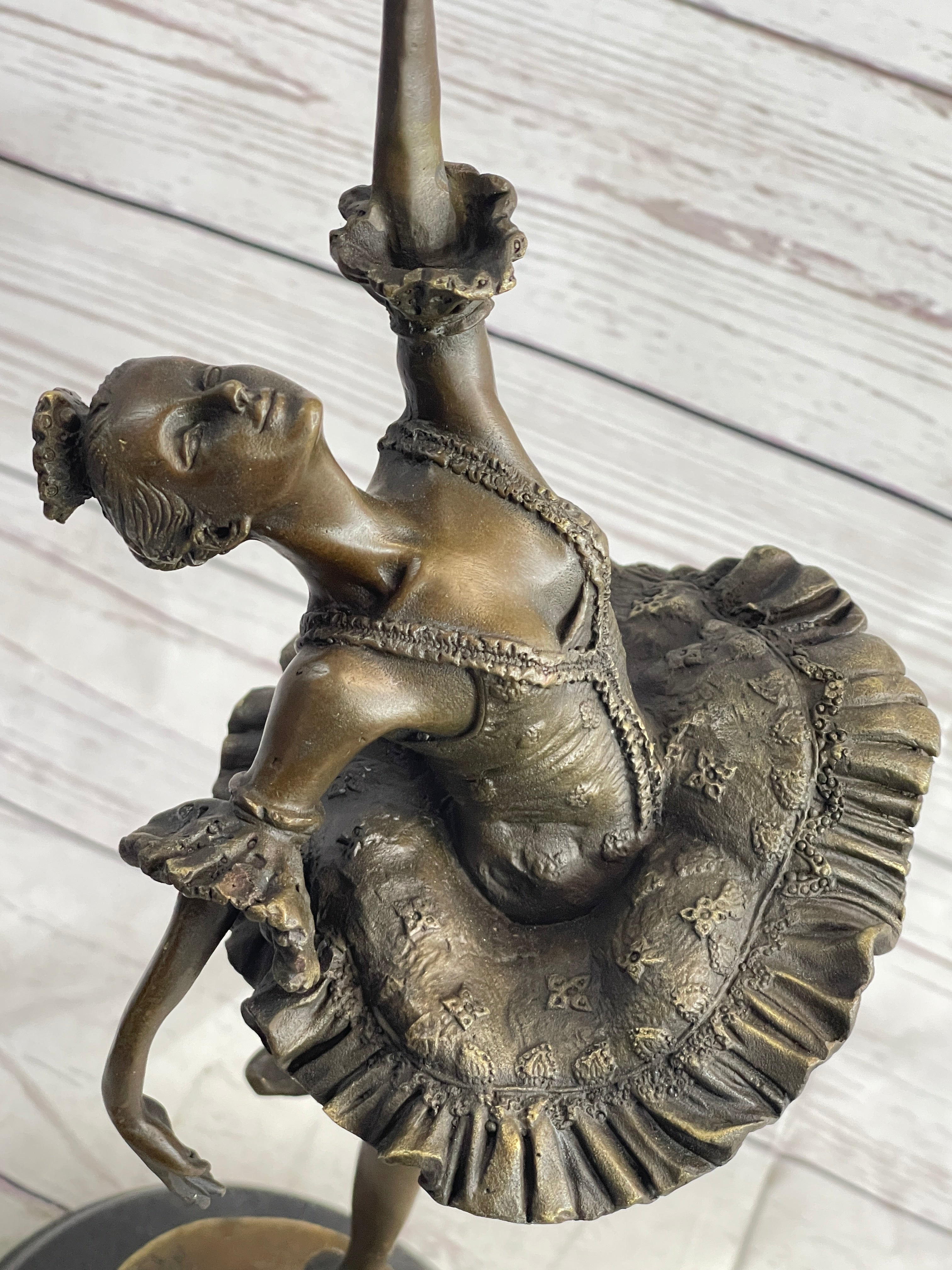 Ballerina Ballet Dancer Bronze Sculpture Statue Signed Original Art on Marble Base