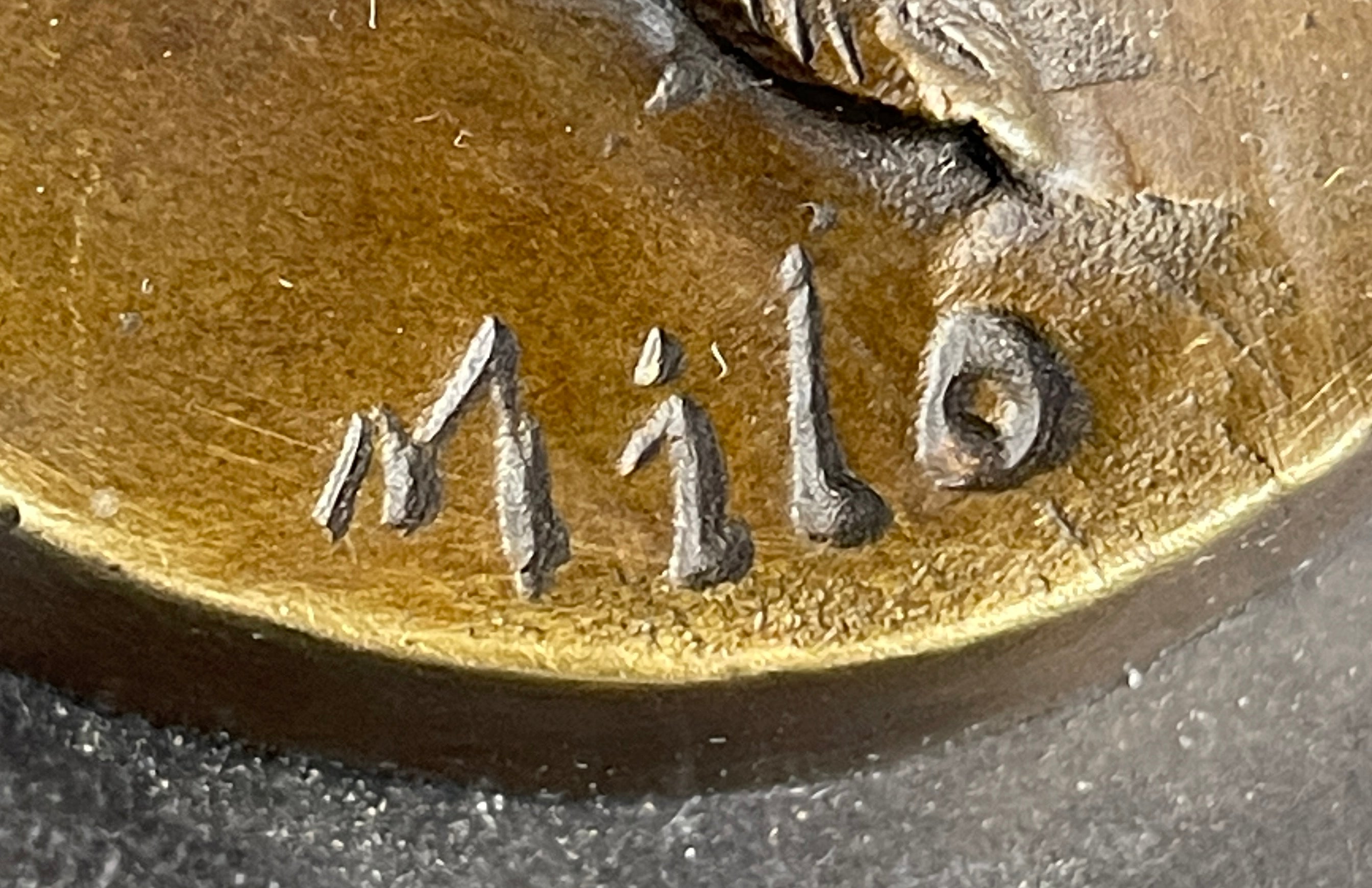 This exquisite bronze sculpture is a must-have for ballet enthusiasts and art collectors alike. It celebrates the artistry and dedication of the prima ballerina, immortalizing her performance in a timeless piece of art. With the signature of the renowned artist, Milo, this sculpture is a symbol of craftsmanship and authenticity. Display it proudly in your home or give it as a gift to someone who appreciates the beauty and grace of the ballet.Bronze Dimensions with Marble Base: Height 13" X Width 8"
