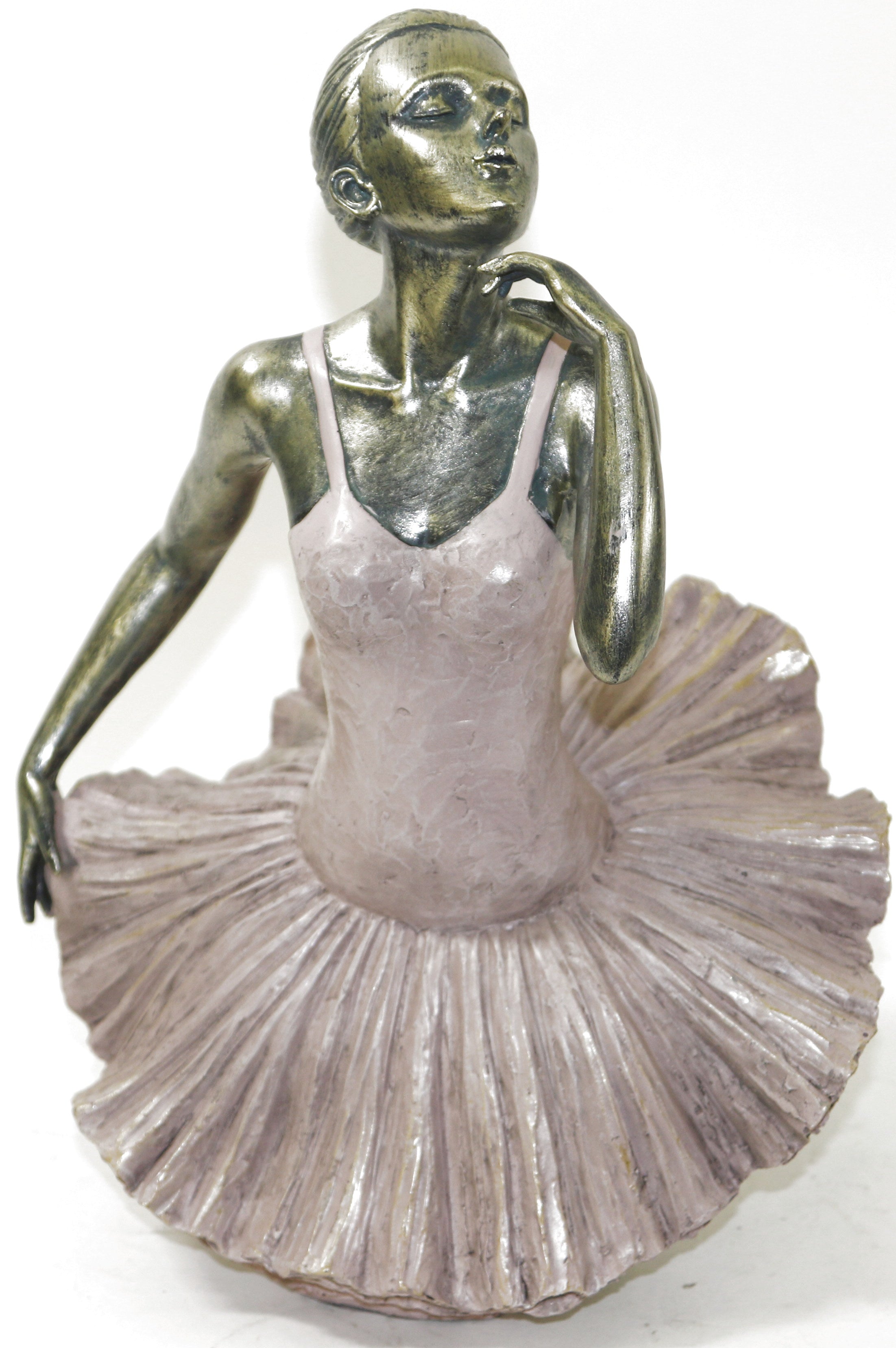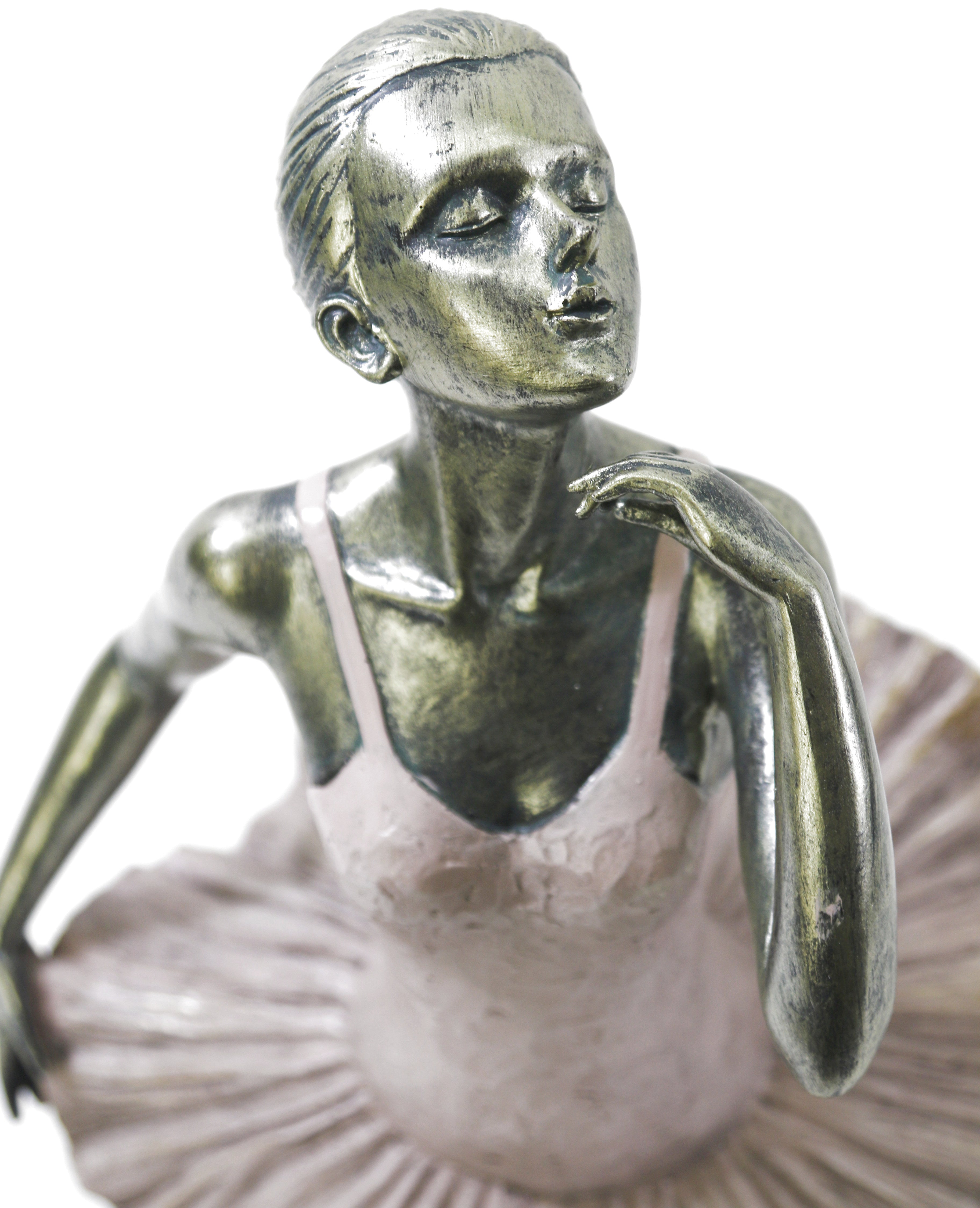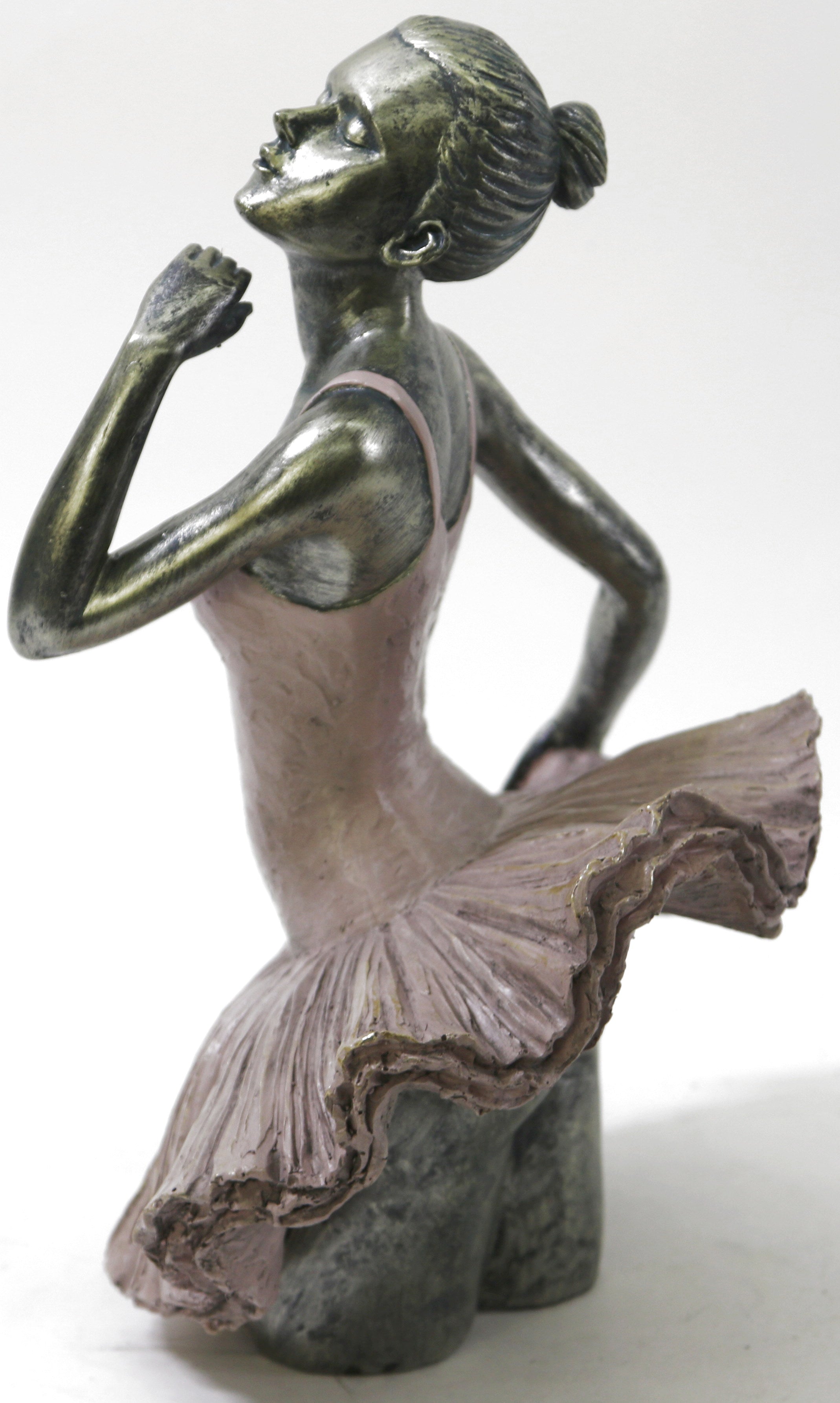 Polyresin is a resin compound generally used for statues, figurines, bobble heads and decorative furniture. It is a sturdy material that can be intricately molded, allowing a great level of detail with consistent texture. One form of polyresin often used is Alabastrite. It is a stone-based material, easy to sculpt, takes paint well, and has a similar appearance to porcelain and pottery.* Crafted of Cold Cast Resin Pink and Bronze Finish