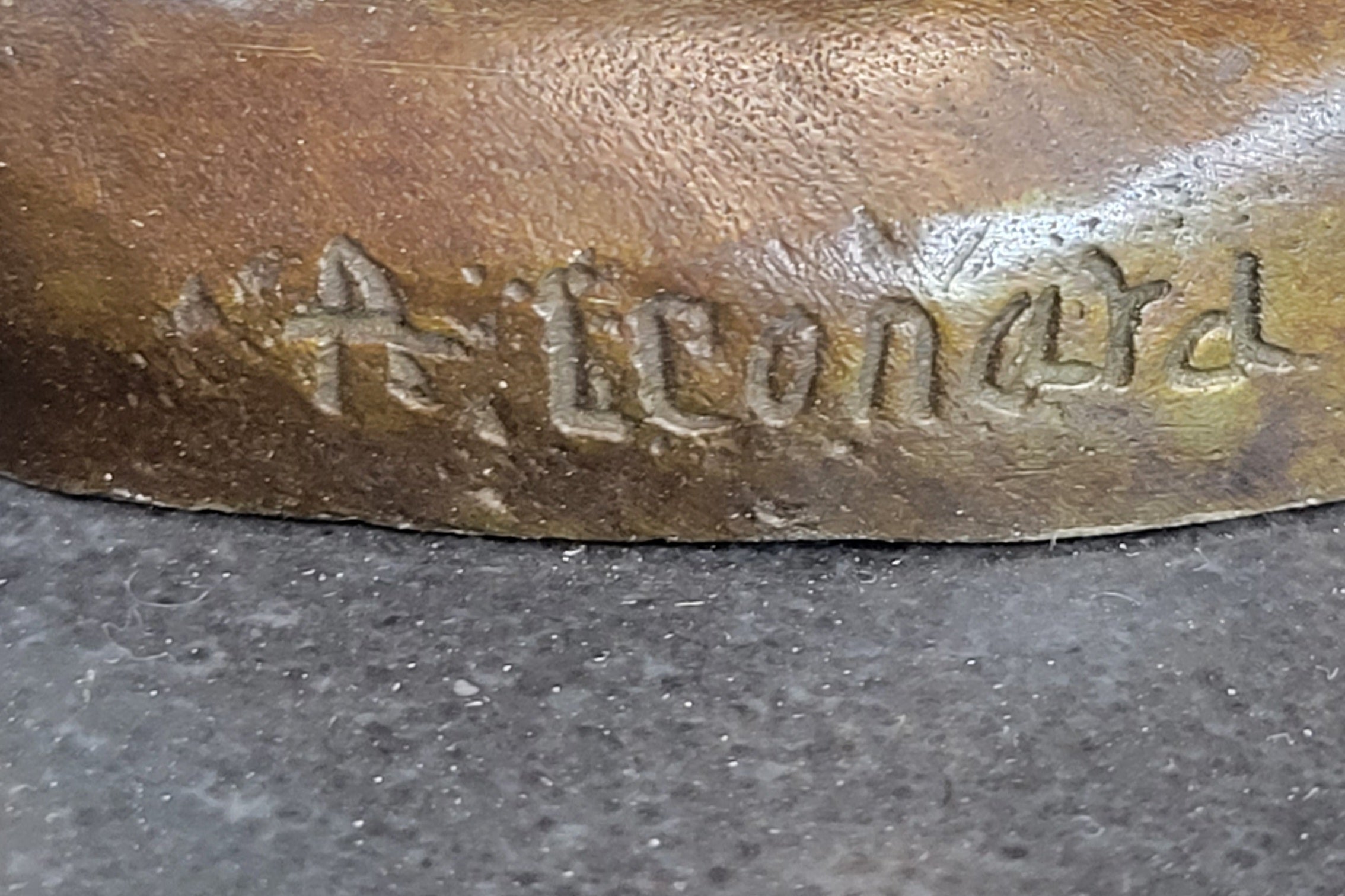 Handmade with precision and care, this sculpture is crafted from 100% bronze, ensuring both durability and a timeless aesthetic. Mounted on a sleek black marble base, it stands as a testament to the artist's skill and creativity. The signature of Agathon Leonard further enhances the quality of this captivating artwork, making it a prized addition to any art collection. Let this sculpture bring an aura of refinement and grace to your living space, perfect for adding a touch of elegance and sophistication to any room.Bronze Dimensions with Marble Base: Height 17" X Width 11"