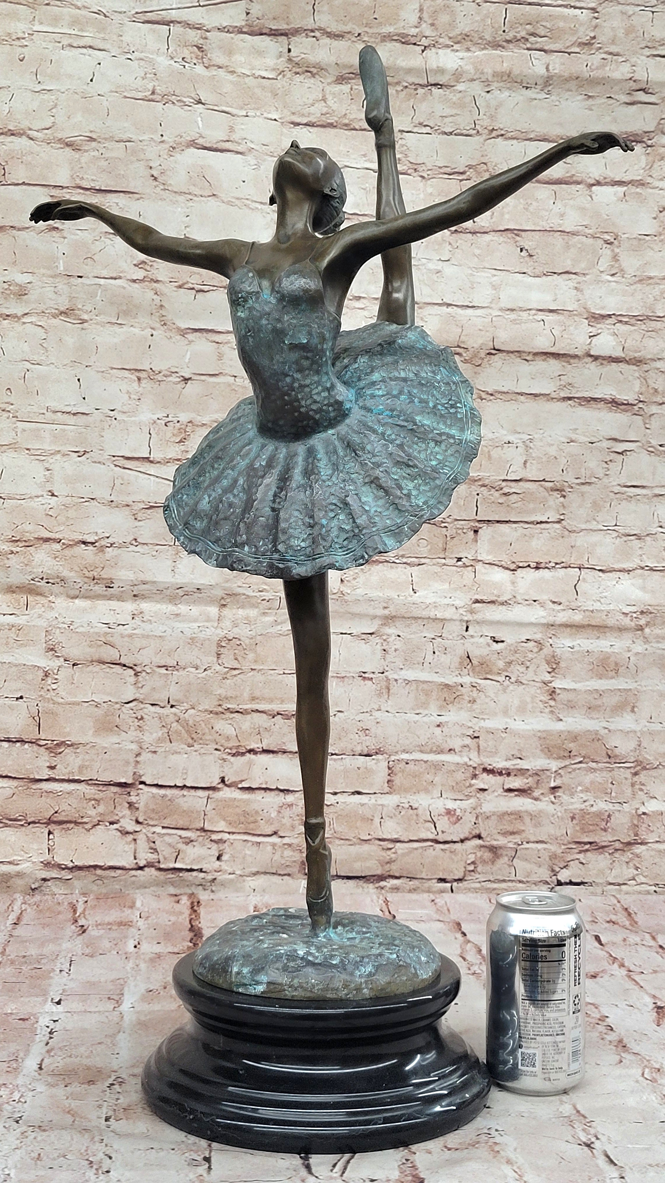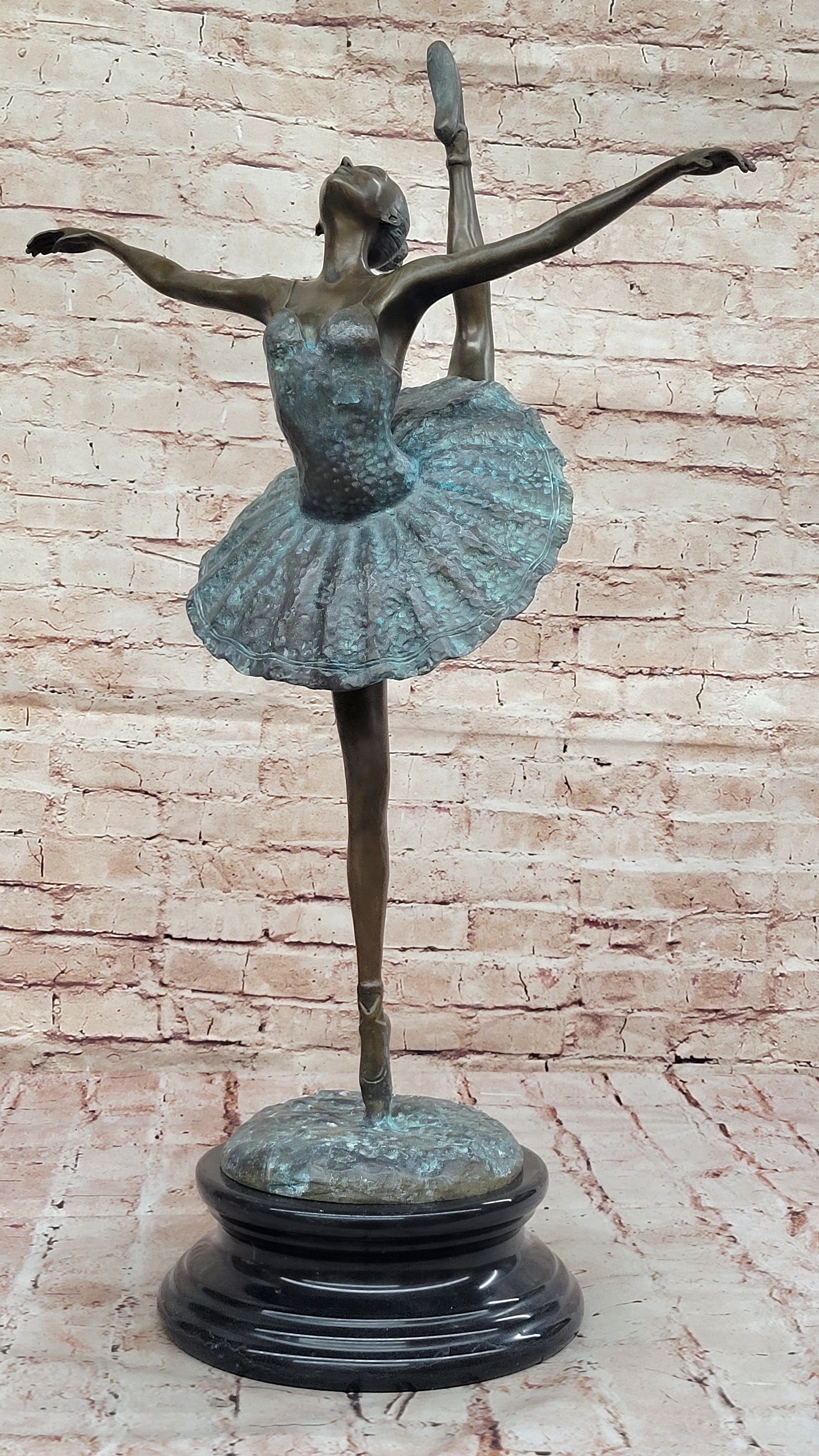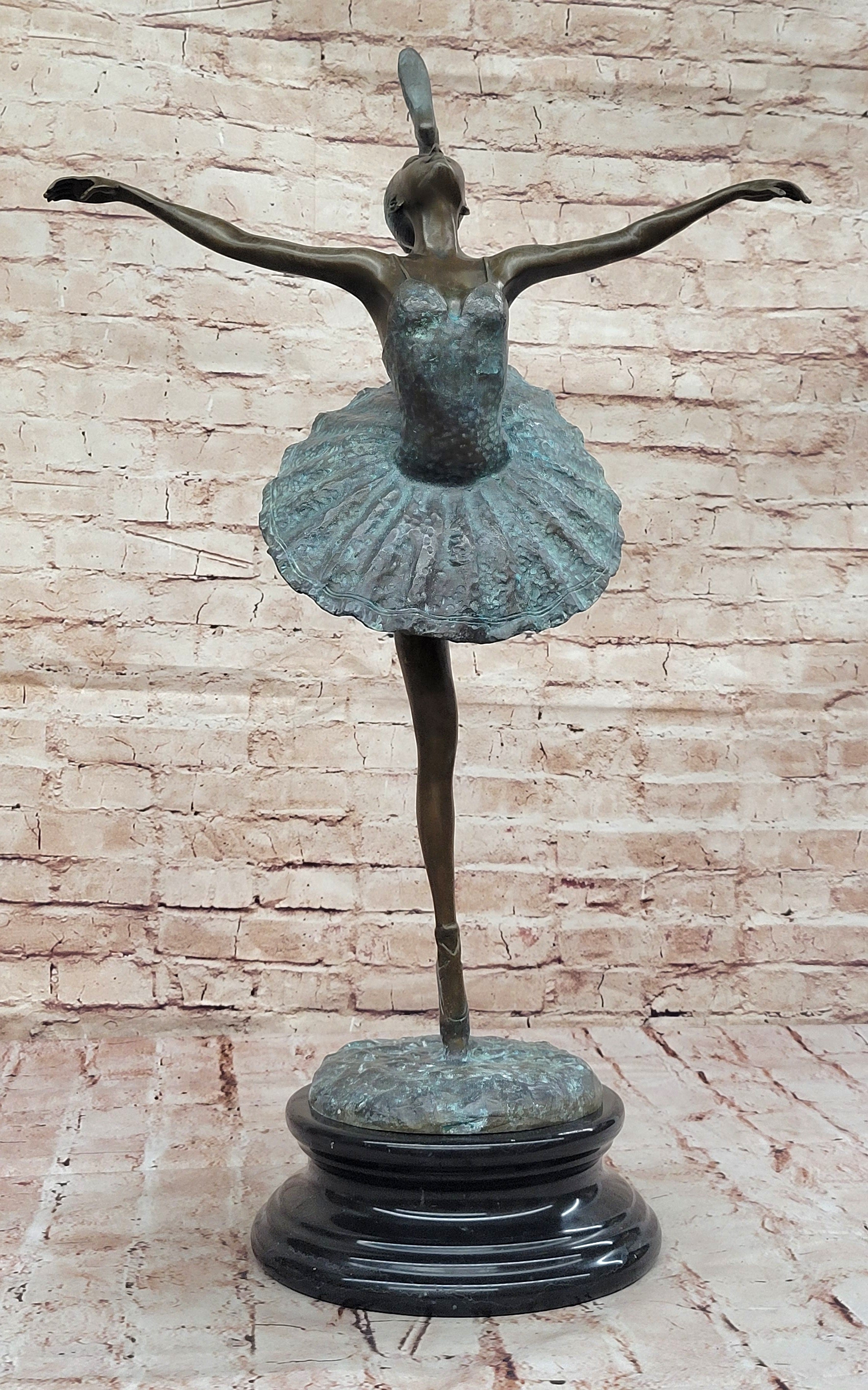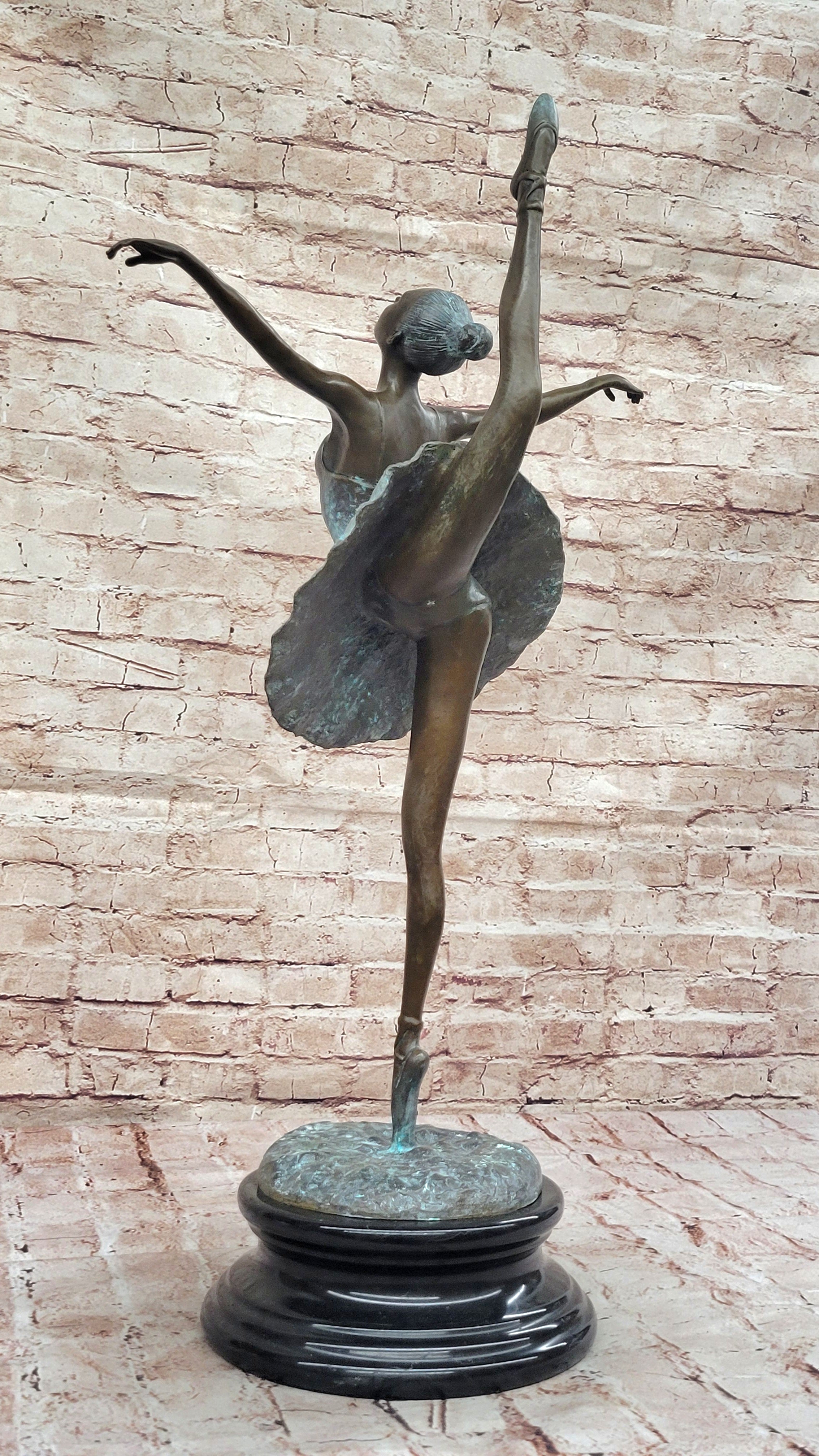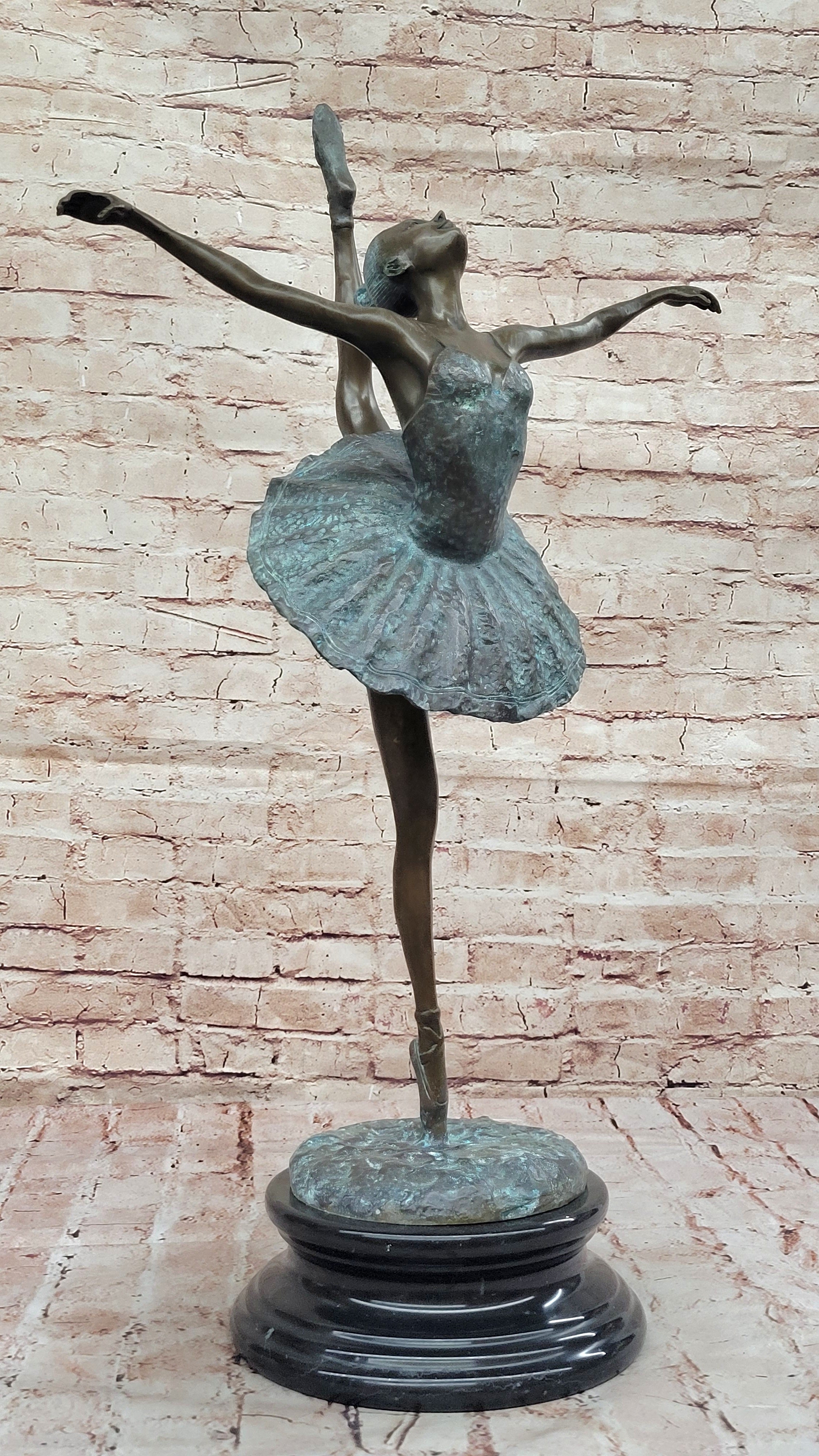 As the world's leading dealer of small to medium-sized bronze sculptures, we take pride in offering the finest European bronze sculptures and statues at unbeatable prices. With swift delivery from our New York warehouse within 1 business day, your new piece of art will arrive promptly and in perfect condition. Embrace the timeless beauty of ballet with the Ballet Dancer Girl Bronze Metal Statue—it's more than a sculpture; it's a celebration of the enduring art of dance.Bronze Dimensions with Marble Base: Height 28" X Width 12"