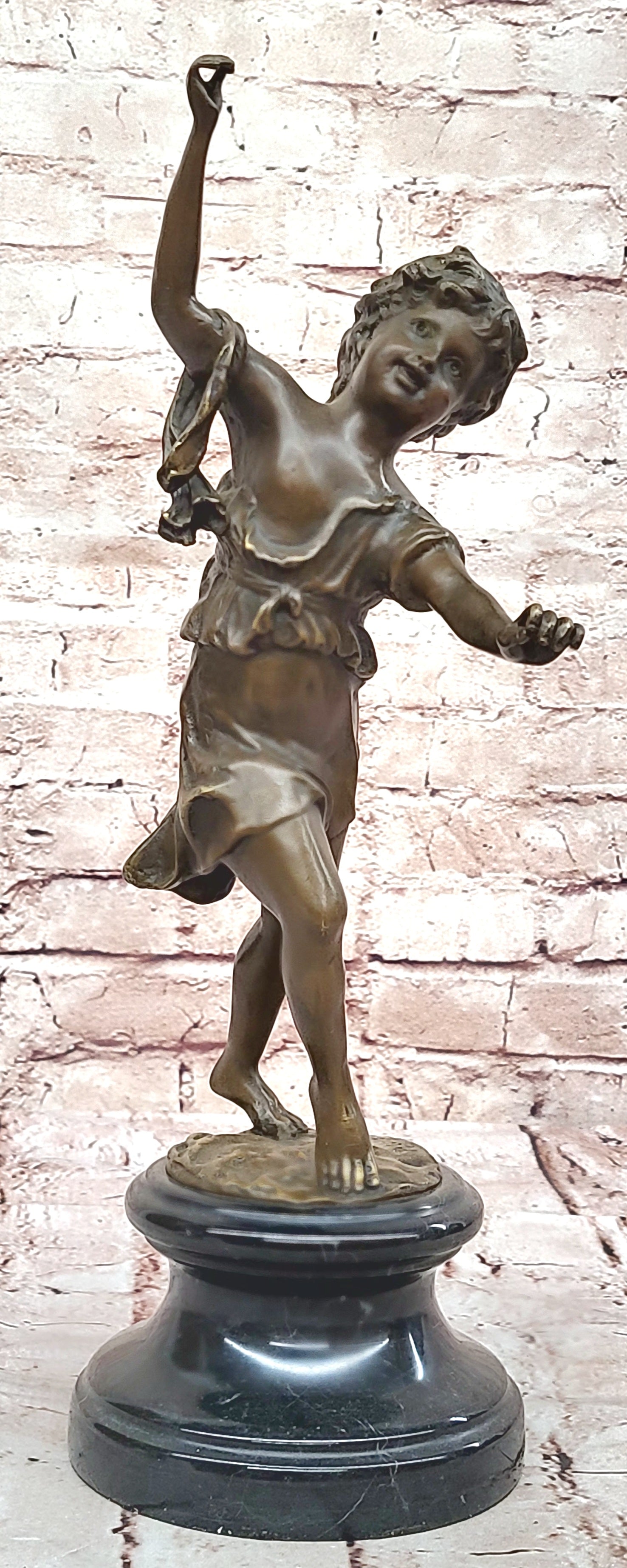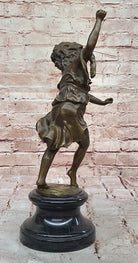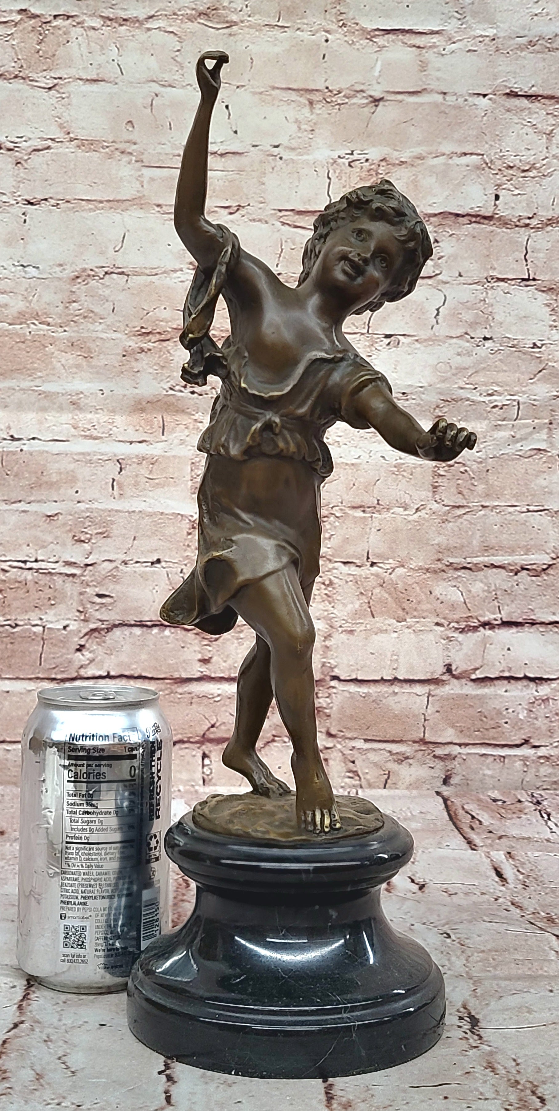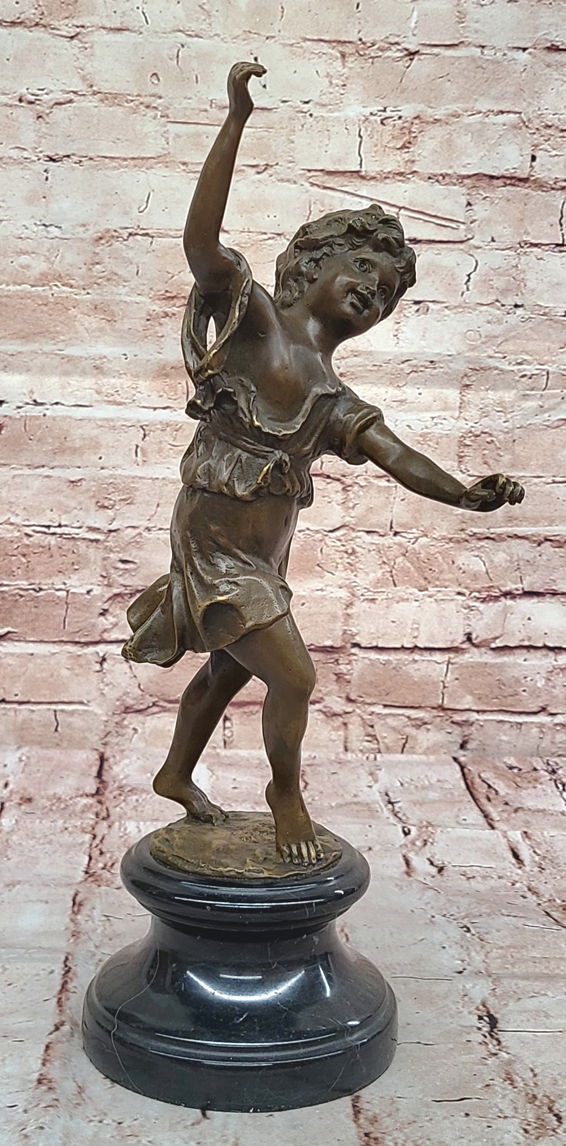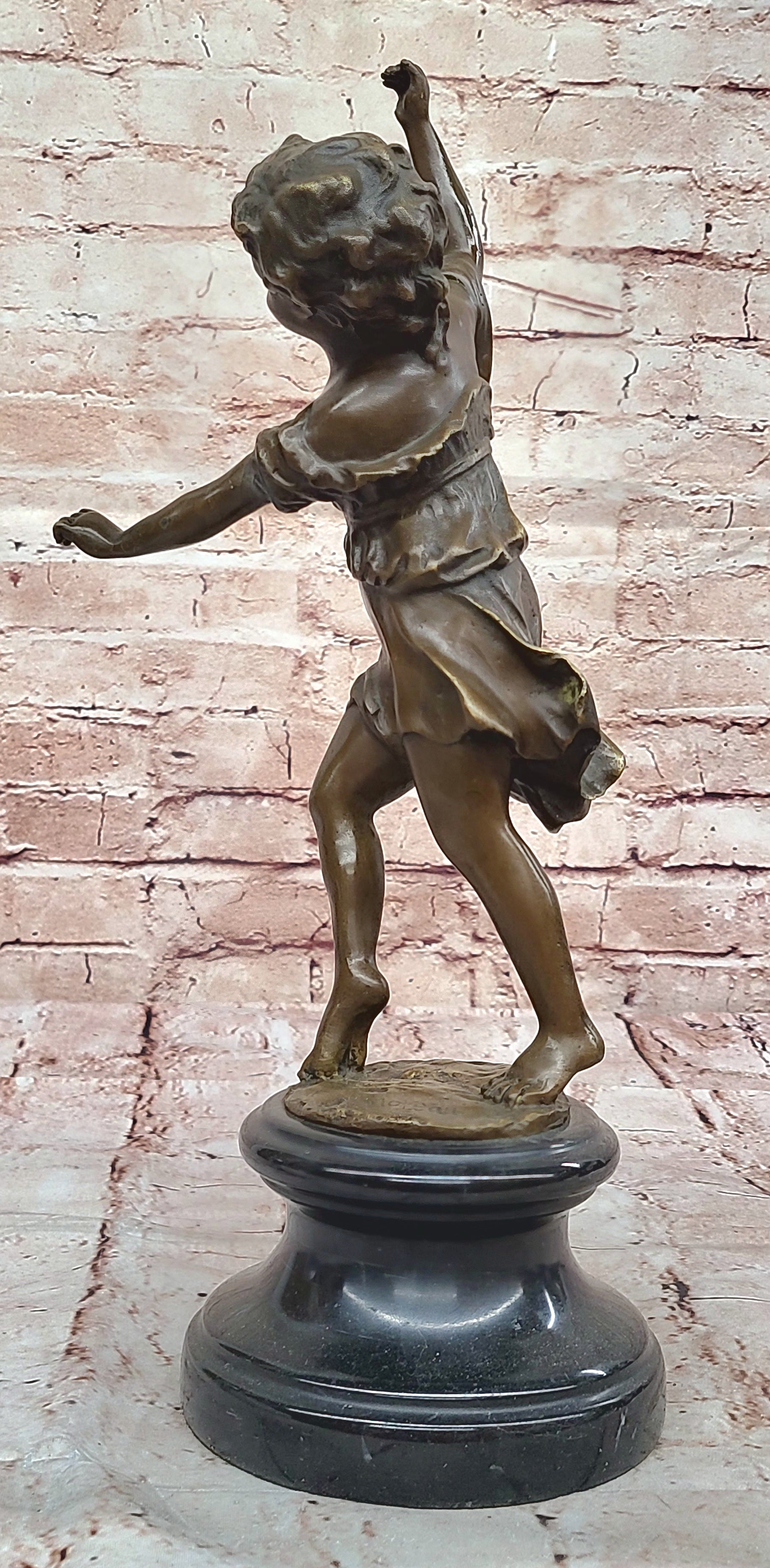 Bronze Dancing Girl Sculpture – Joyful Child Figurine on Marble Base