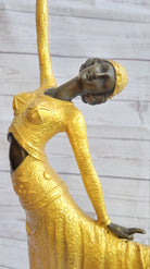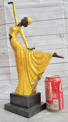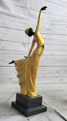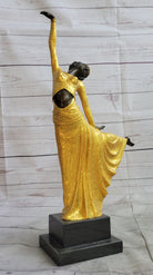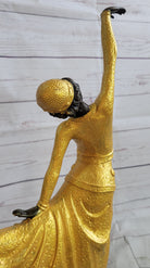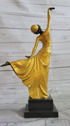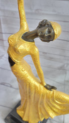 Chiparus Arabesque Dancer Gold Patina Bronze Sculpture Statue Art Deco Figure on Marble Base