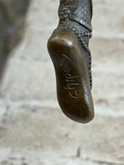 By incorporating resin for the head and arms, the artist has ensured that these features possess a lifelike quality, allowing for greater precision in capturing the subtle expressions and gestures of the dancer. Mounted on a marble base, the sculpture stands as a striking homage to the timeless artistry and beauty of belly dance, inviting viewers to immerse themselves in its enchanting rhythms and movements.Bronze Dimensions with Marble Base: Height 16" X Width 11"