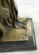 Allow the presence of this Egyptian princess sculpture to transport you to a world of ancient allure and regality. Its combination of beauty, grace, and artistic craftsmanship will surely captivate anyone who beholds it, making it an exquisite centerpiece or a cherished gift for those who appreciate the splendor of Egyptian culture.Bronze Dimensions with Marble Base: Height 10 1/2" X Width 8"