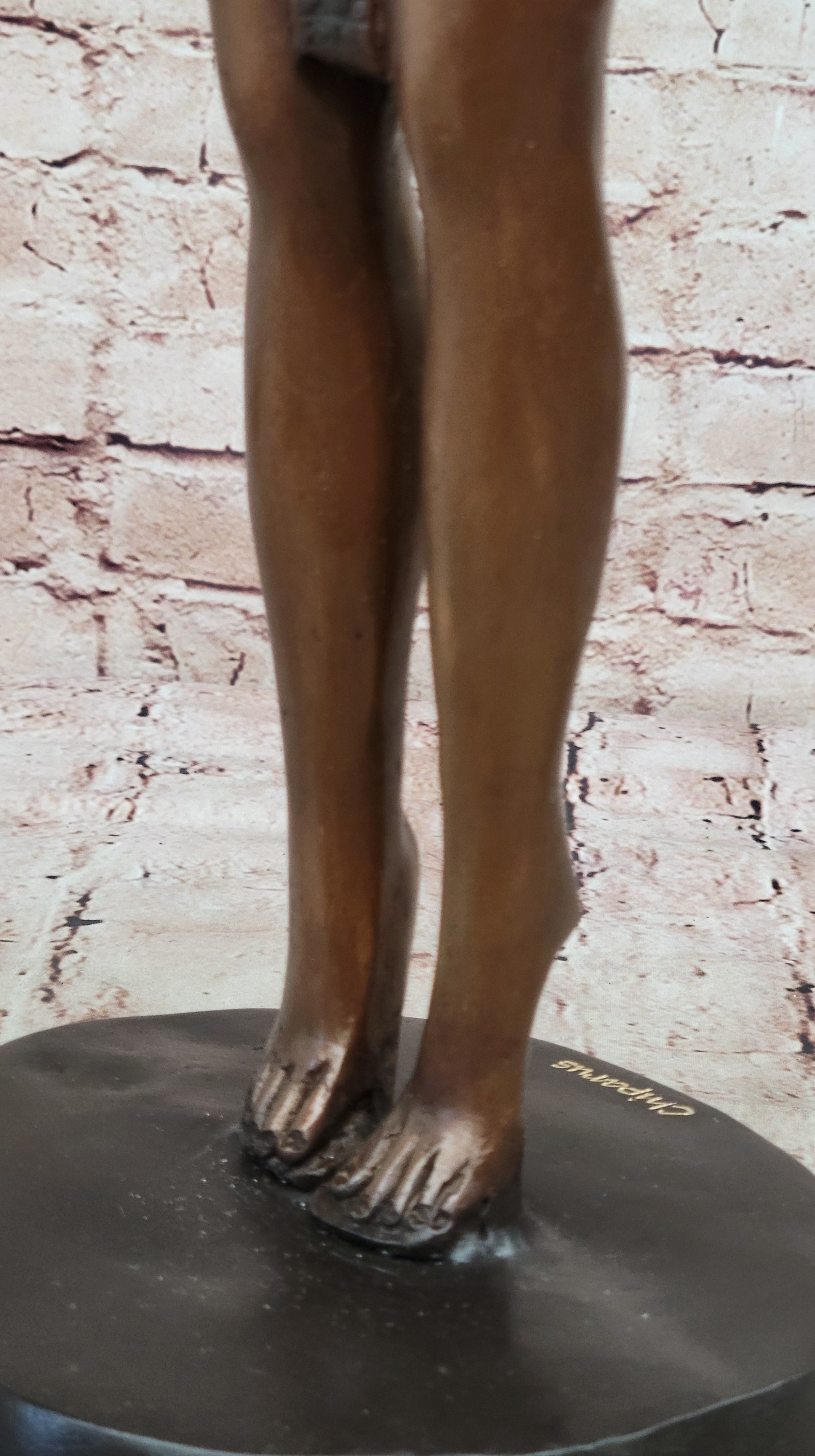 Celebrate the elegance and movement of the Art Deco era with this genuine bronze sculpture of a belly dancer, inspired by the iconic style of Demetre Chiparus. Capturing the grace, poise, and vibrant spirit of early 20th-century performance art, the figure stands in a dynamic pose, adorned in flowing attire that clings to her form with exquisite detail.