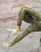 Handmade using the traditional lost wax method, this bronze sculpture is meticulously crafted with intricate detailing that brings the dancer's outfit and posture to life. The addition of multi-color cold paint further enhances the beauty of the piece, providing a rich contrast against the bronze surface, which highlights the sculptural elegance of the dancer's form.