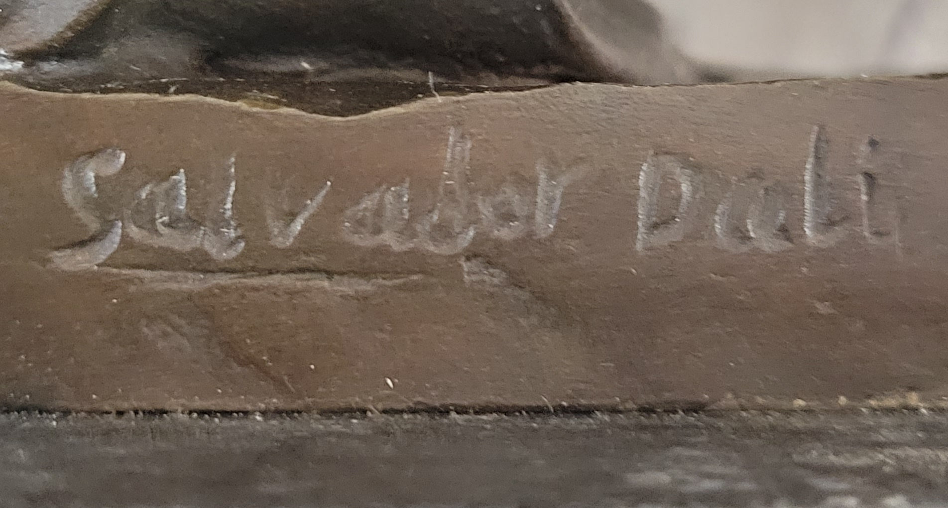 The dark brown patina finish enhances the depth and texture of these sculptures, adding a touch of elegance and sophistication. Each piece is meticulously handmade, paying homage to Dali's iconic paintings and his ability to transcend reality through art. These sculptures serve as lasting tributes to Dali's artistic legacy, allowing art enthusiasts to bring a touch of surrealism and beauty into their homes or collections.Bronze Dimensions with Marble Base: Height 13" X Width 9"