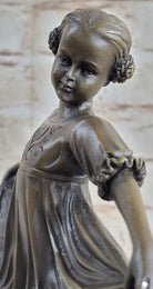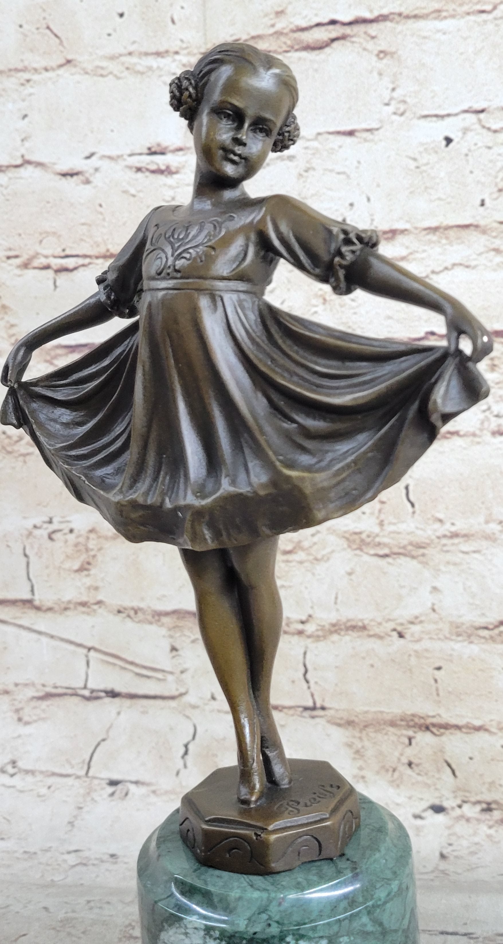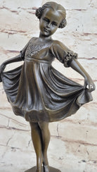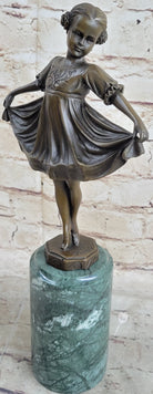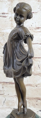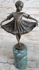 Curtsying Ballerina Girl Ballet Dancer Child Bronze Sculpture Statue Figure on Green Marble Base