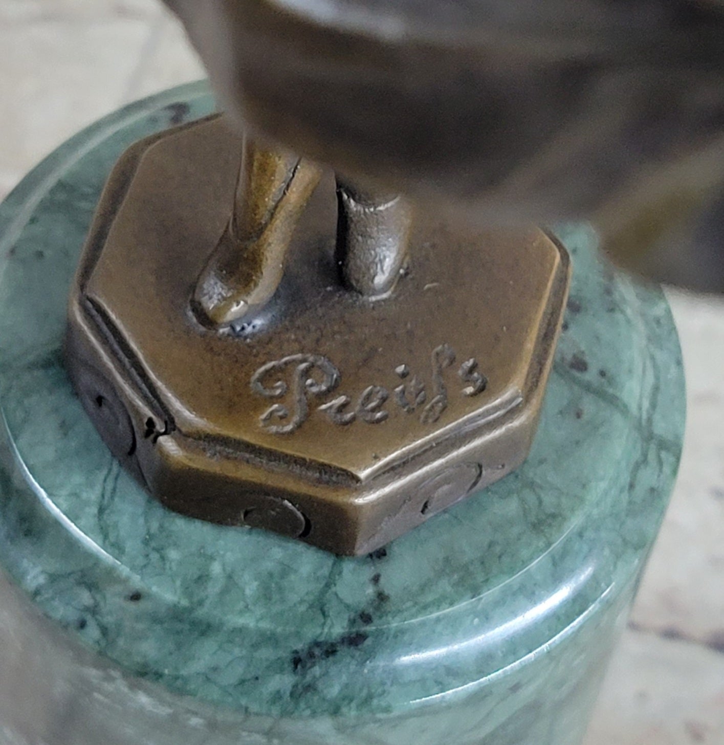 This timeless masterpiece bears the signature of Preiss, a testament to its craftmanship and quality. European Bronze takes pride in curating a collection of museum-quality bronze statues, sourced from renowned artists around the world. The craftsmanship and attention to detail in these magnificent works of art are unparalleled, ensuring that each piece becomes a cherished addition to any art lover's collection.Bronze Dimensions with Marble Base: Height 13" X Width 6"