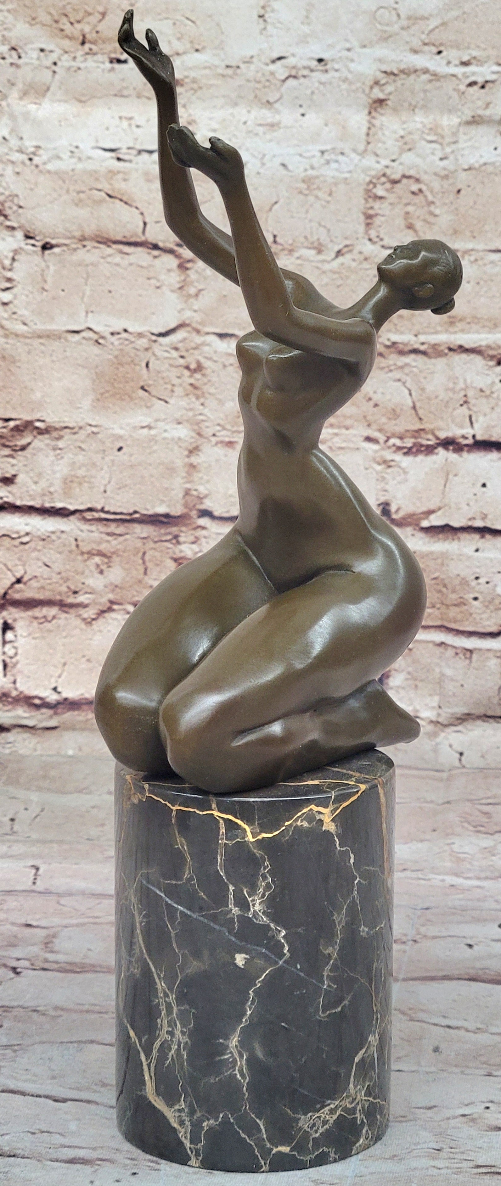 Curvy Nude Female Figure With Hands Outstretched to the Sky - Modern Art Bronze Sculpture