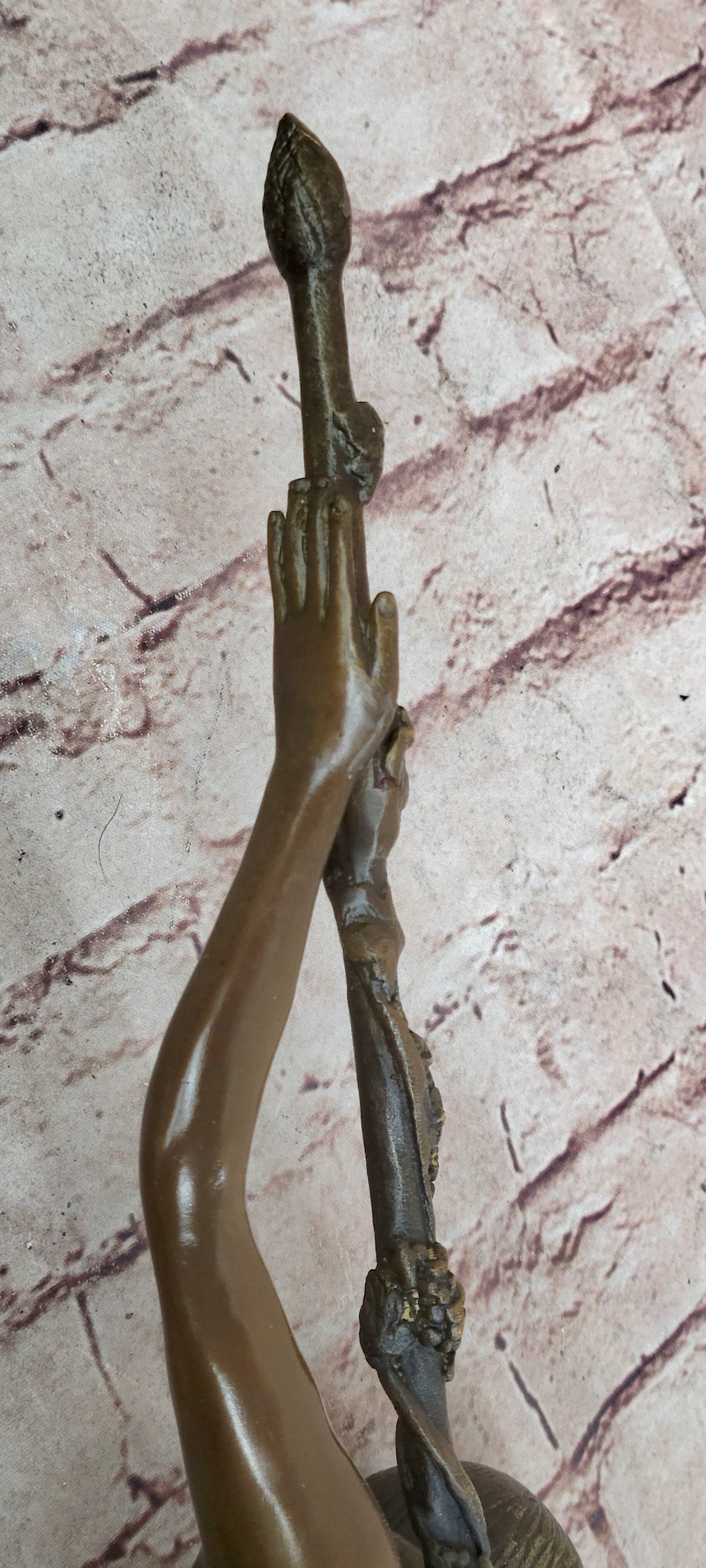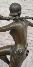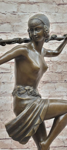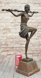 The "Dancer of Thyrsus" sculpture by Pierre Le Faguays is a captivating Art Deco bronze figure statue that exudes elegance and grace. Le Faguays, a renowned artist from the early 20th century, is celebrated for his exquisite sculptures that capture the essence of movement and beauty.