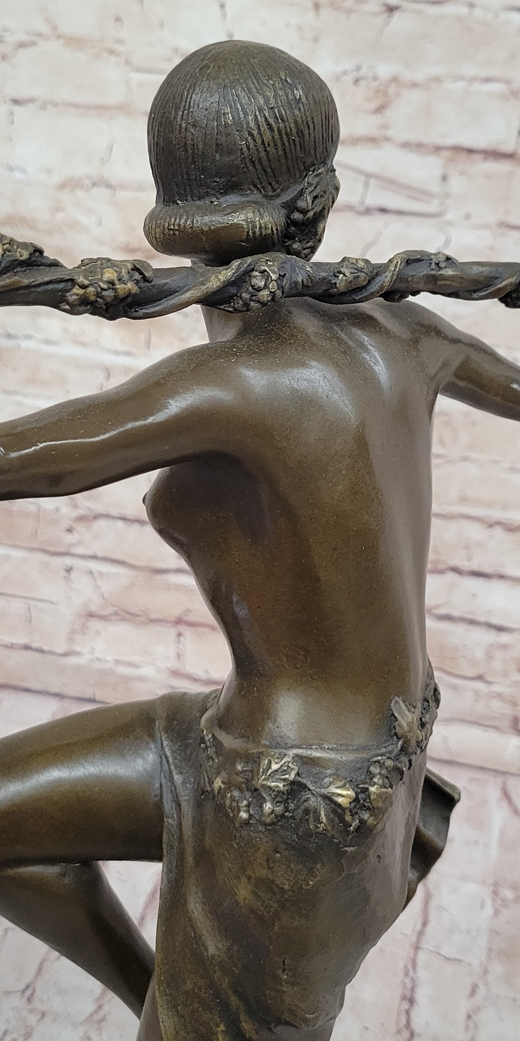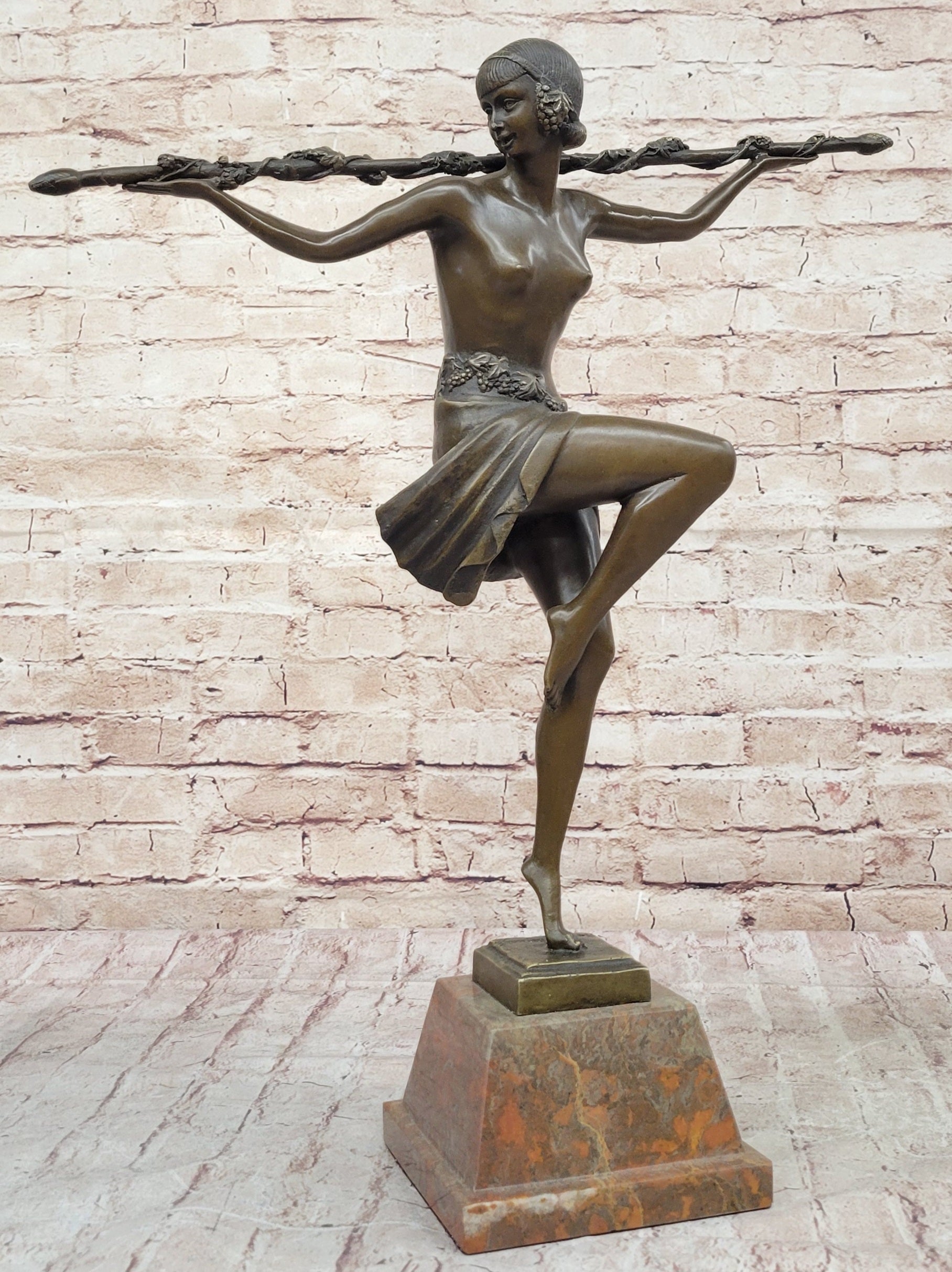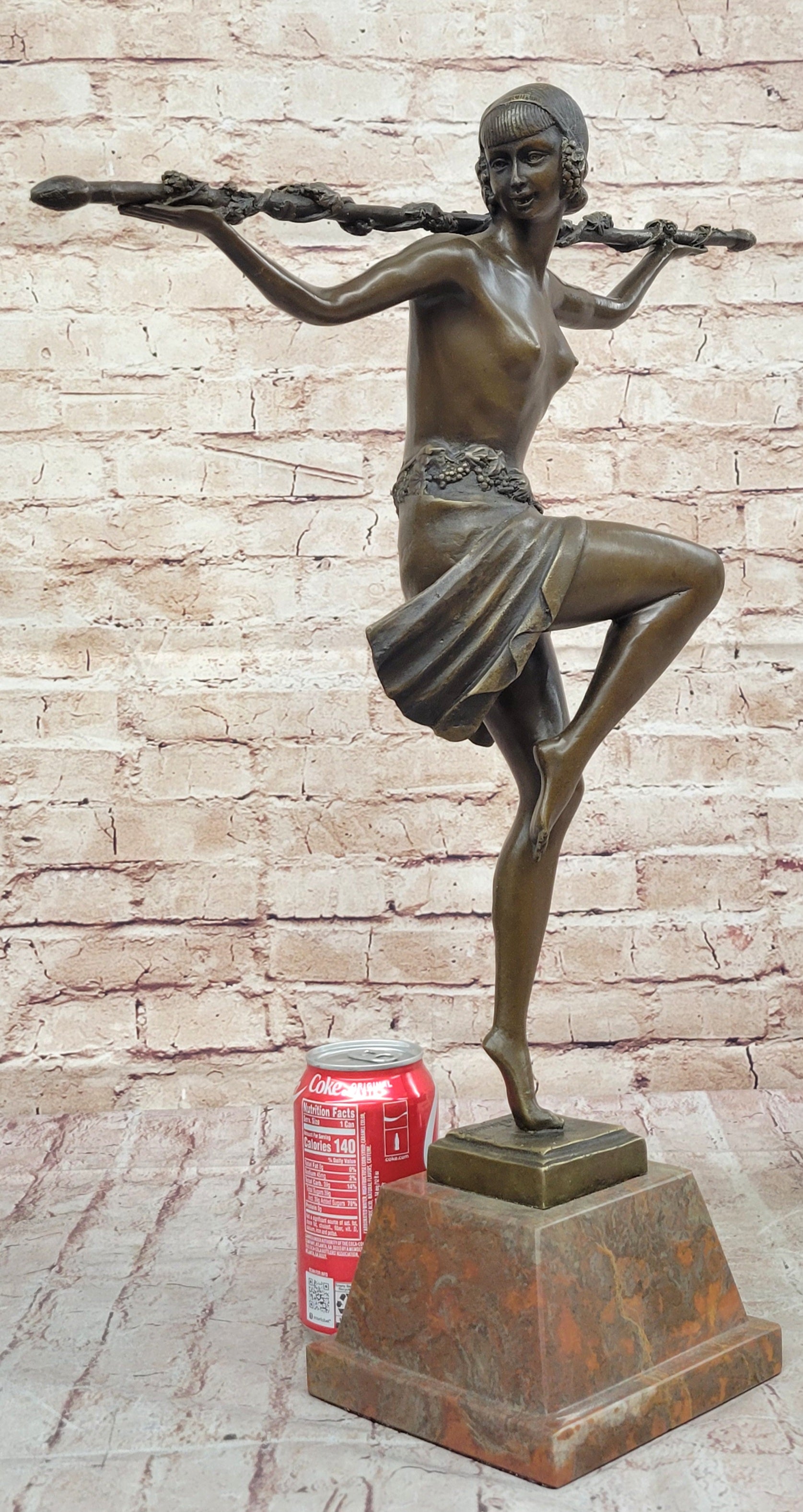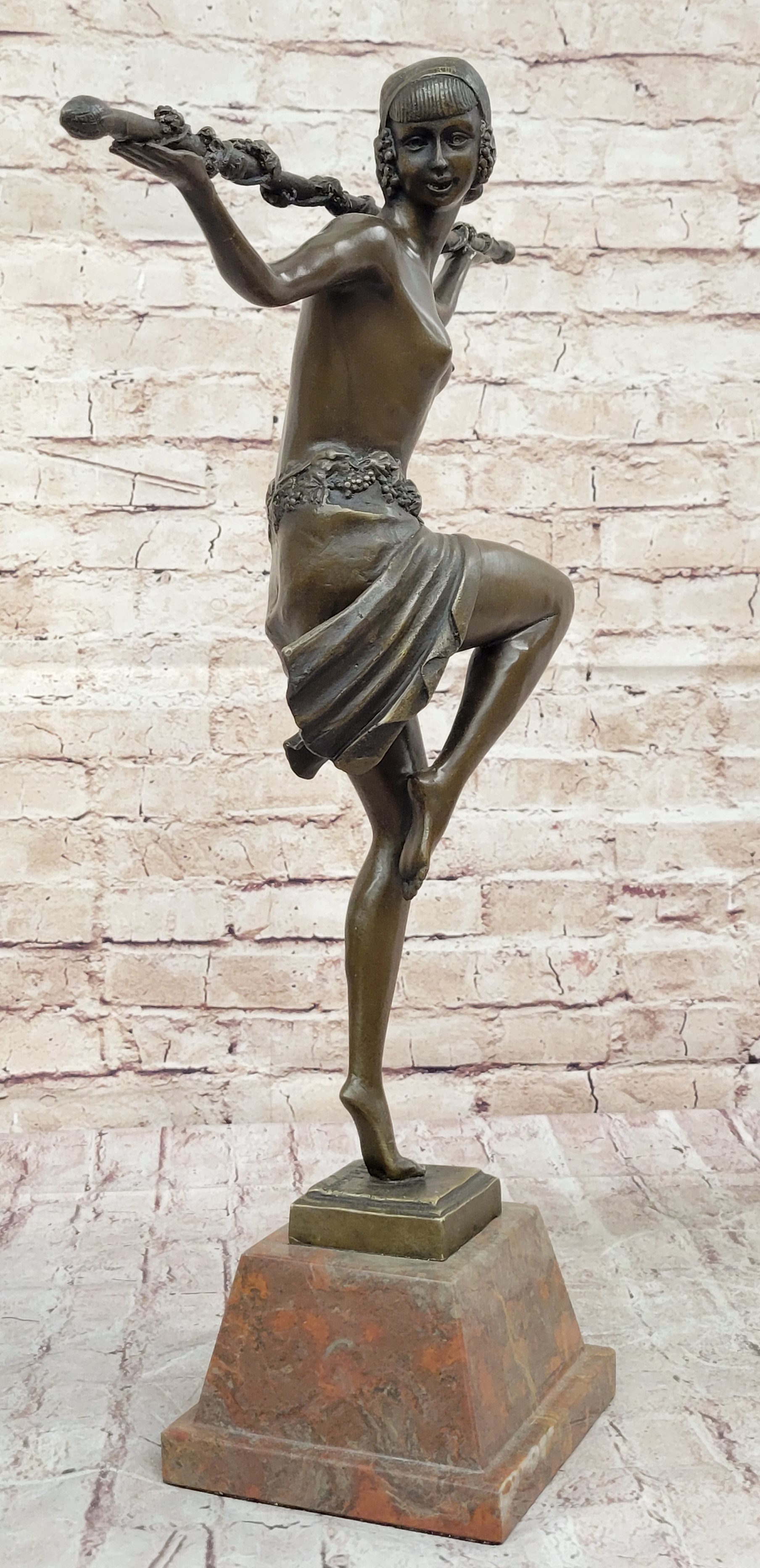 This particular artwork portrays a dancer holding a thyrsus, a symbol associated with Bacchus, the Roman god of wine and ecstasy. The dancer's pose and fluidity of form reflect the Art Deco style's emphasis on dynamism and modernity, making it a striking piece of art.