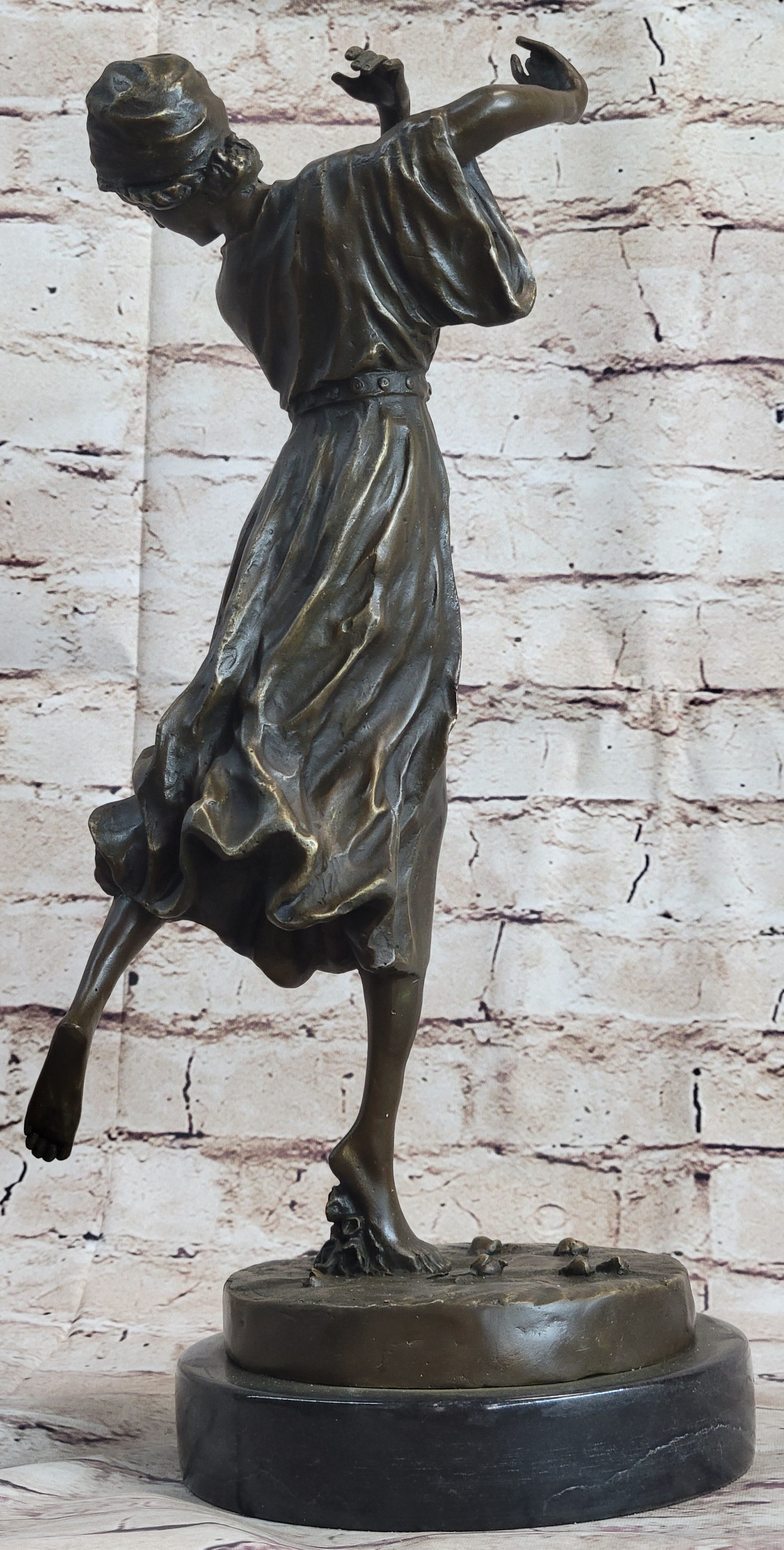 Dancing Woman Girl on One Foot Bronze Statue Sculpture Figure 16" x 12"