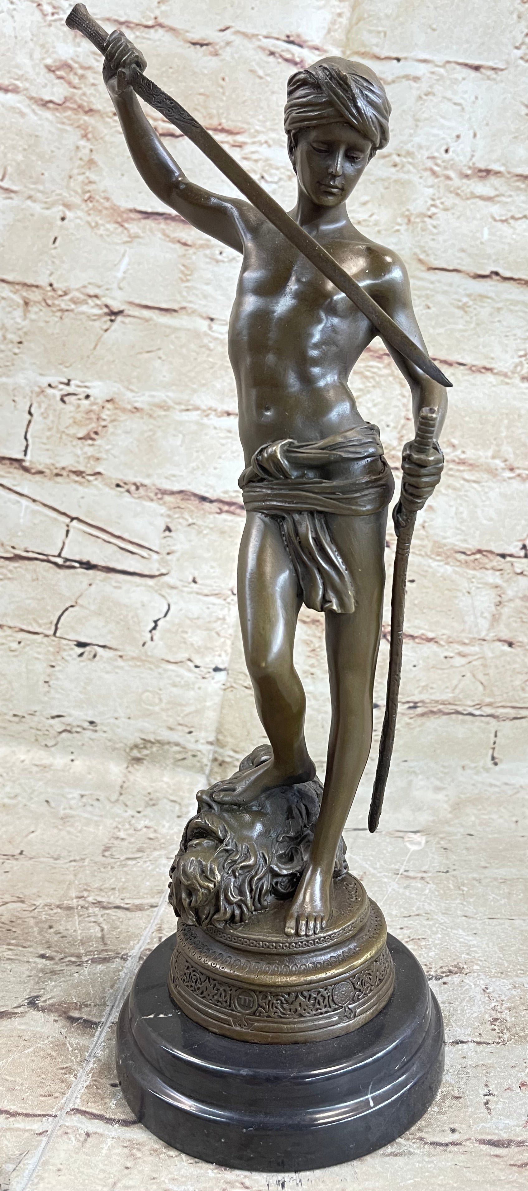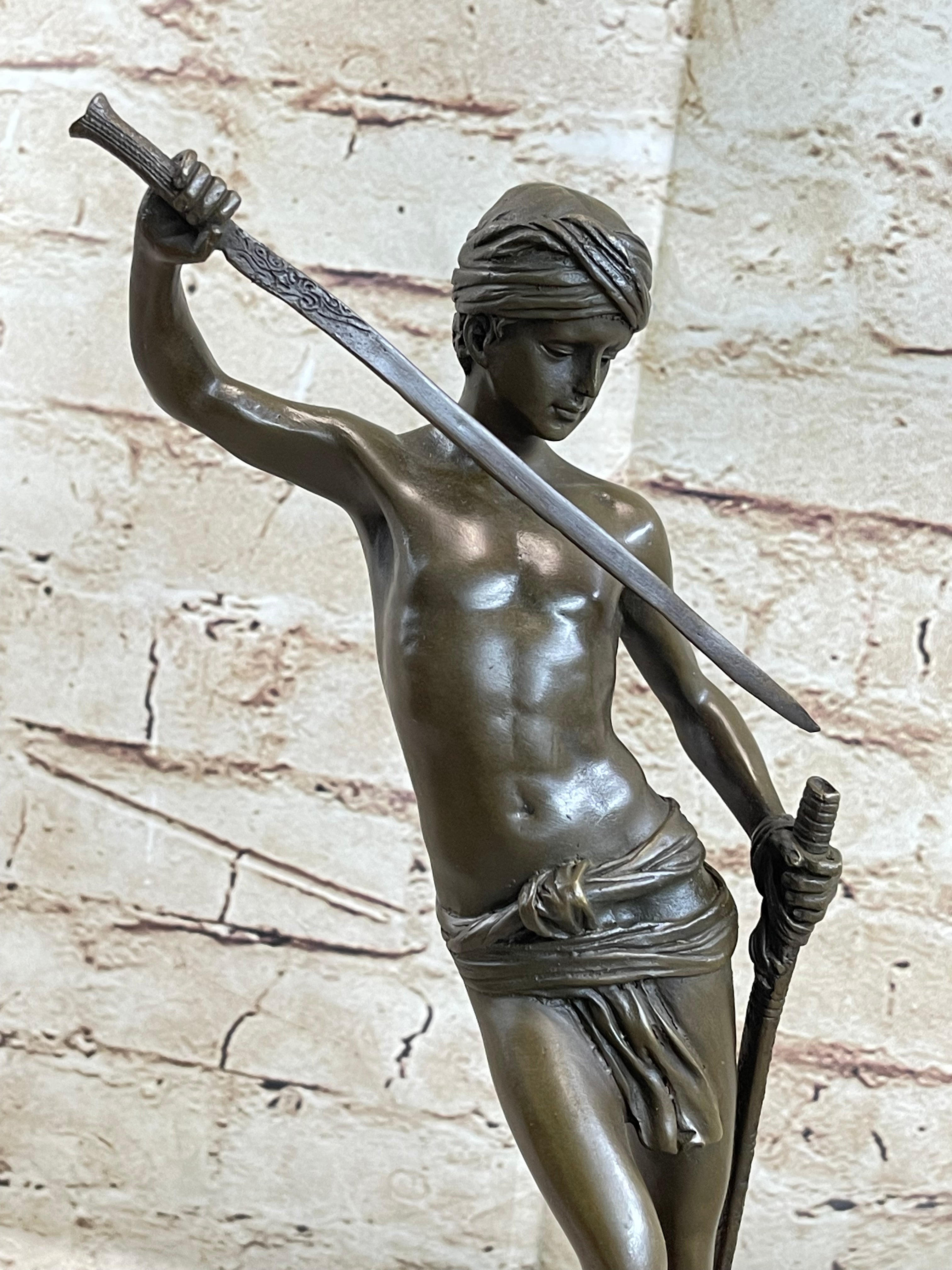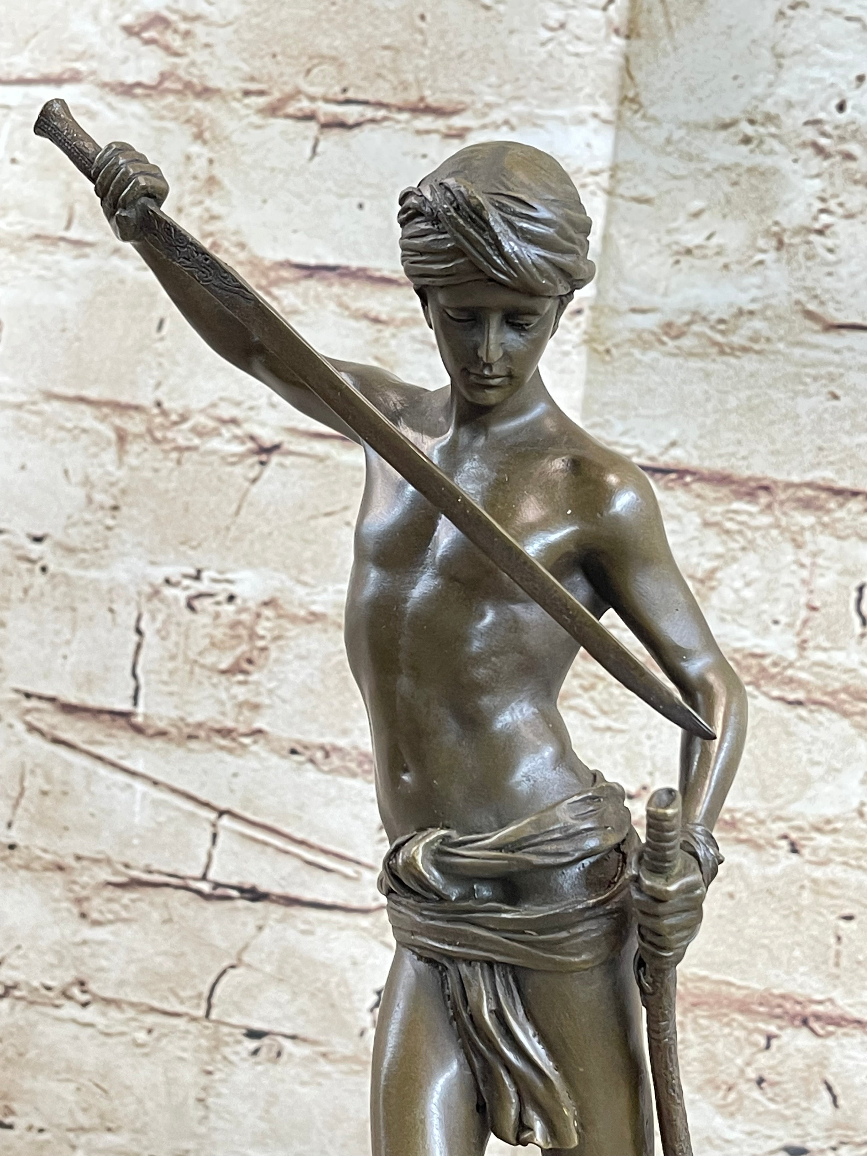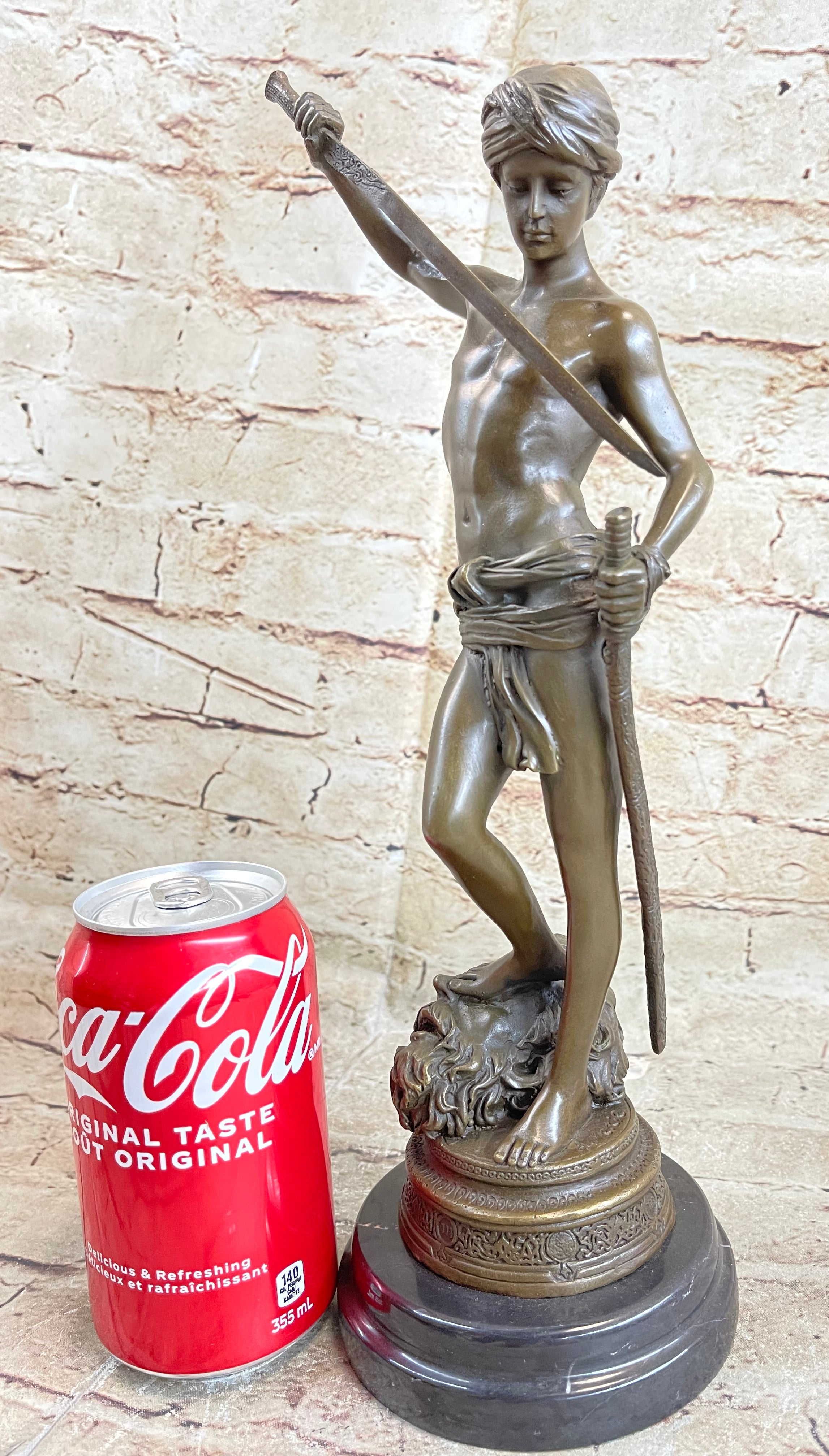 David and Goliath by Mercie Bronze Sculpture Mythical Marble Base Figurine Decor