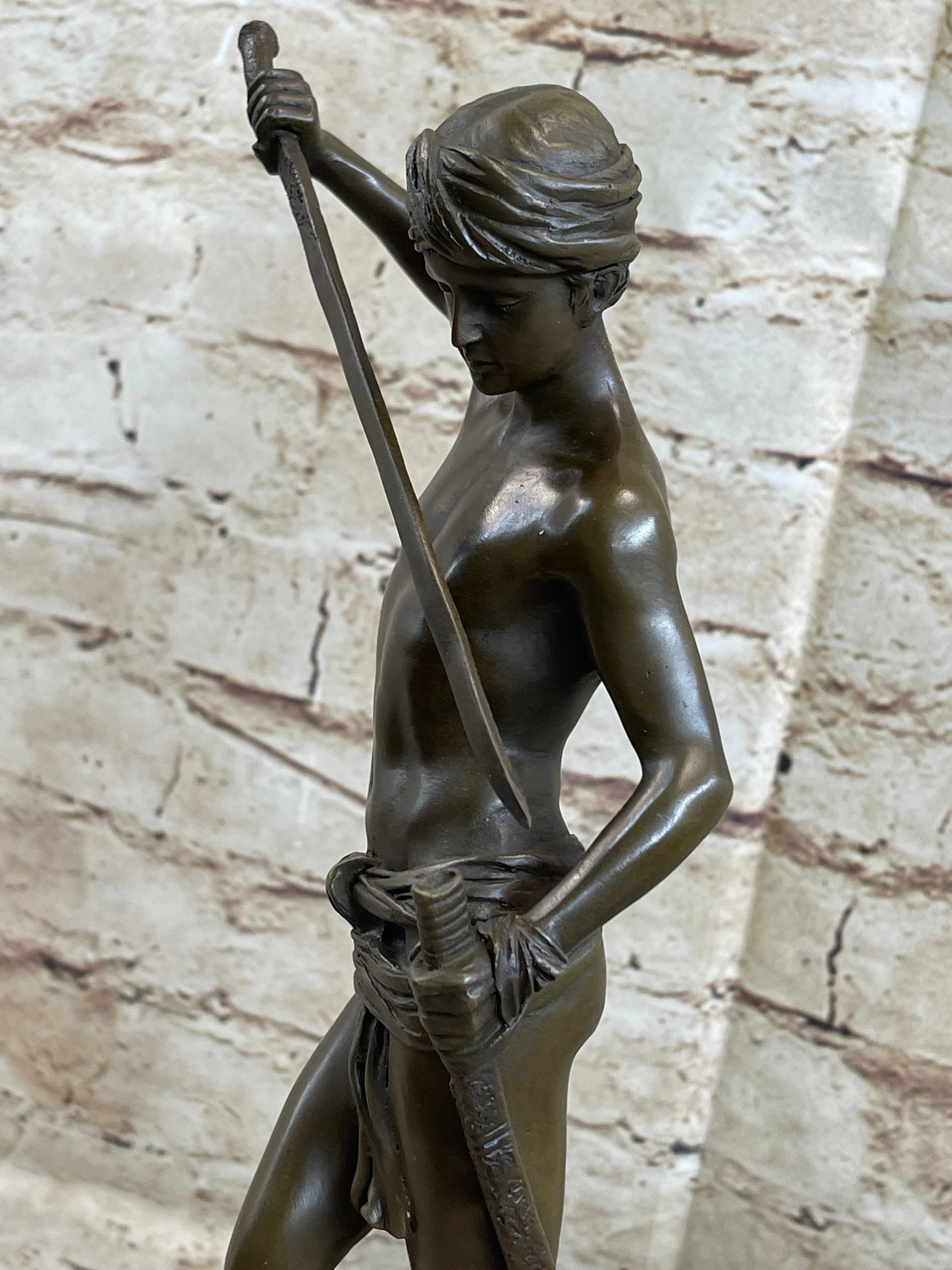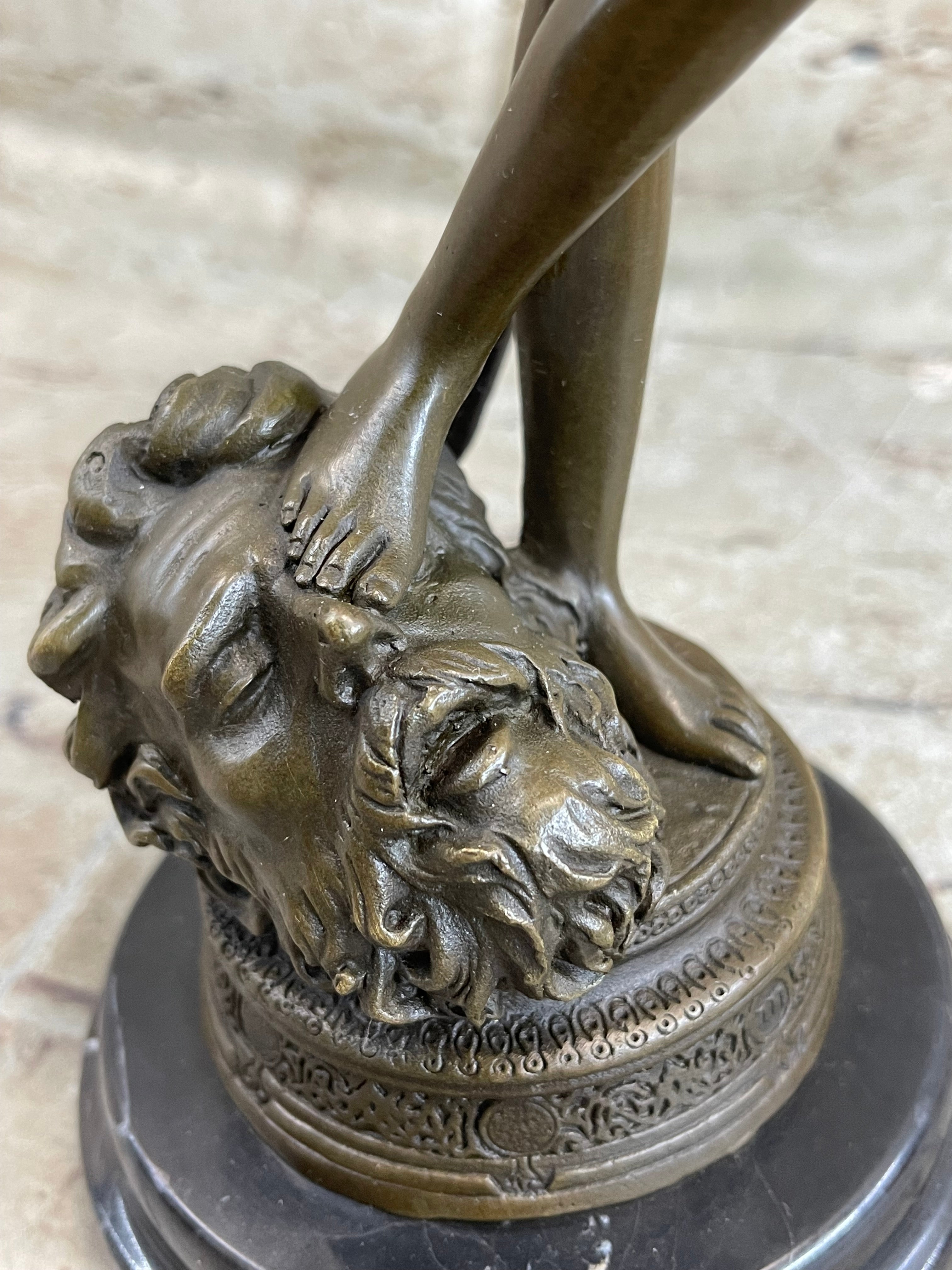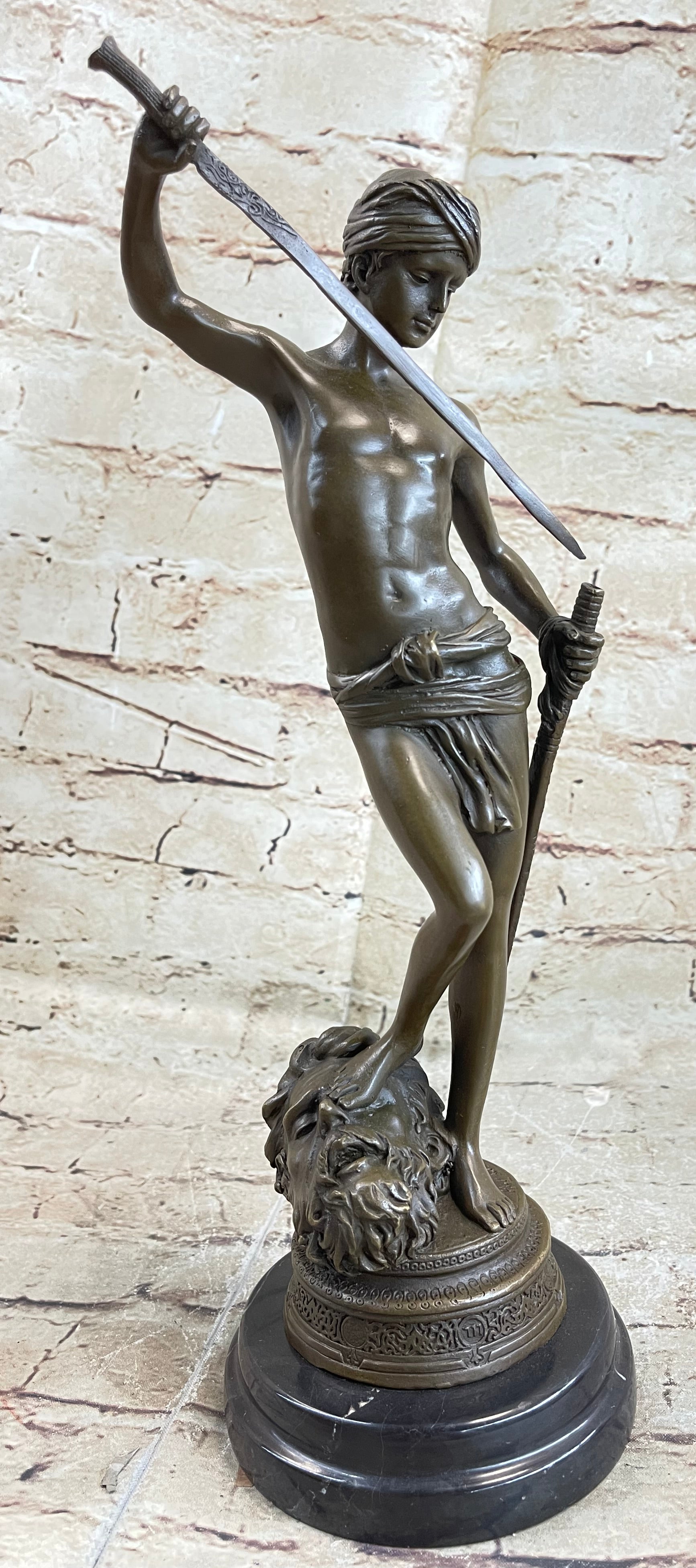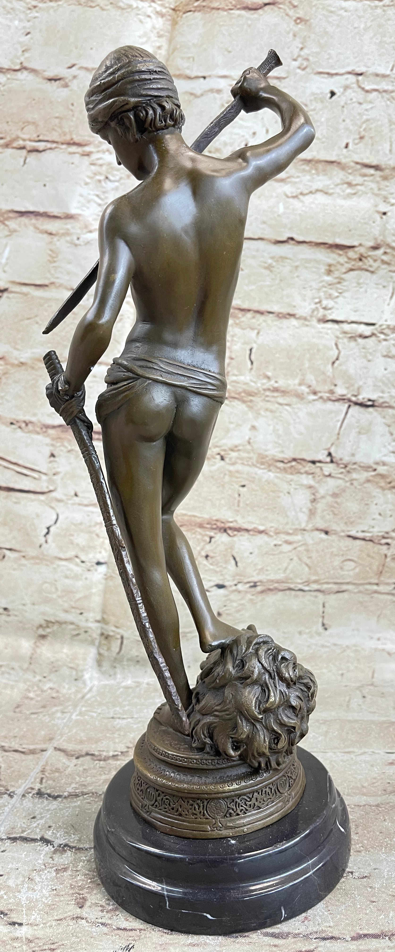 David and Goliath by Mercie Bronze Sculpture Mythical Marble Base Figurine Decor