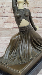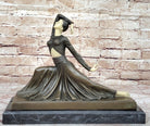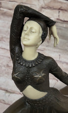 Demetre Chiparus Art Deco Bronze Dancer Girl Graceful Pose on Marble Base