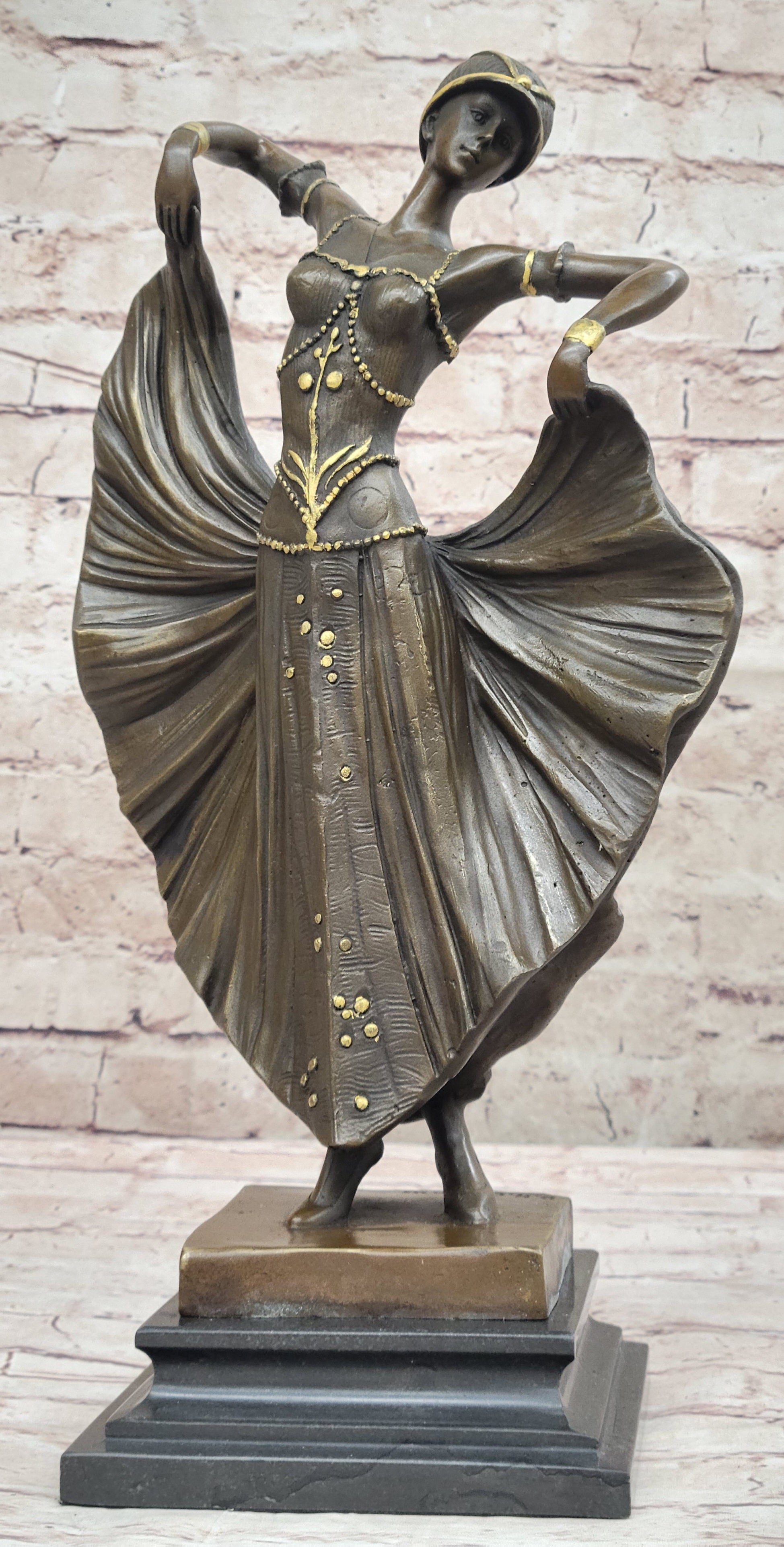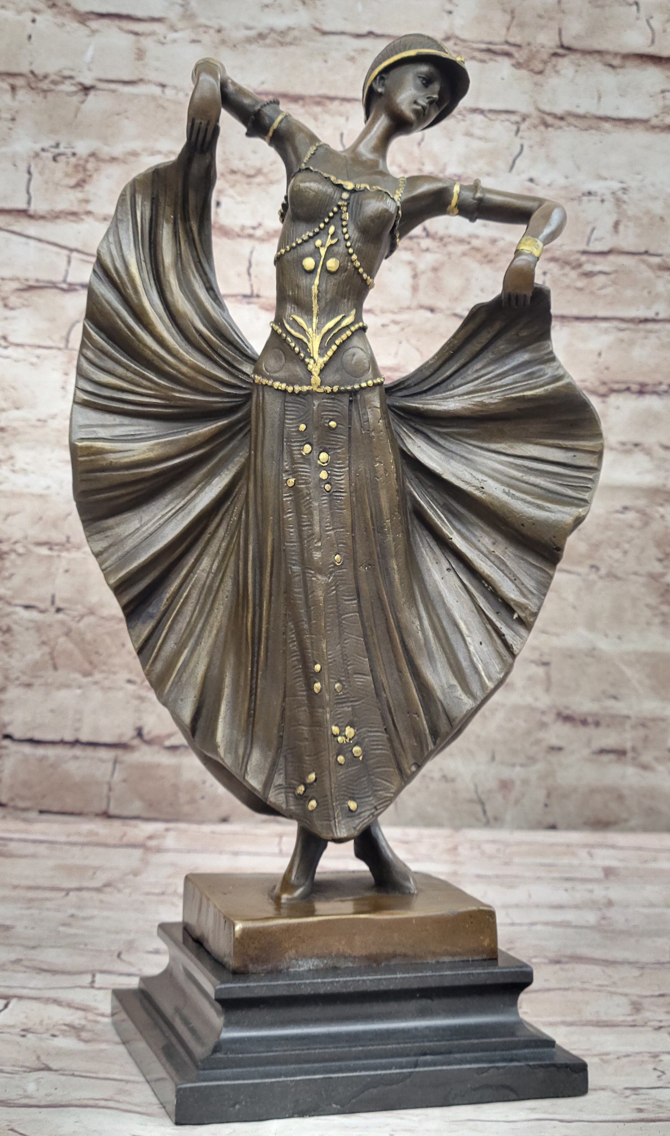 Demetre Chiparus Art Deco Bronze Sculpture Female Dancer Guilded Age Fashion