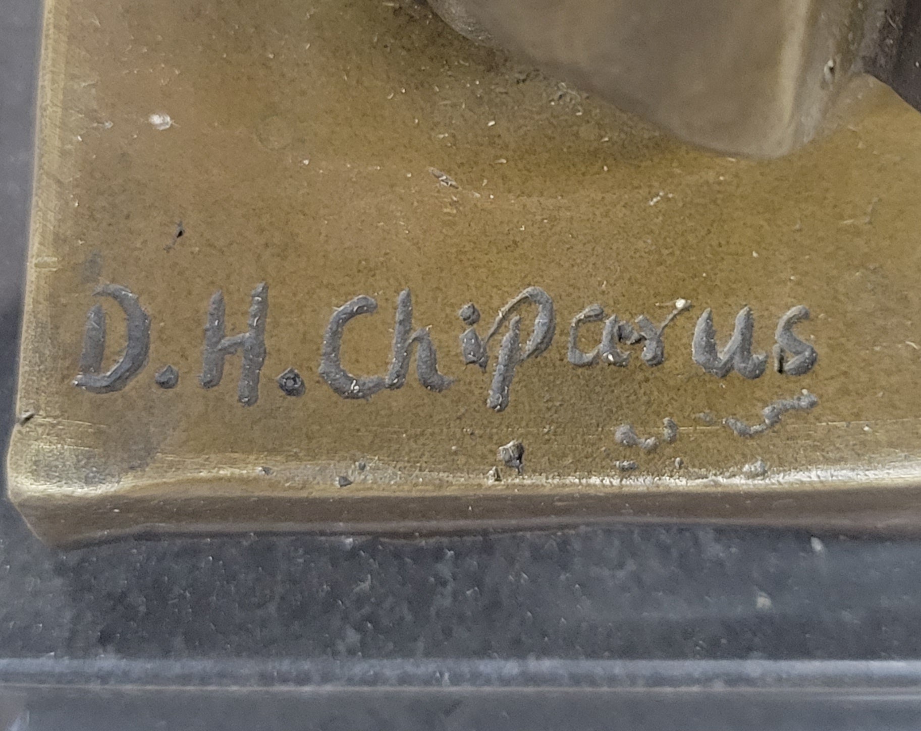 The sculpture proudly bears the signature of Chiparus, a name synonymous with Art Deco excellence. As a true testament to the era, this piece captures the spirit of the Art Deco movement, characterized by its geometric forms, lavish ornamentation, and celebration of modernity.