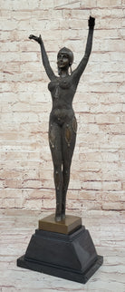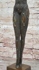 This exquisite bronze reproduction pays homage to the Art Deco period with a stylish and beautiful figure inspired by the work of D.H. Chiparus. Crafted from solid bronze, the sculpture features a dark patina on the face and a striking gold patina on the body, creating a visually captivating contrast.