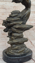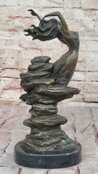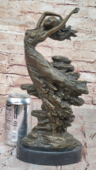 Elegant Bronze Sculpture of a Woman Embracing the Wind – Flowing Gown Statue on Rock Base