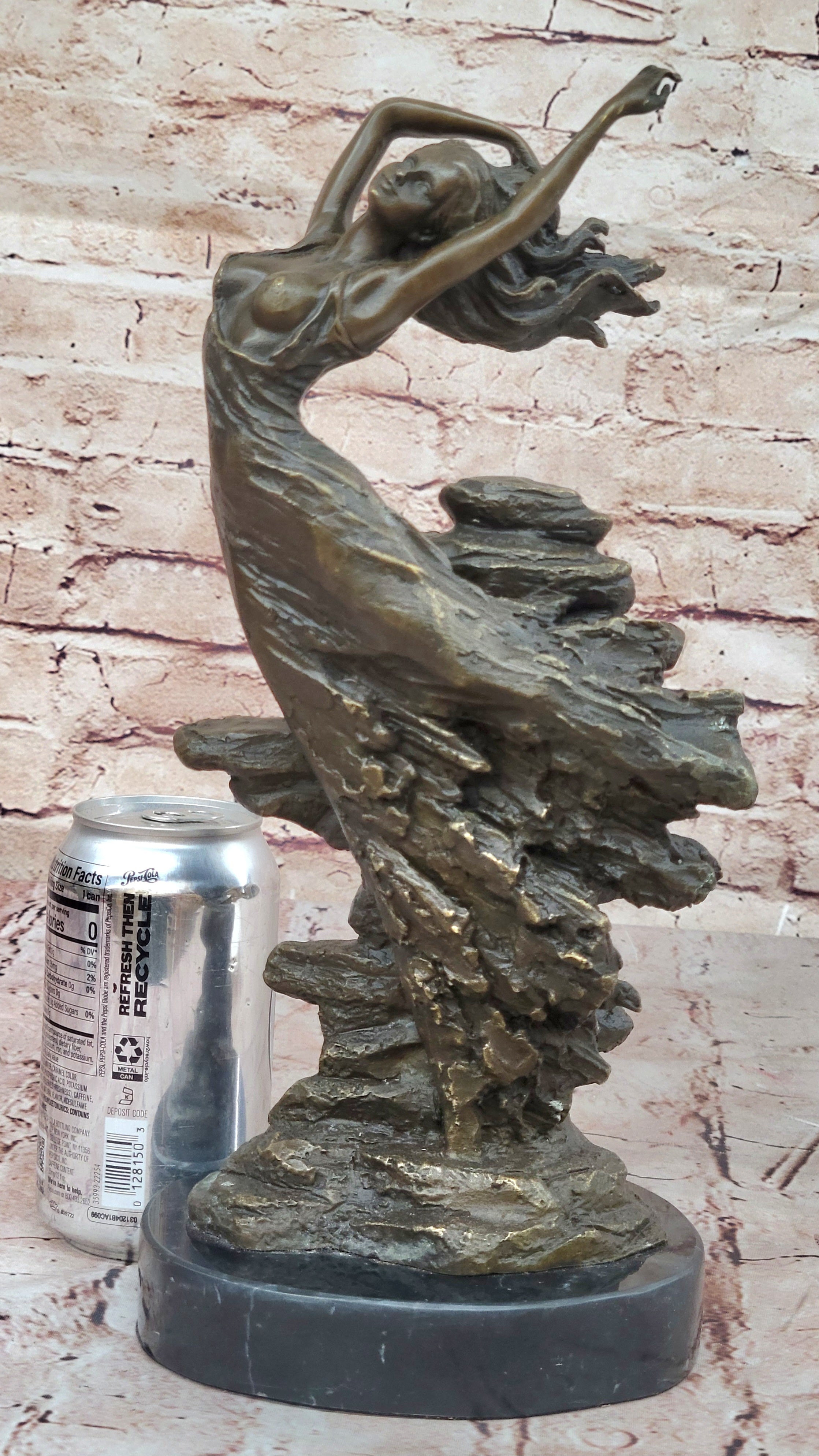 The sculpture’s blue patina accents, featured in her flowing hair and dress, evoke the calming yet powerful hues of tropical waters, adding an extra layer of depth and elegance to the piece. The contrast between the brown patina of her body and the vibrant blue creates a stunning visual effect, emphasizing the motion and energy of the dance.