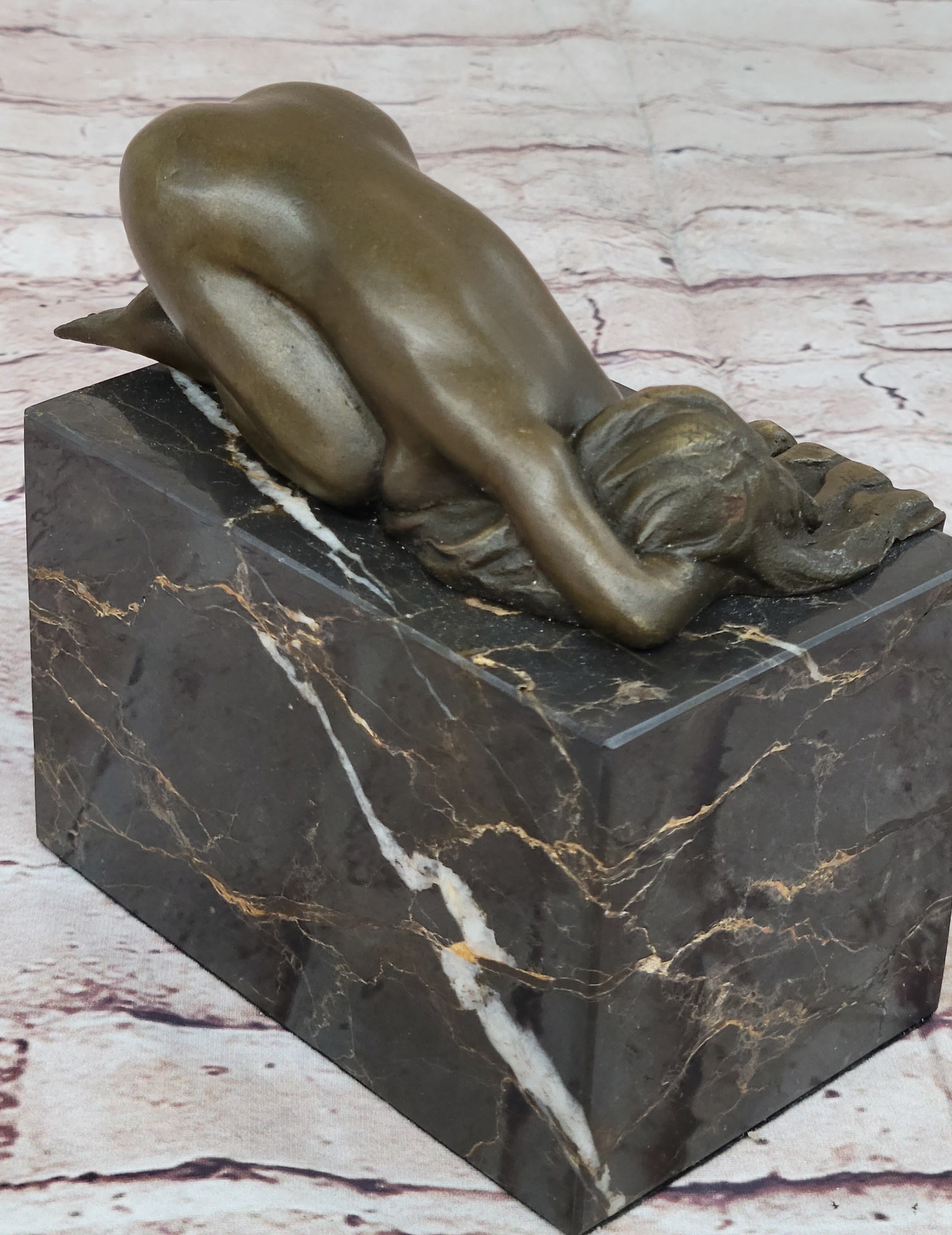 Erotic Bronze Figure Girl Yoga Pose Statue Sculpture Figurine Signed Original 6" x 5"
