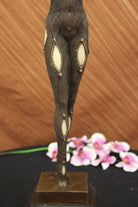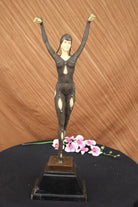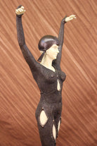 Set on a sleek black marble base, this sculpture stands as a testament to the elegance of the Art Deco style. The dark brown patina finish enriches the surface with depth and dimension, enhancing the intricate details of the dancer's attire and posture. Notably, the hands and face are expertly crafted from resin, adding a lifelike touch to the figure's delicate features.