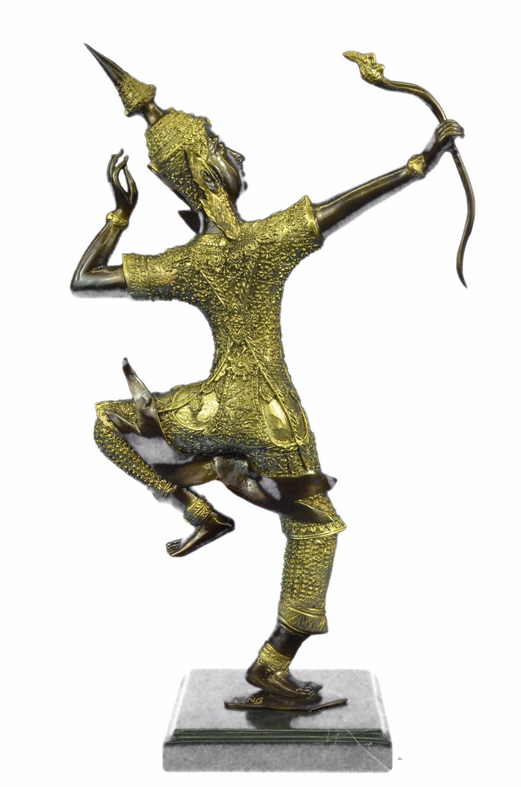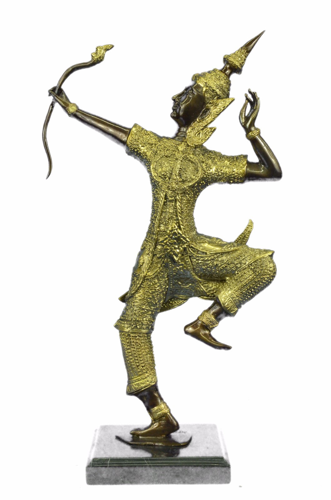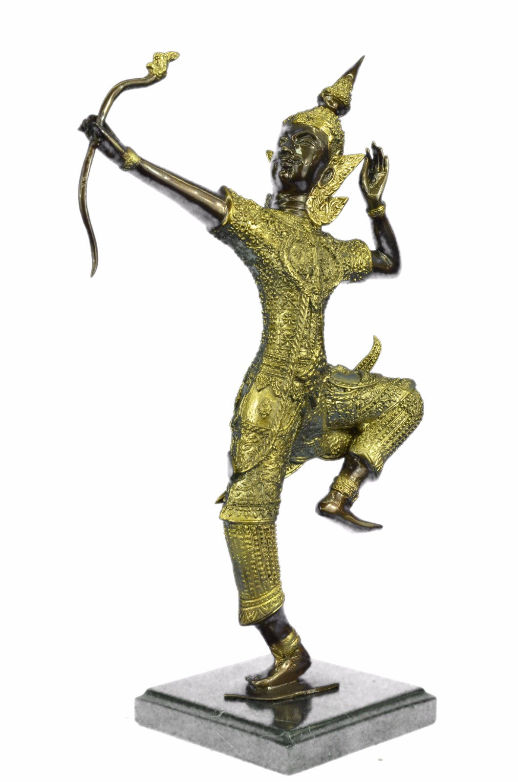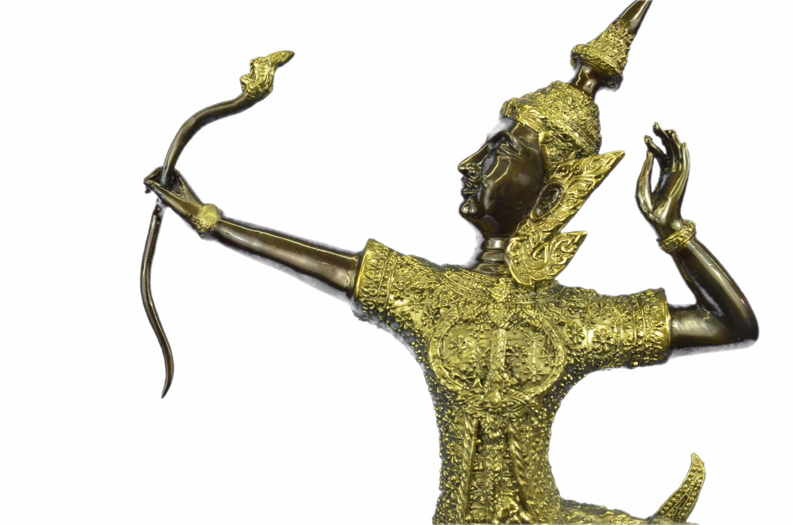 Gilt Bronze Prince Rama Handcrafted Bronze Sculpture Marble Base Figurine Figure