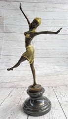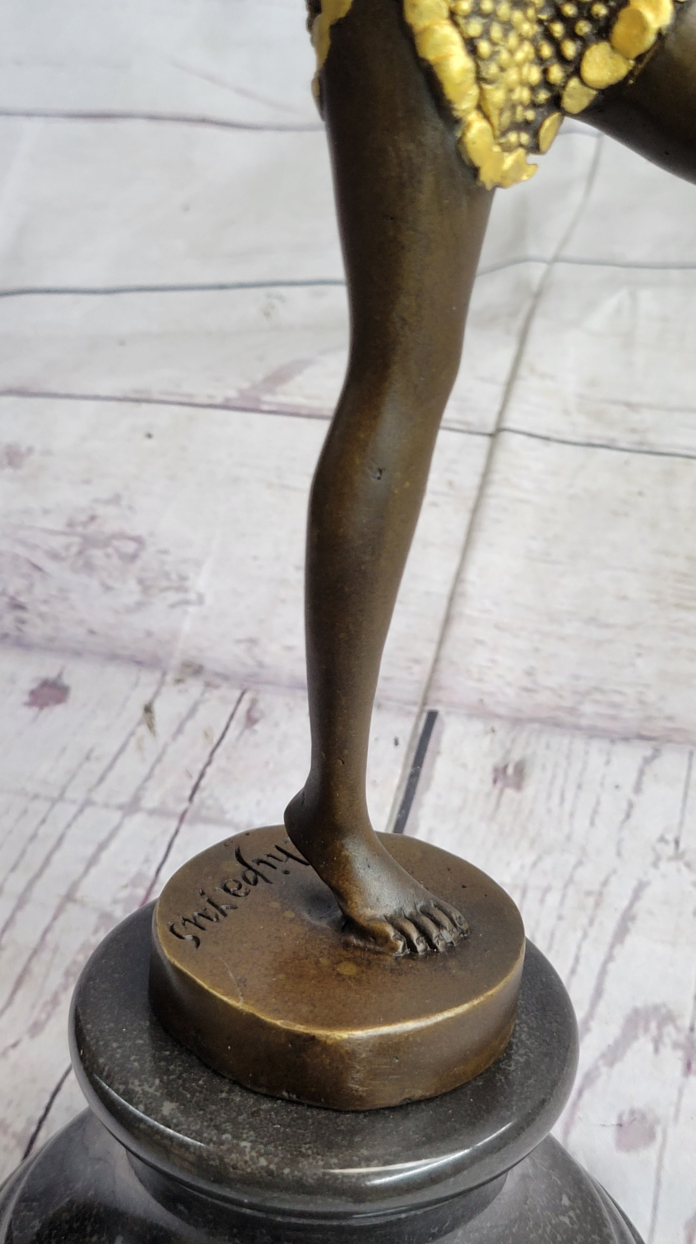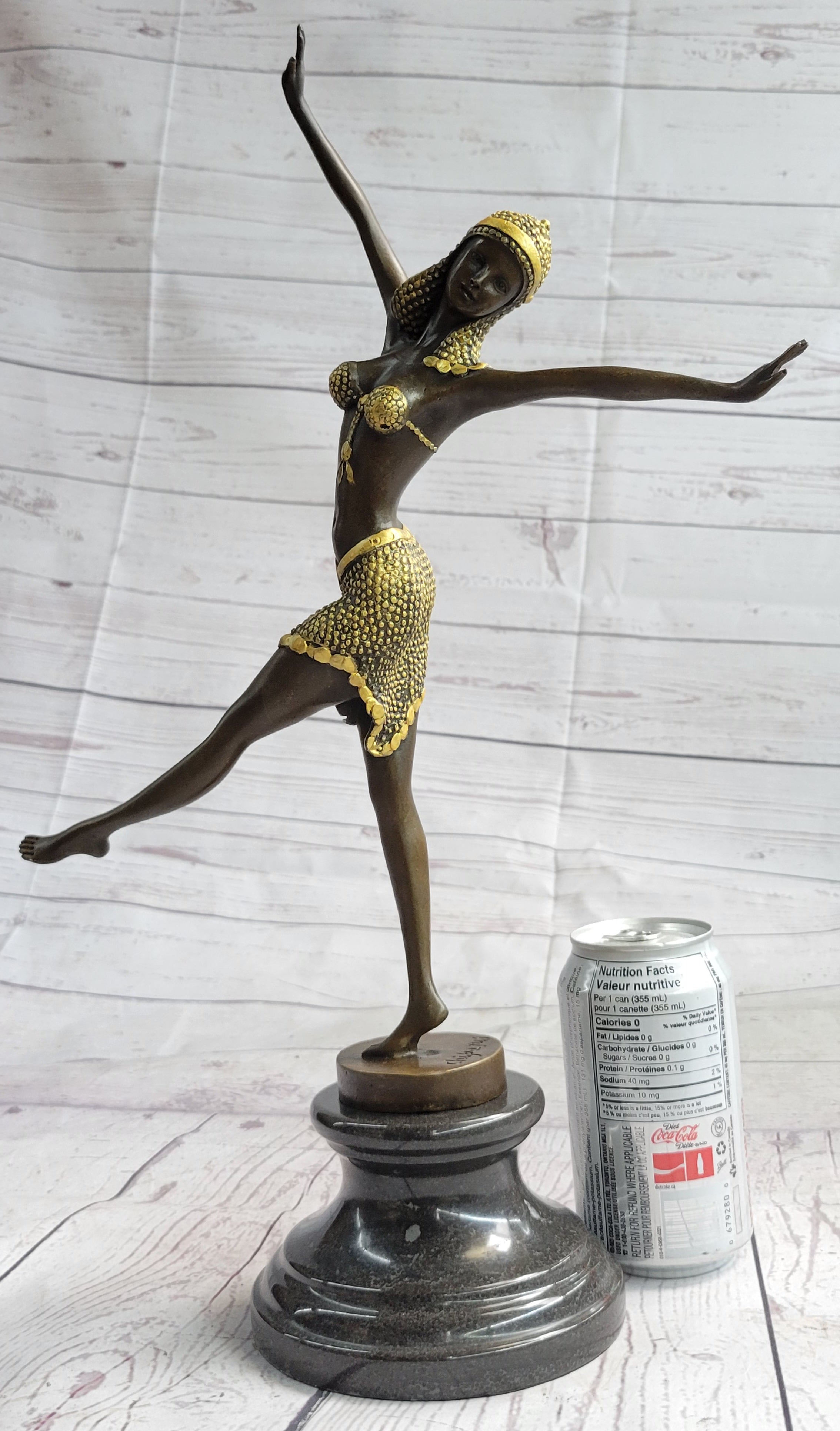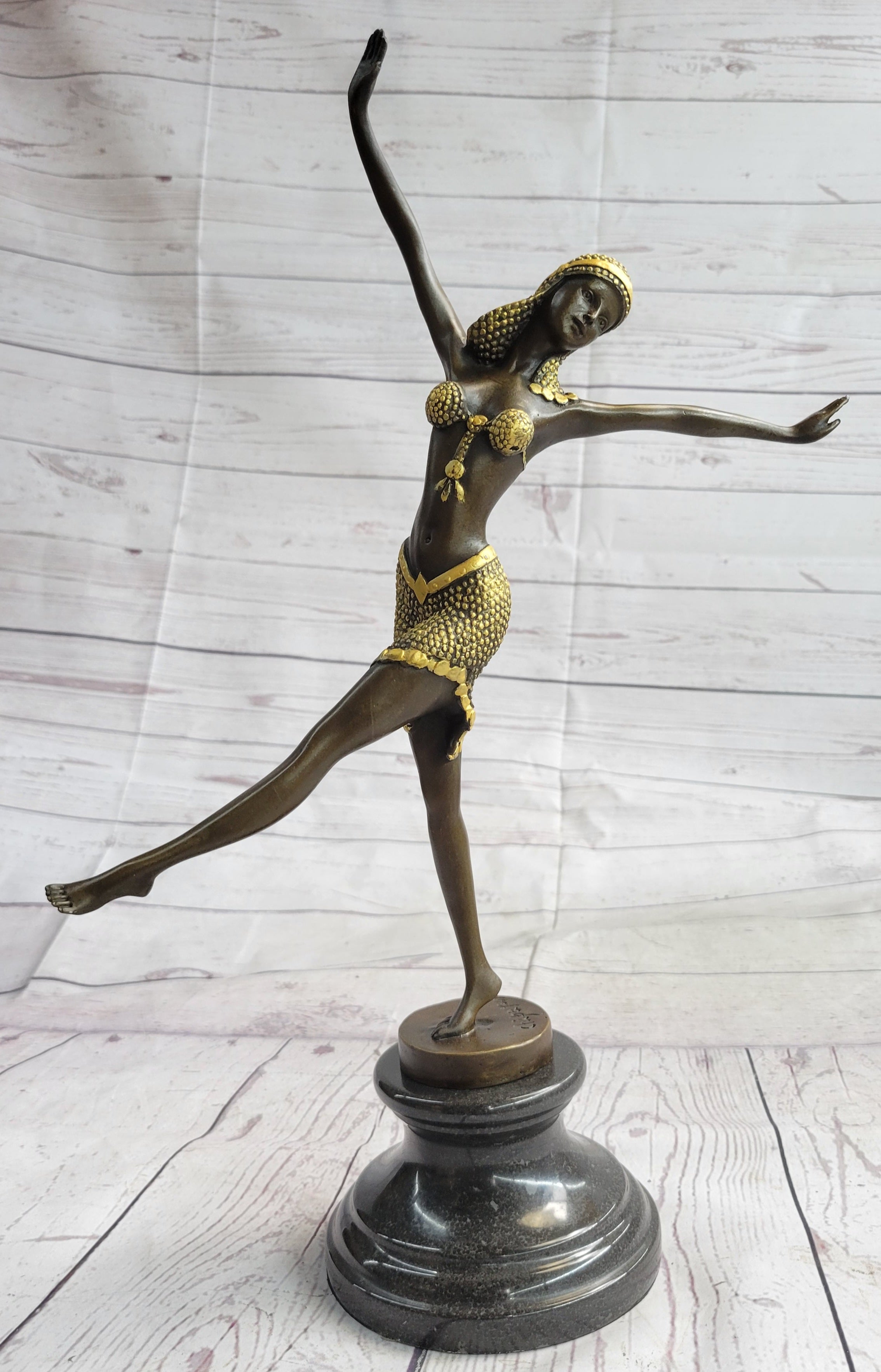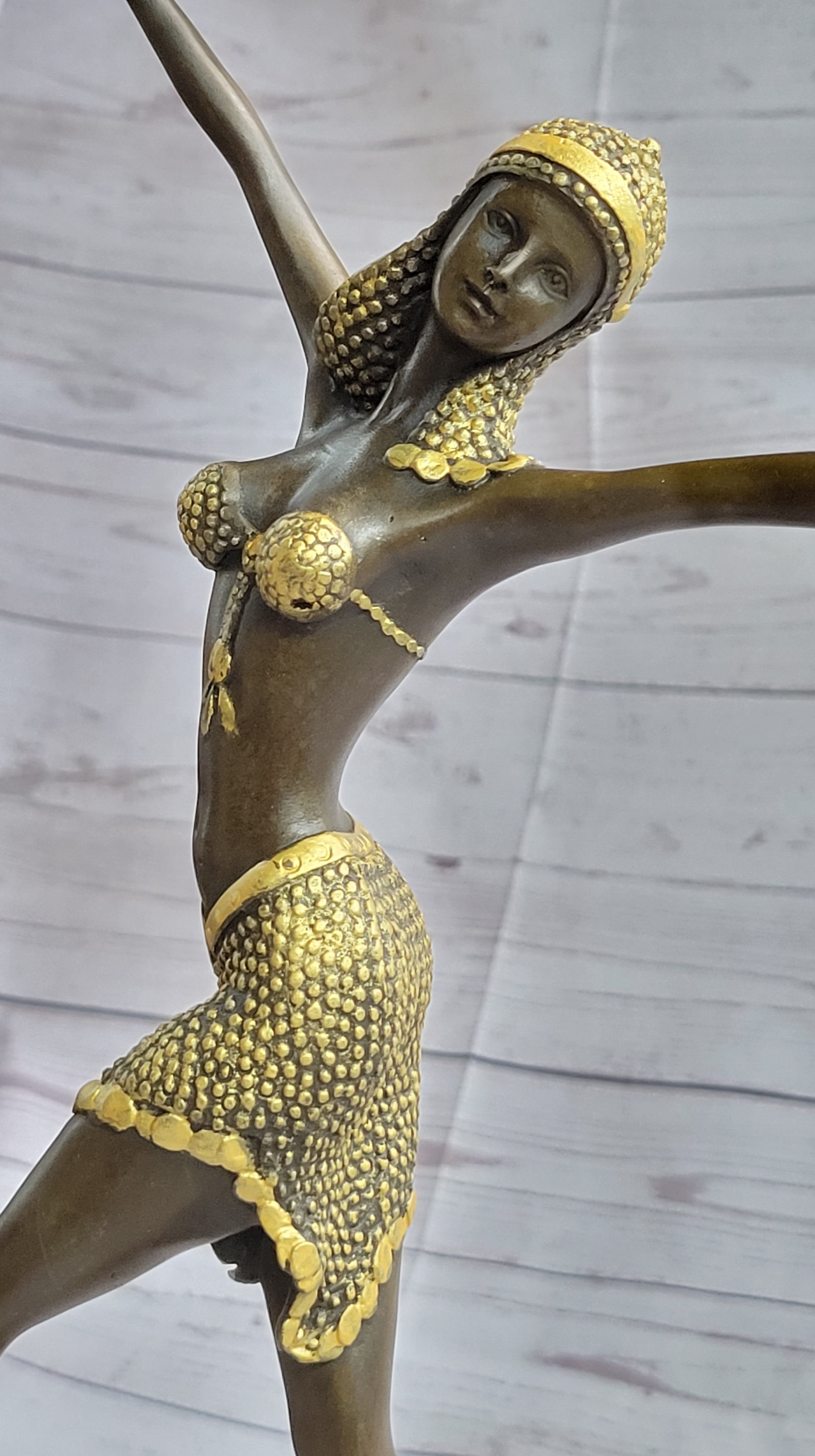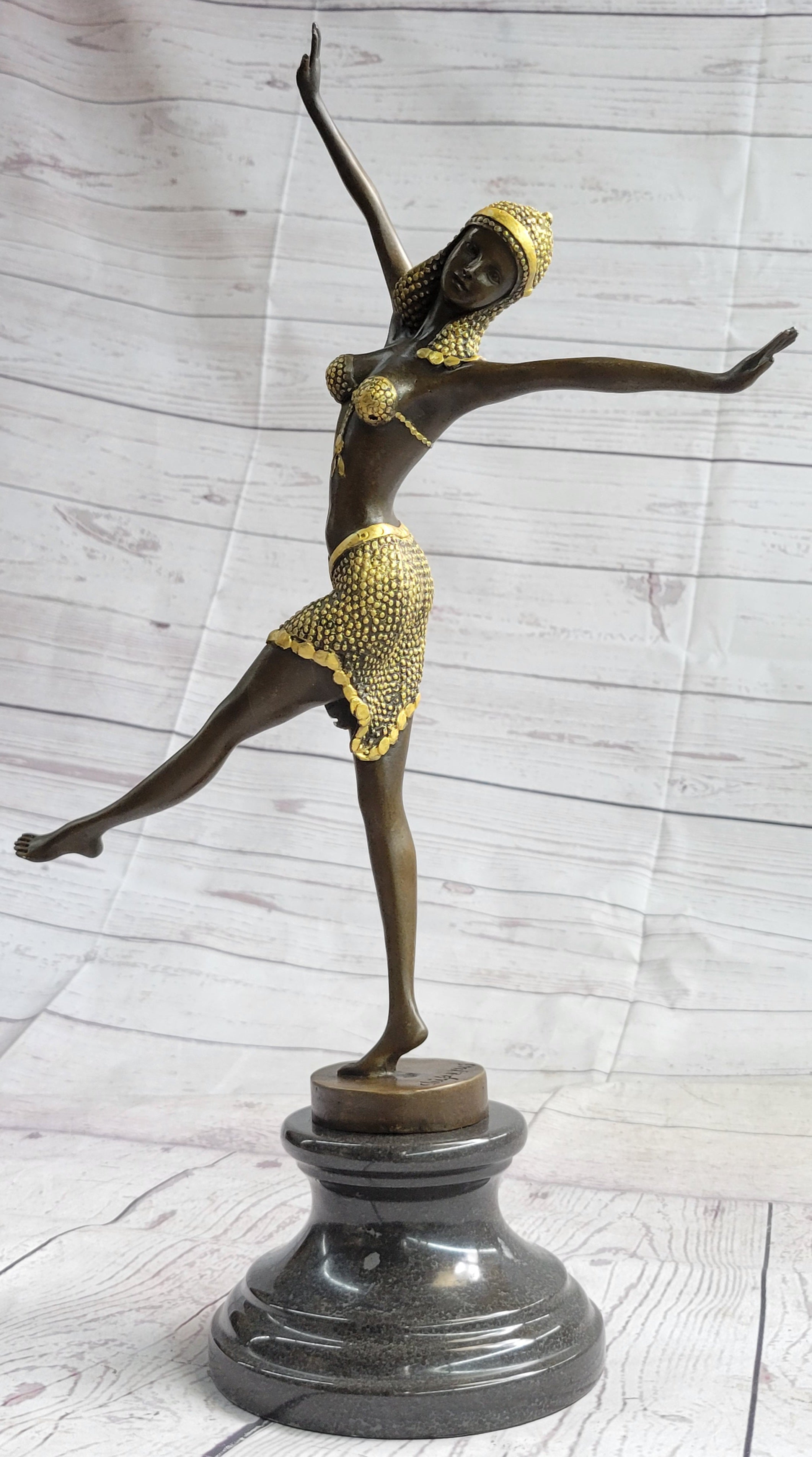GOLD PATINA CHIPARUS EXOTIC DANCER BRONZE SATUE SCULPTURE MARBLE BASE FIGURINE