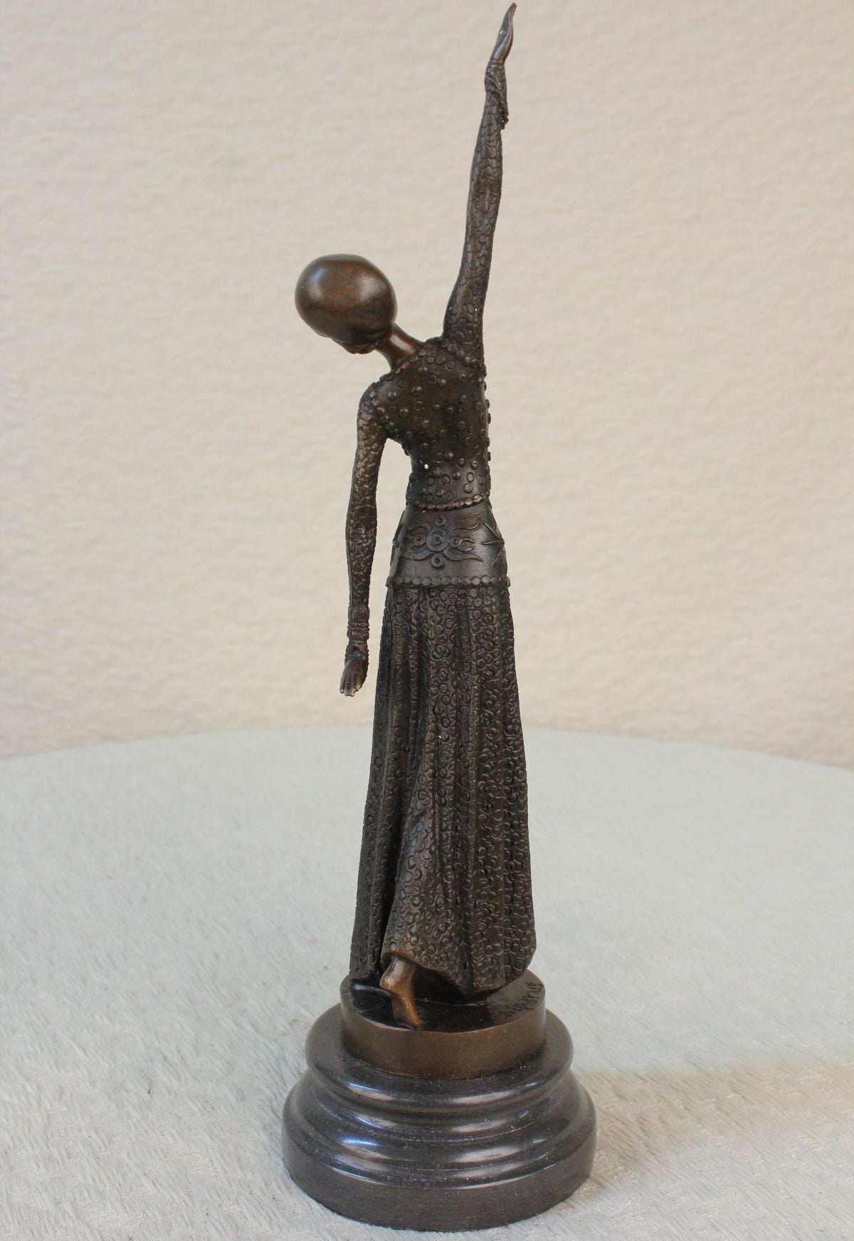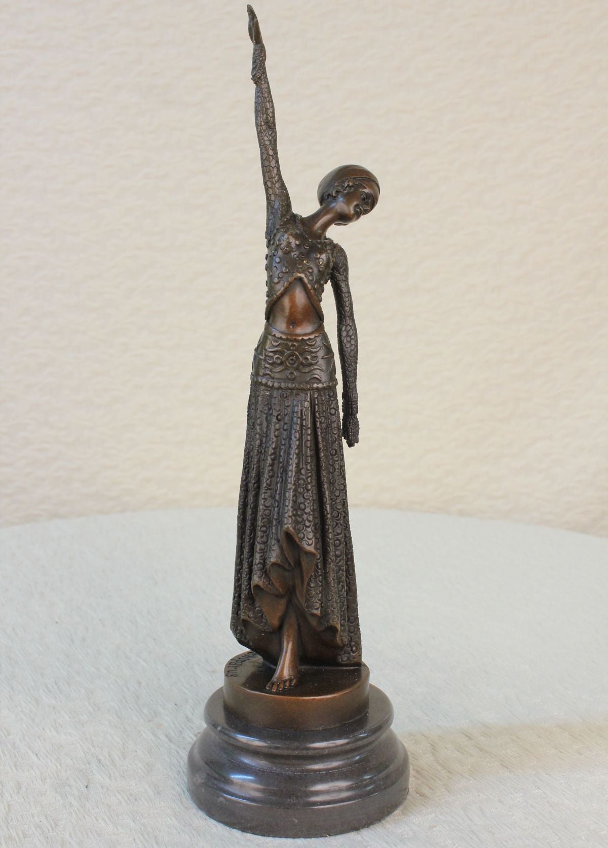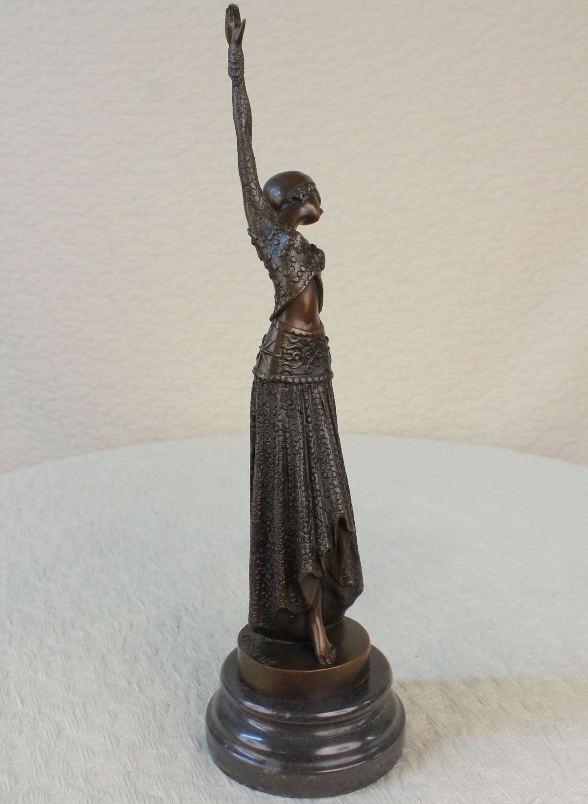 GRACEFUL ART DECO DANCER BY D.H. CHIPARUS BRONZE SATUE SIGNED SCULPTURE FIGURE
