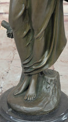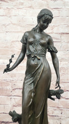 Graceful Bronze Lady Sculpture Holding a Floral Branch, Standing on a Marble Pedestal Base