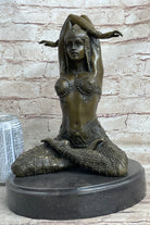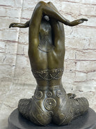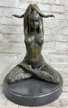 HAND MADE LADY YOGA MEDITATION BRONZE SCULPTURE ART DECO MARBLE BASE FIGURINE