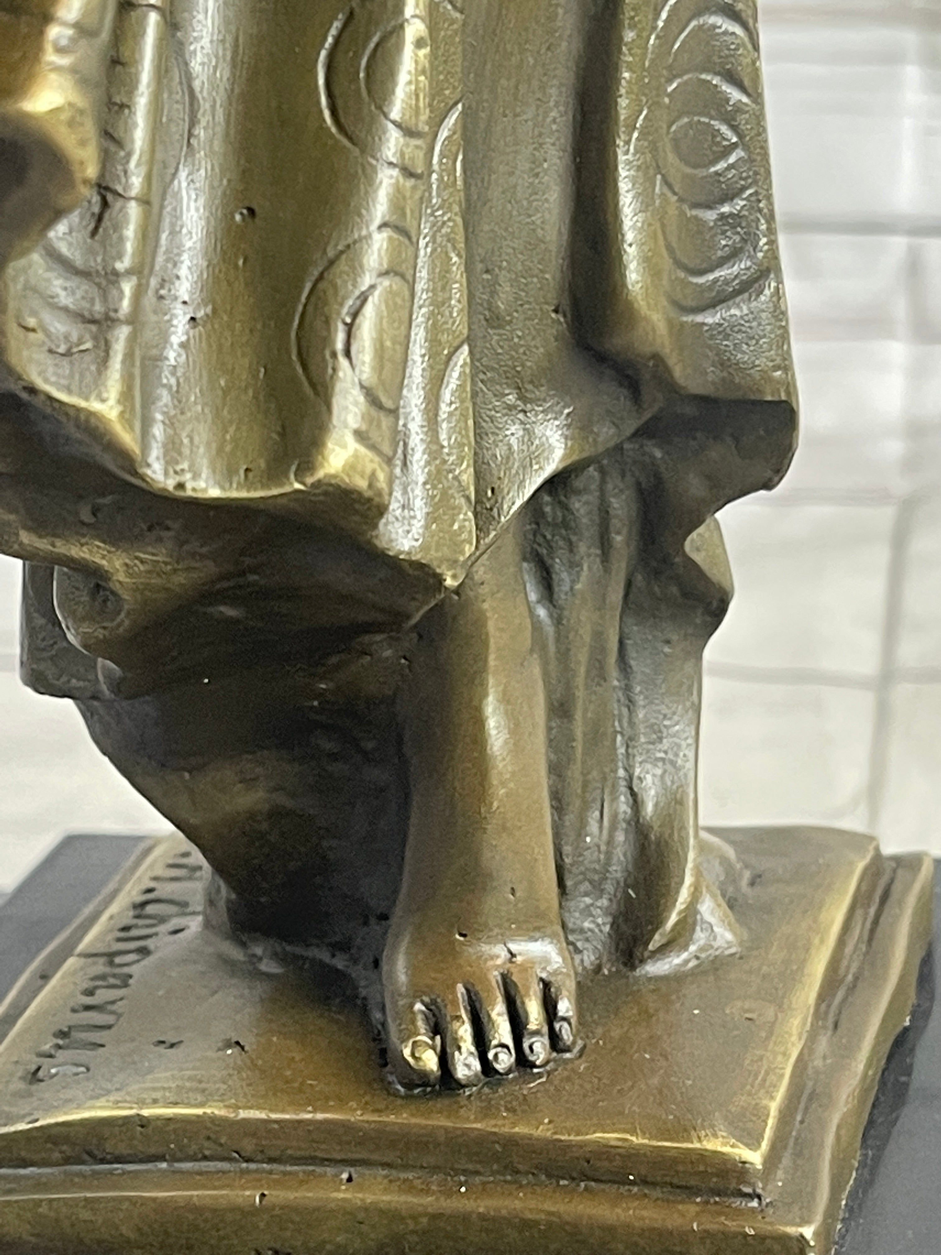 Invite the captivating allure of dance and the timeless beauty of the human form into your space with this extraordinary bronze sculpture. Its exquisite craftsmanship and evocative portrayal of movement make it a focal point of any collection, resonating with art enthusiasts and admirers of the performing arts alike.Bronze Dimensions with Marble Base: Height 18" X Width 14"