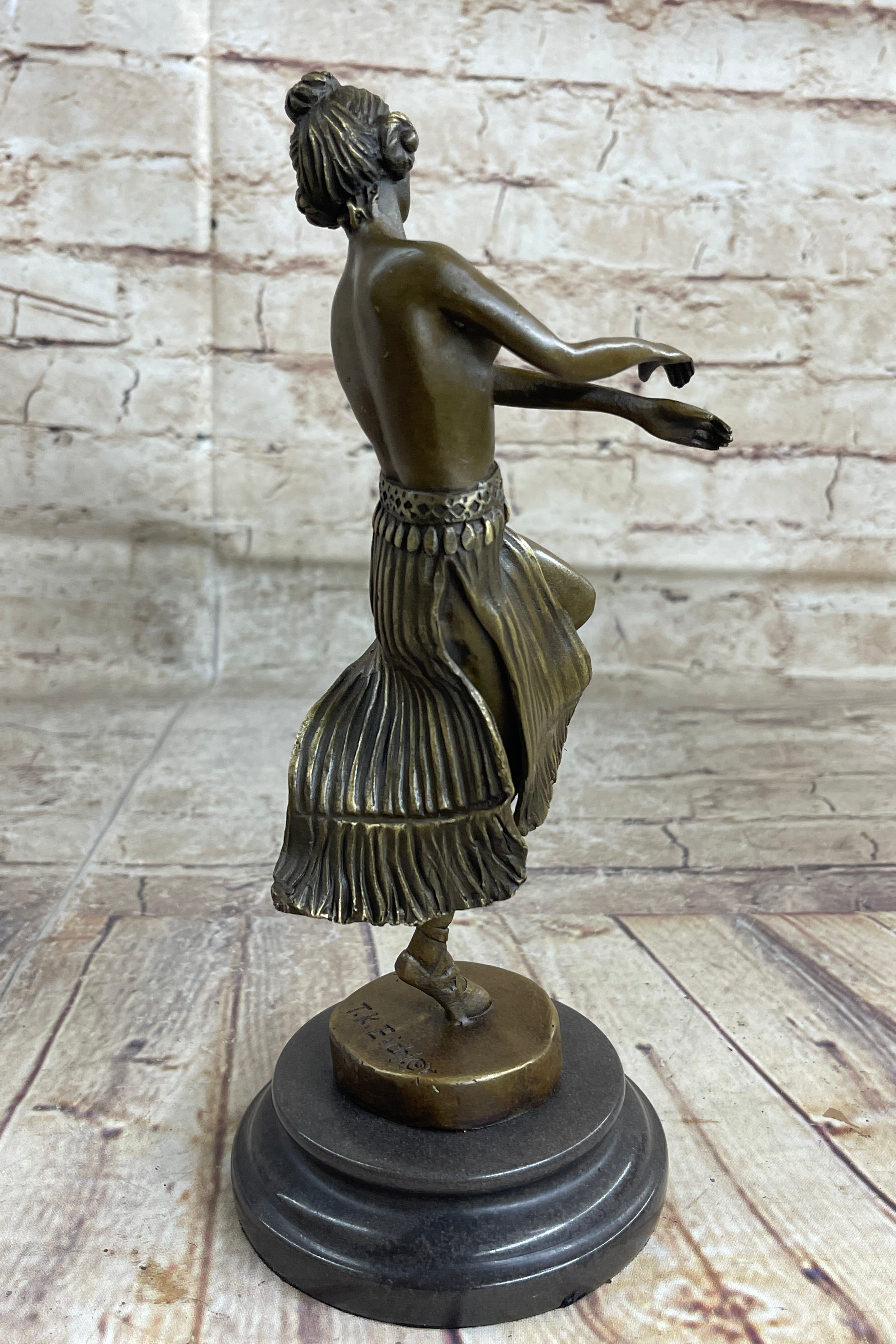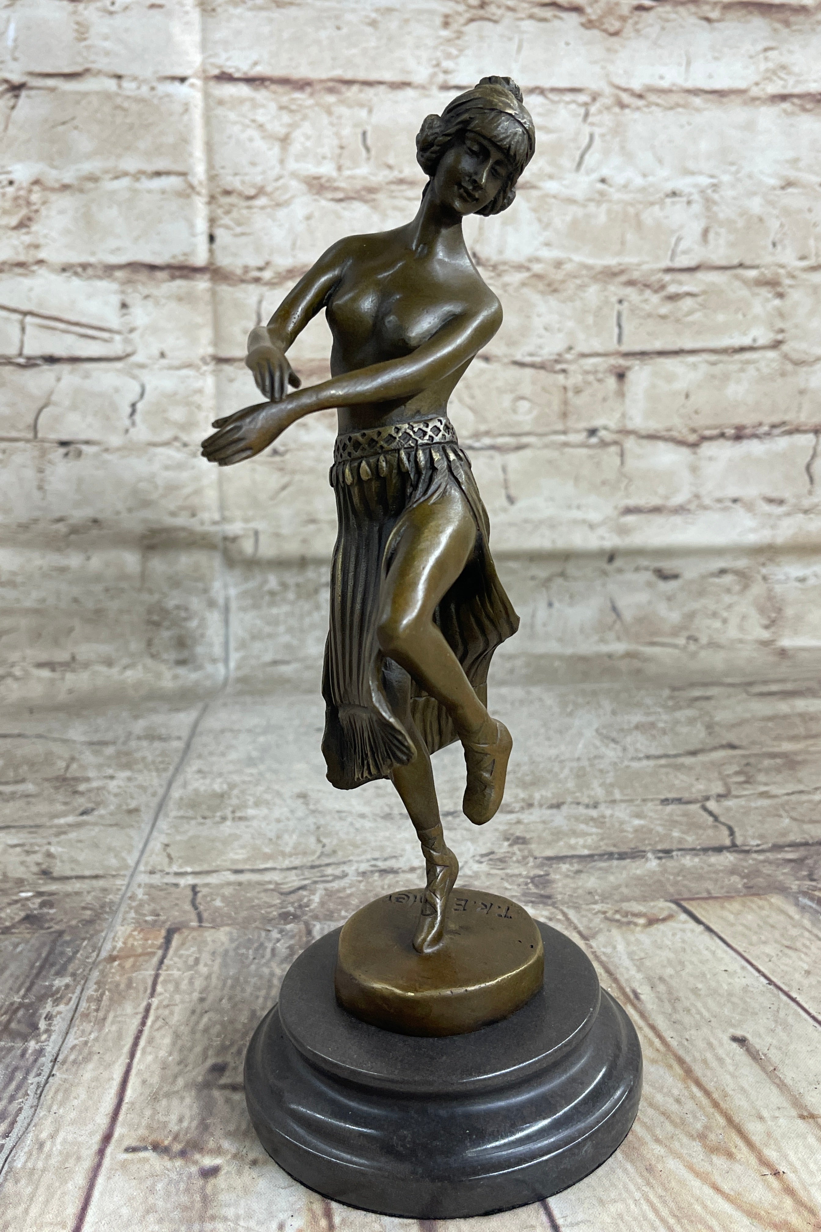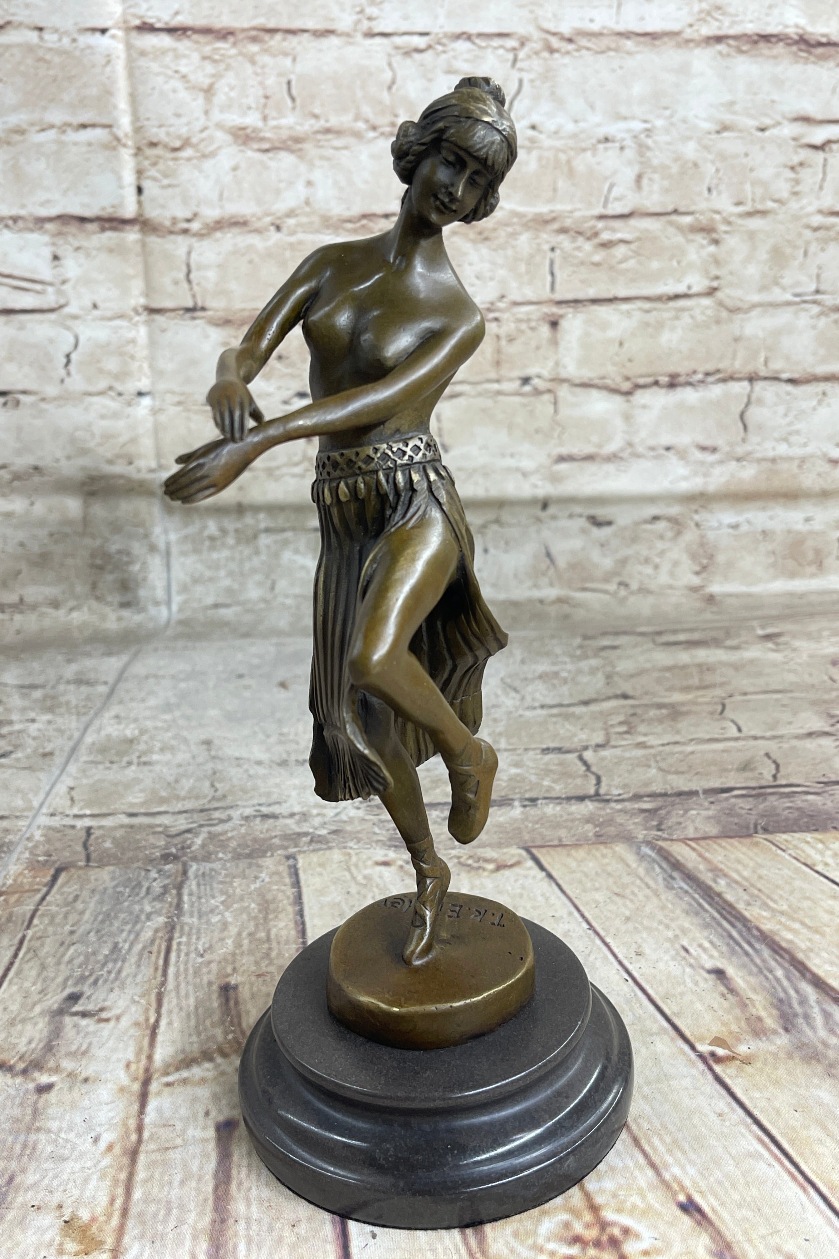 Hawaiian Hula Dancer Topless Girl Semi Nude Bronze Sculpture Statue Figure by Eichler