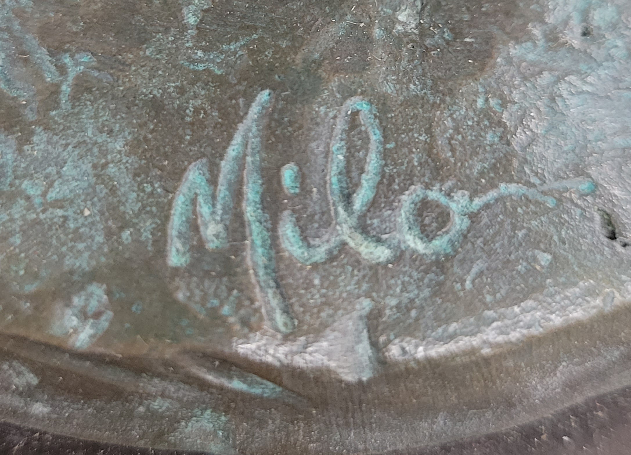 Embrace the grace and elegance of the art world with this Original Miguel Lopez, also known as Milo, Ballerina Dancer Huge Bronze Sculpture. This masterpiece captures the essence of a ballerina in motion, handcrafted with meticulous attention to detail using the ancient lost wax method. The artist's skillful touch comes to life as the dancer's form gracefully emerges on a sturdy round black marble base, ensuring its stability and durability. With a stunning dual brown and green patina, the sculpture radiates a sense of timeless beauty and artistic expression.