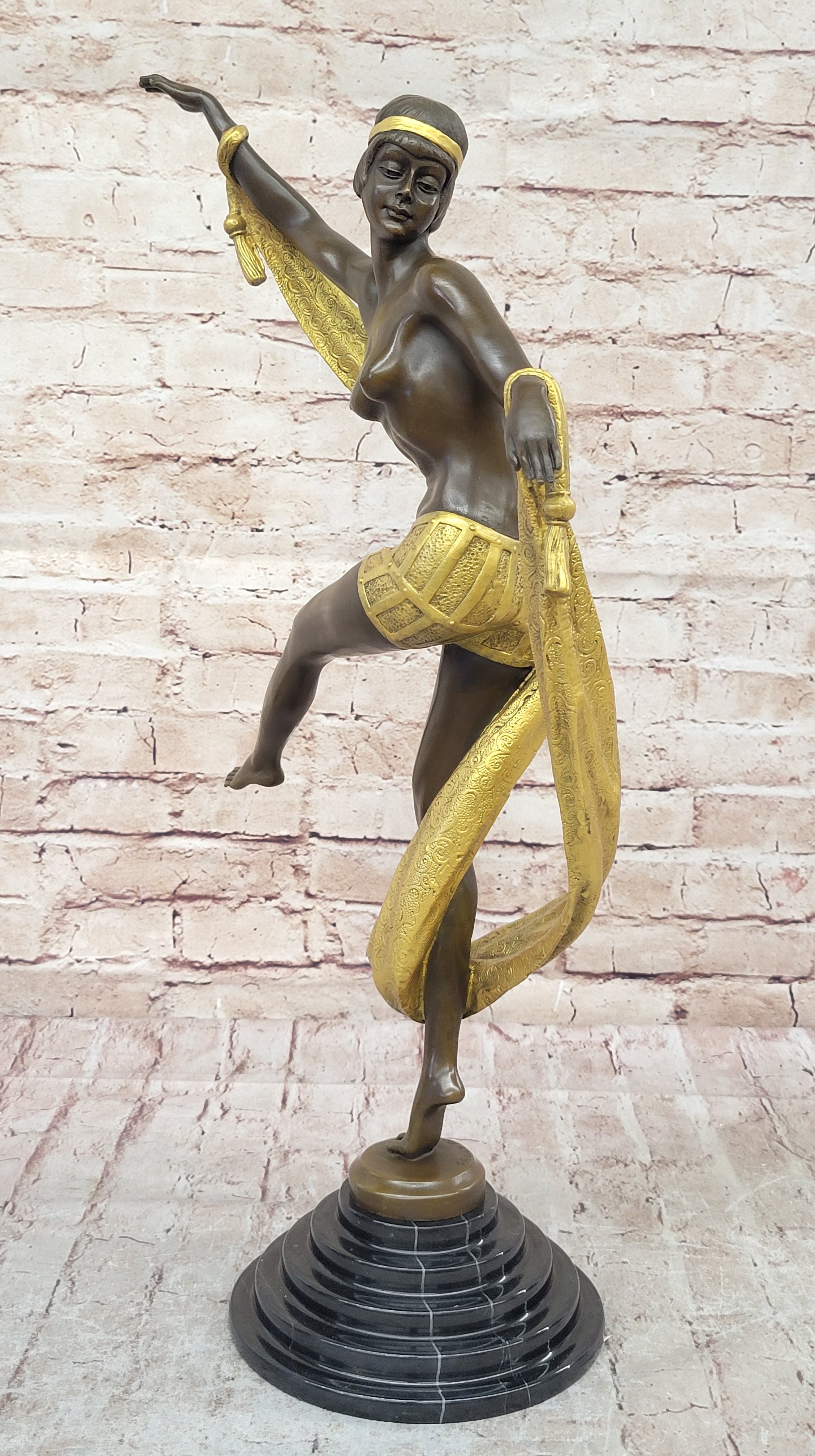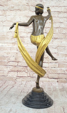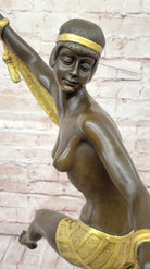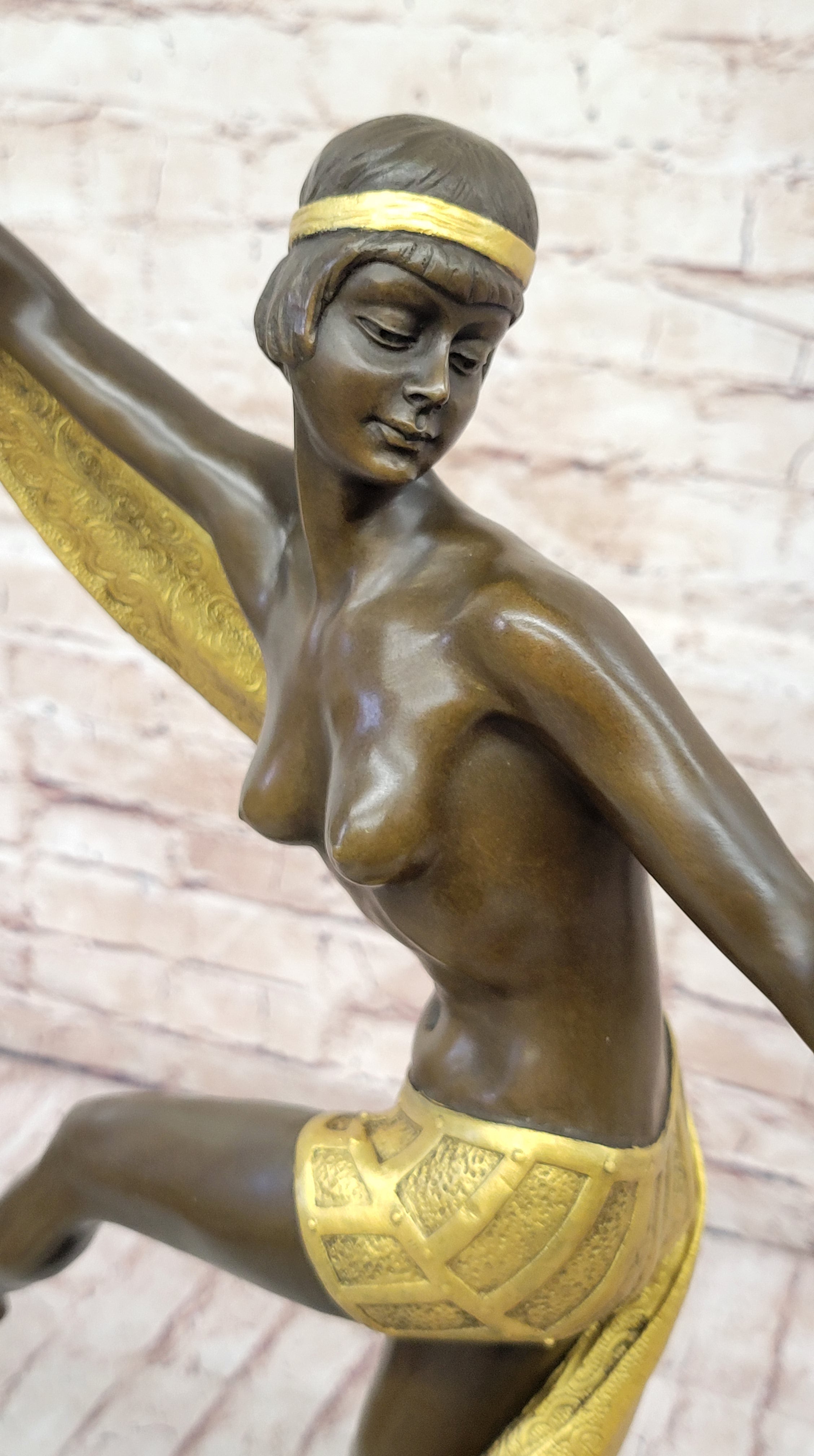Hot Cast Bronze Art Deco Figural Sculpture of Topless Ribbon Dancer by Rozet