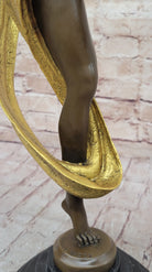 This exquisite sculpture embodies the essence of Art Deco elegance and grace with its portrayal of a Ribbon Dancer in motion. Crafted by the skilled hands of Rozet, this genuine gilt bronze sculpture captures the fluidity and beauty of dance in a mesmerizing way. The dancer's form is adorned with a flowing ribbon, adding a dynamic element to the composition.